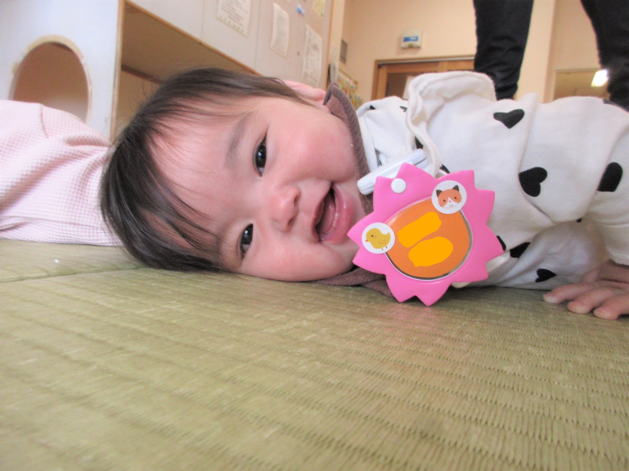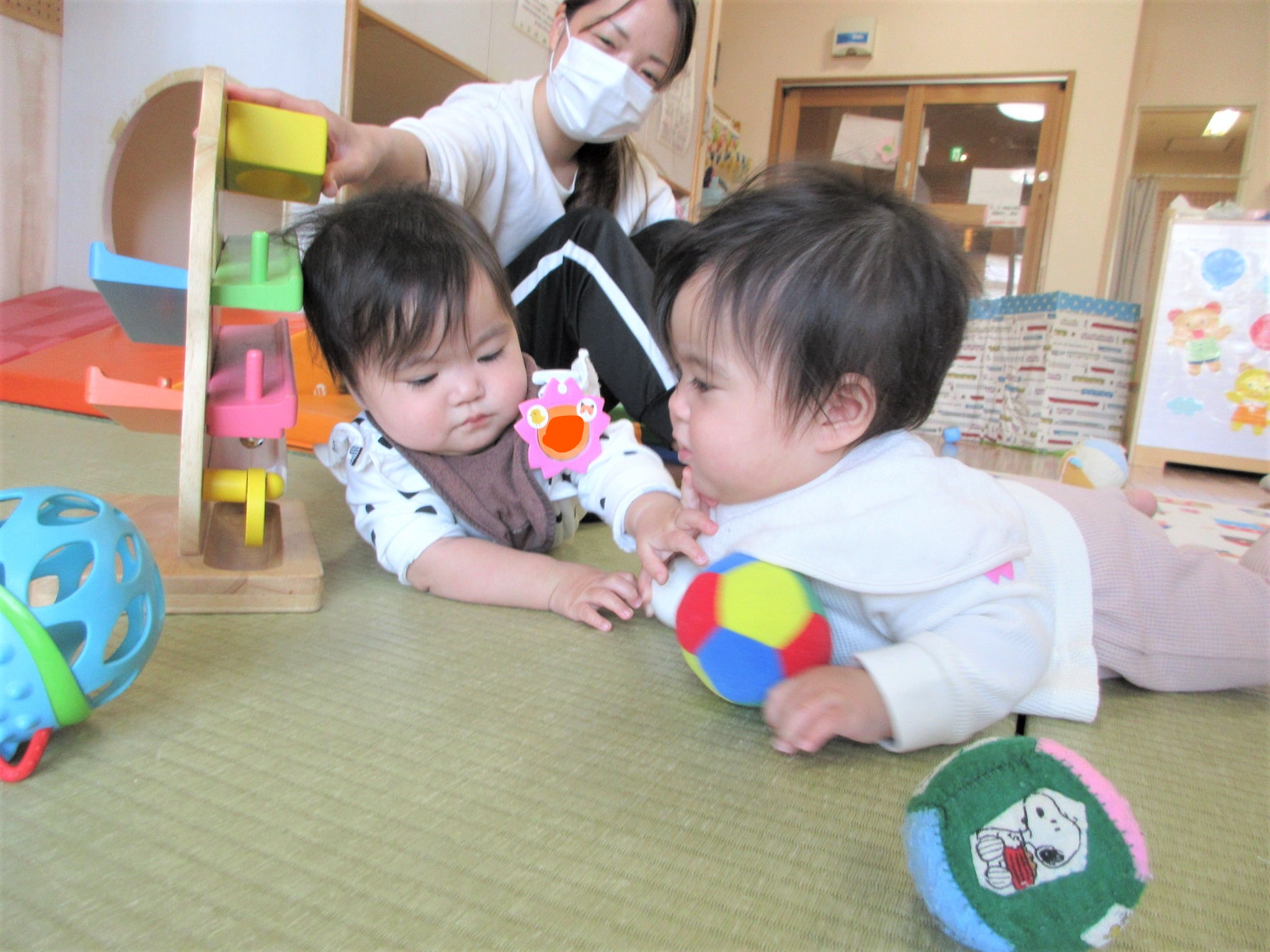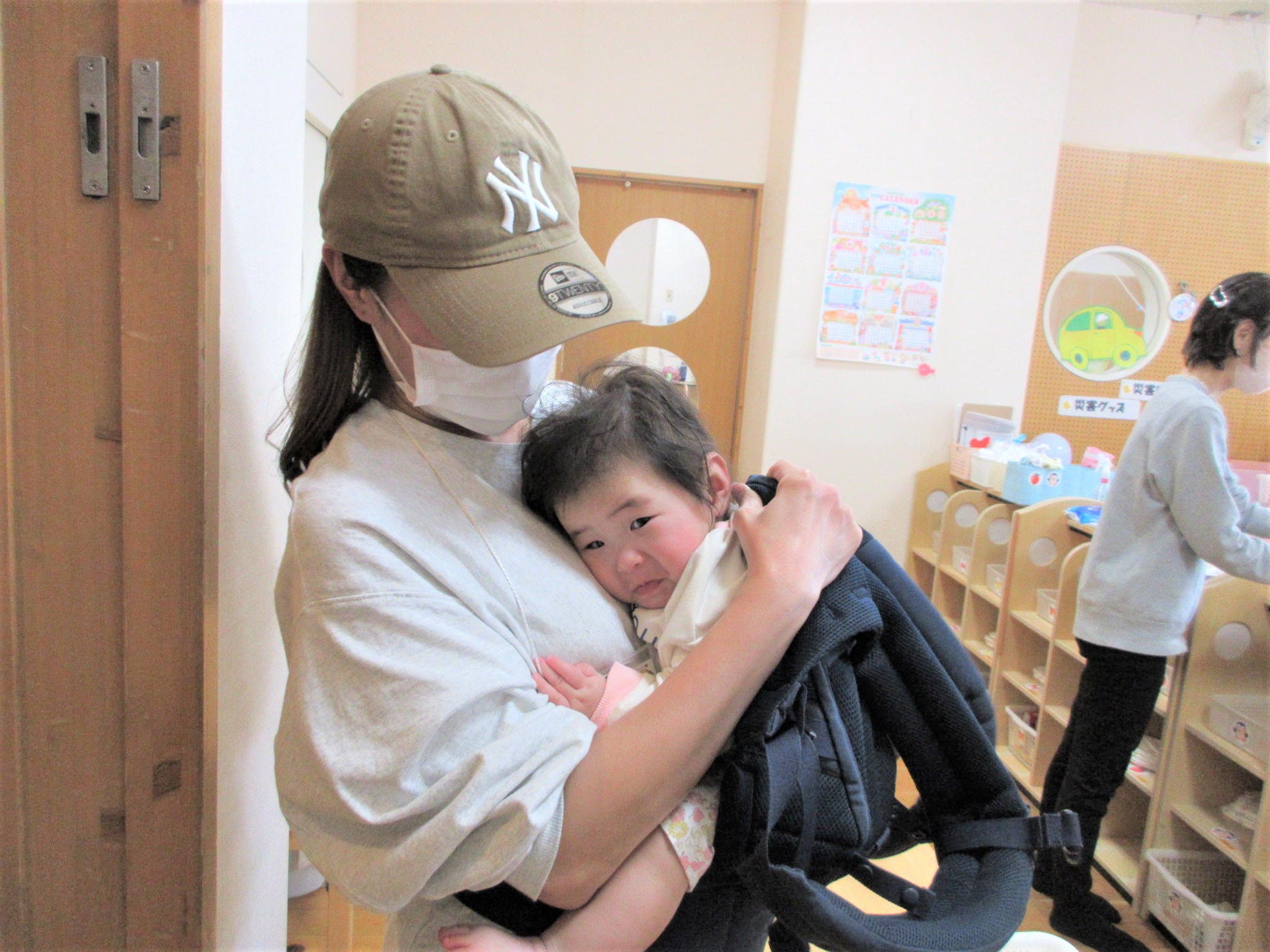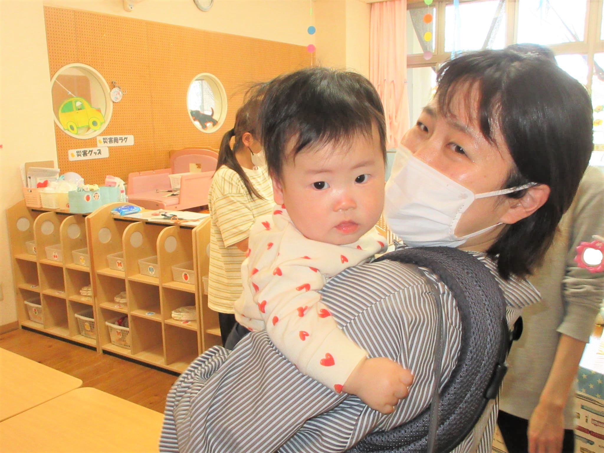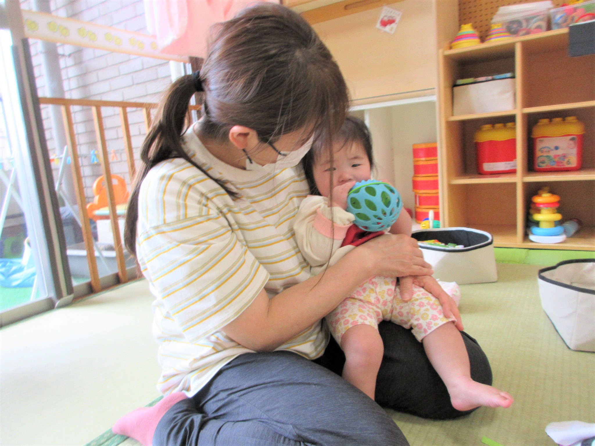 先生が側にいたり抱っこしていると落ち着いて遊ぶ姿もありました☆