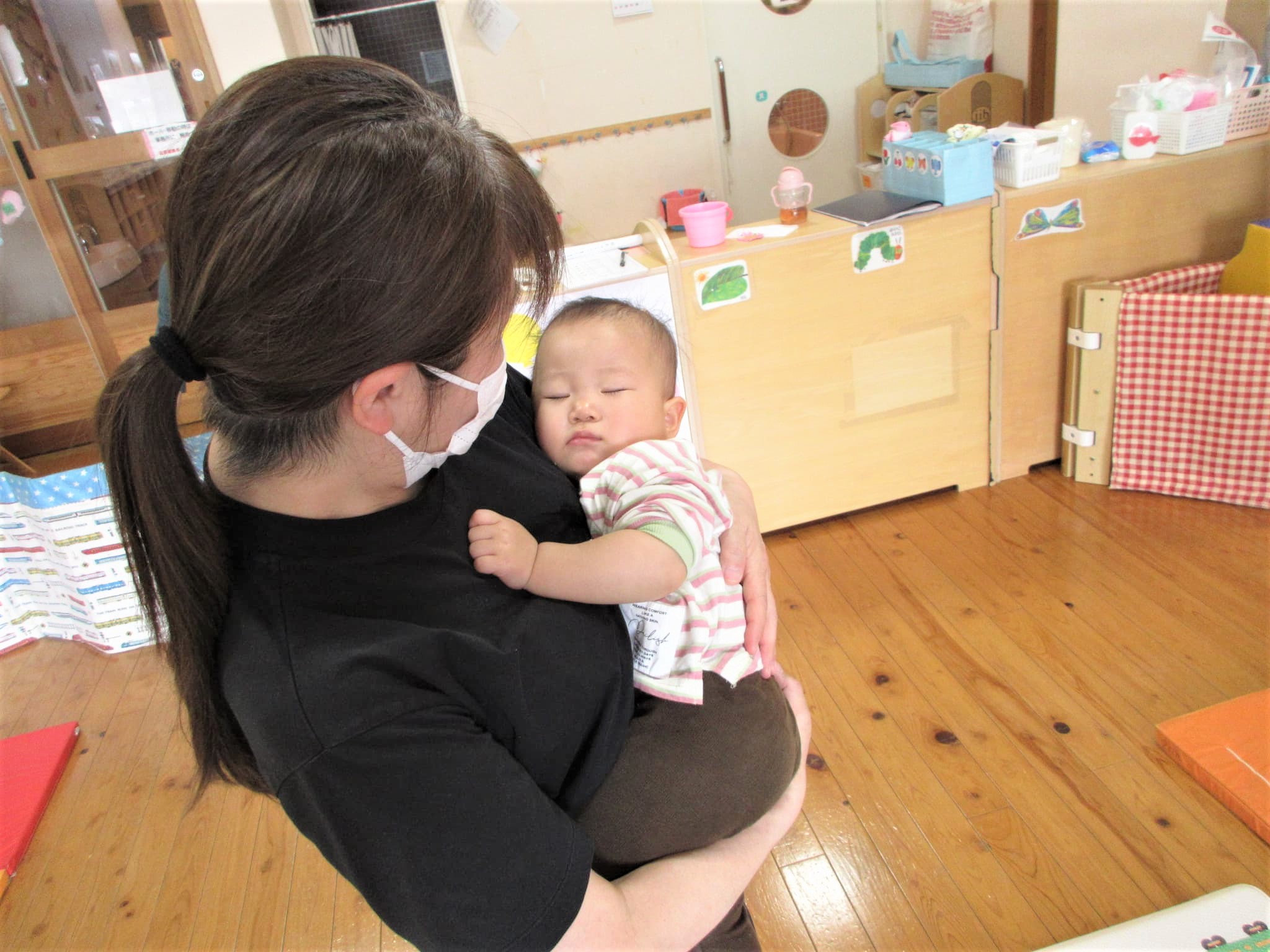 先生に抱っこされながら眠りにつく子どもも・・・♪