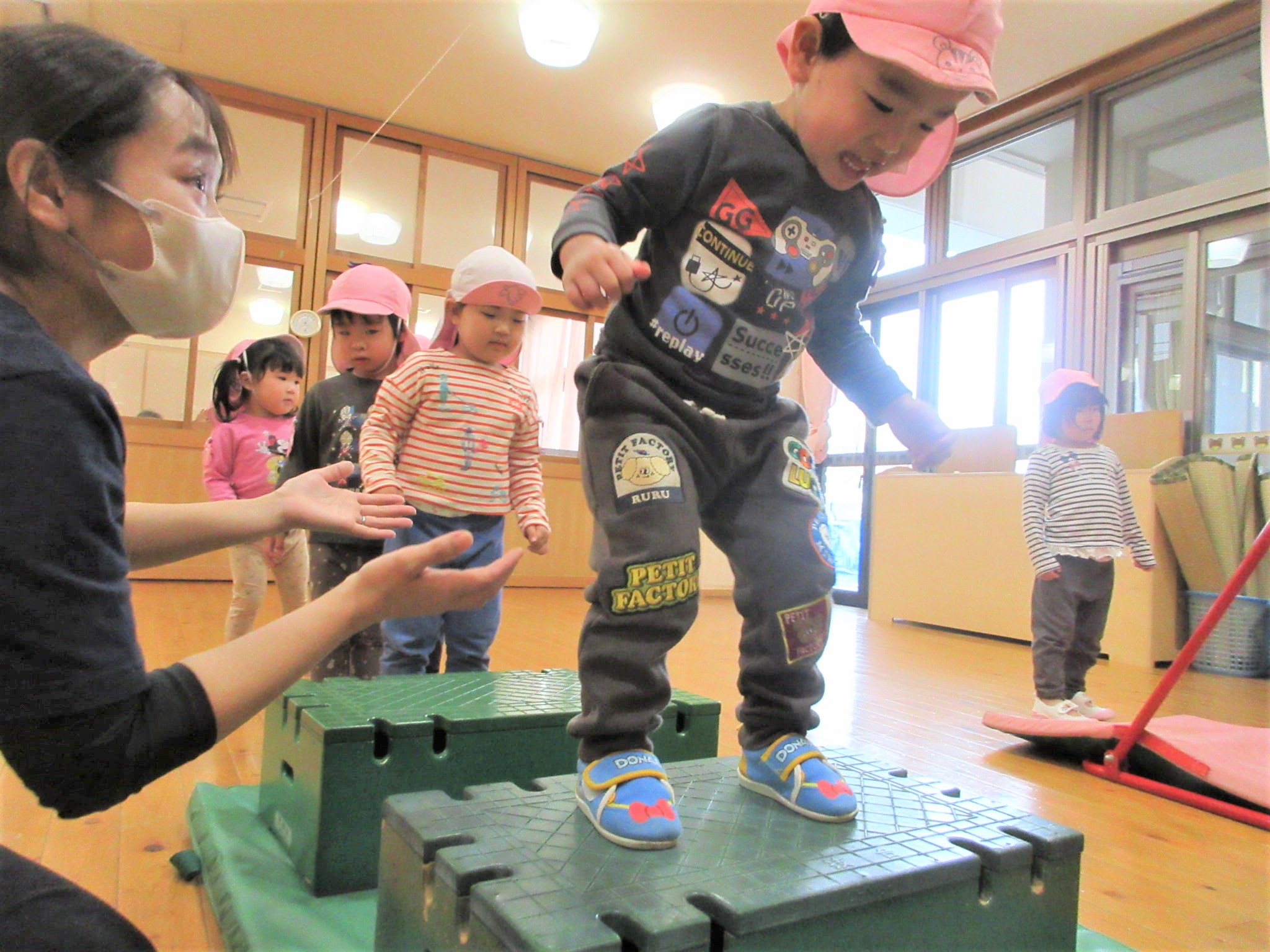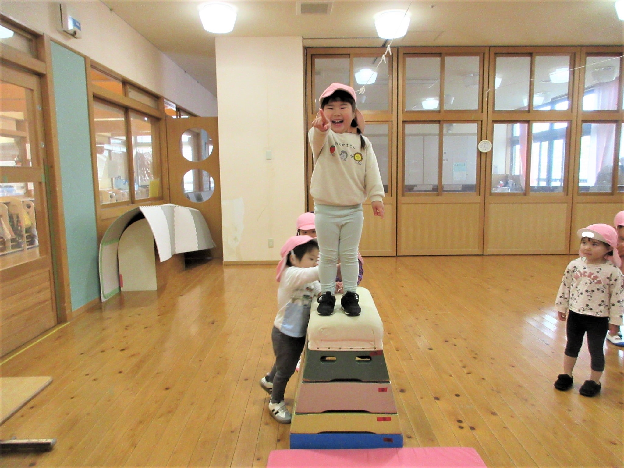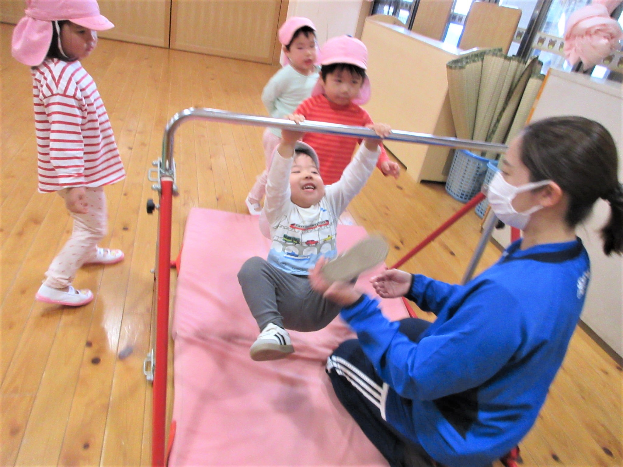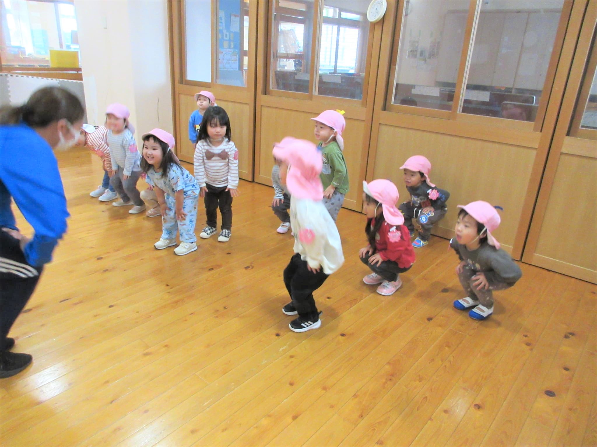 「きょうは たいそう きょうしつや~♪」と、楽しみにしていた子どもたち・・・♪