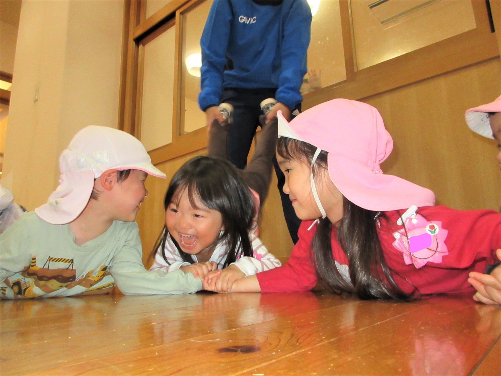 『Mちゃん』先生の足元に座って友だちを見ている子どもです!
