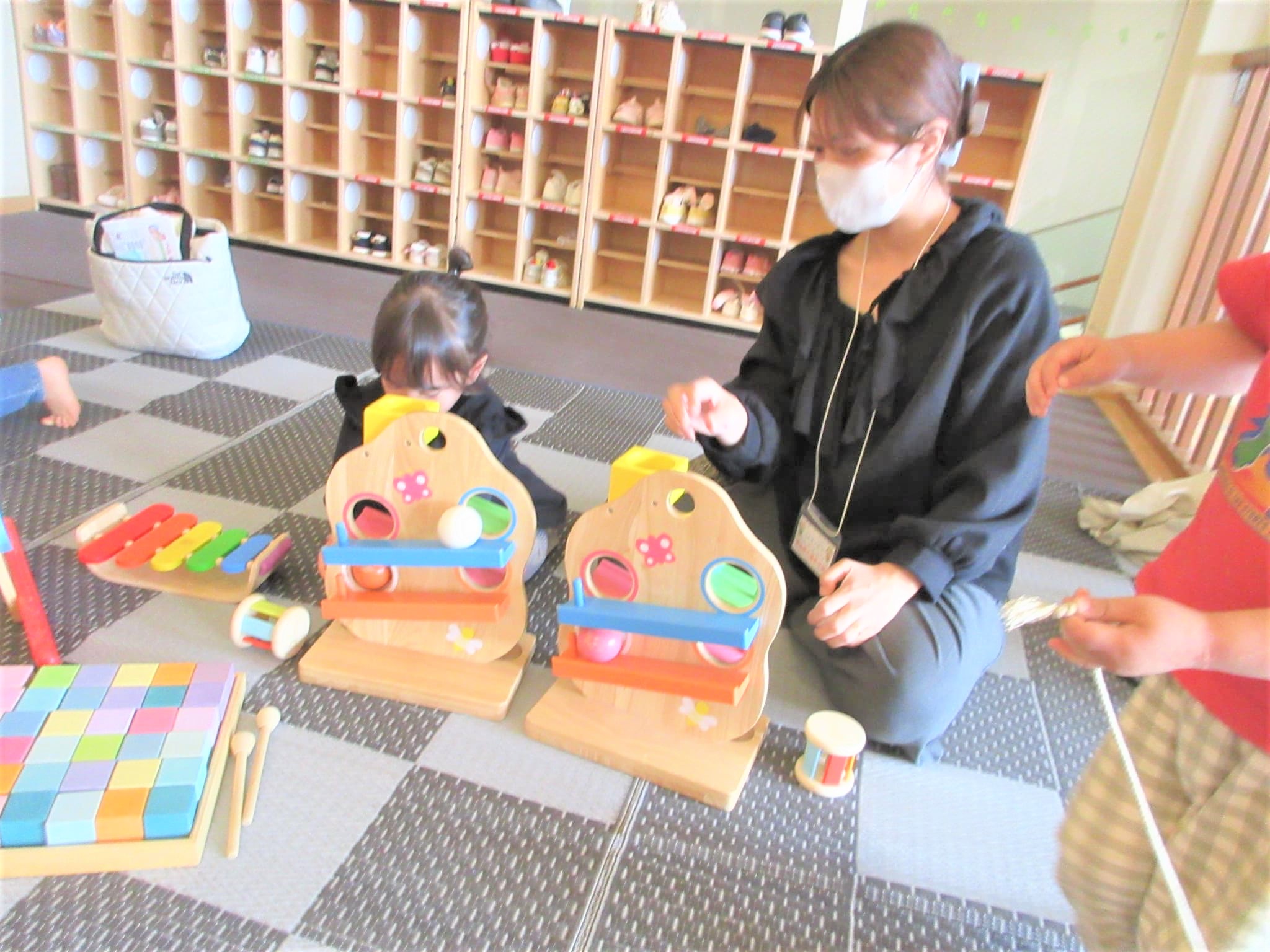 今日は、うさぎ組やぱんだ組の子どもも玩具で遊んだので