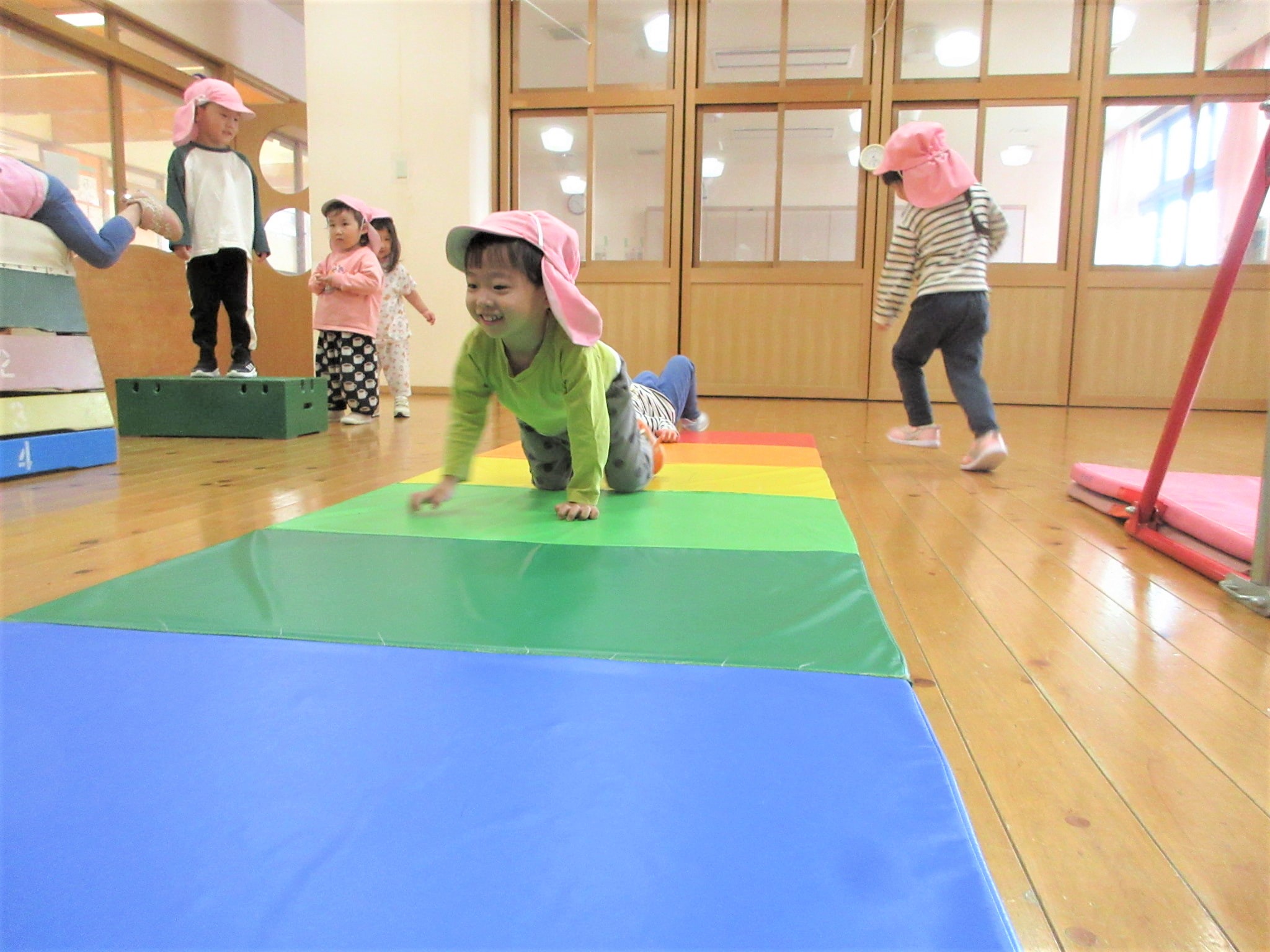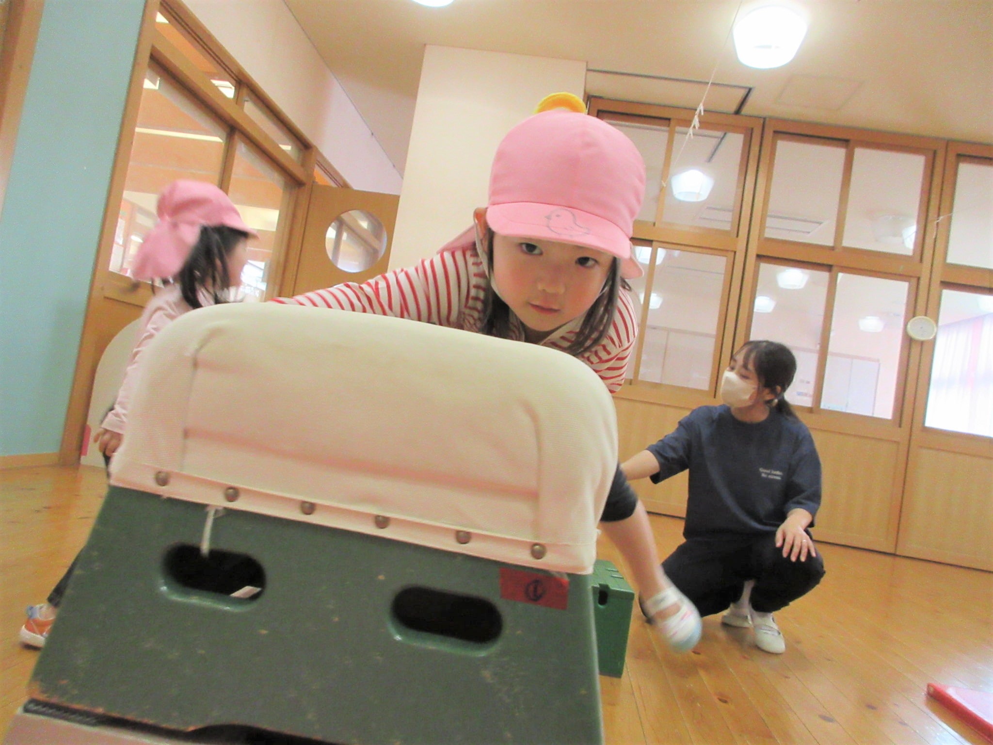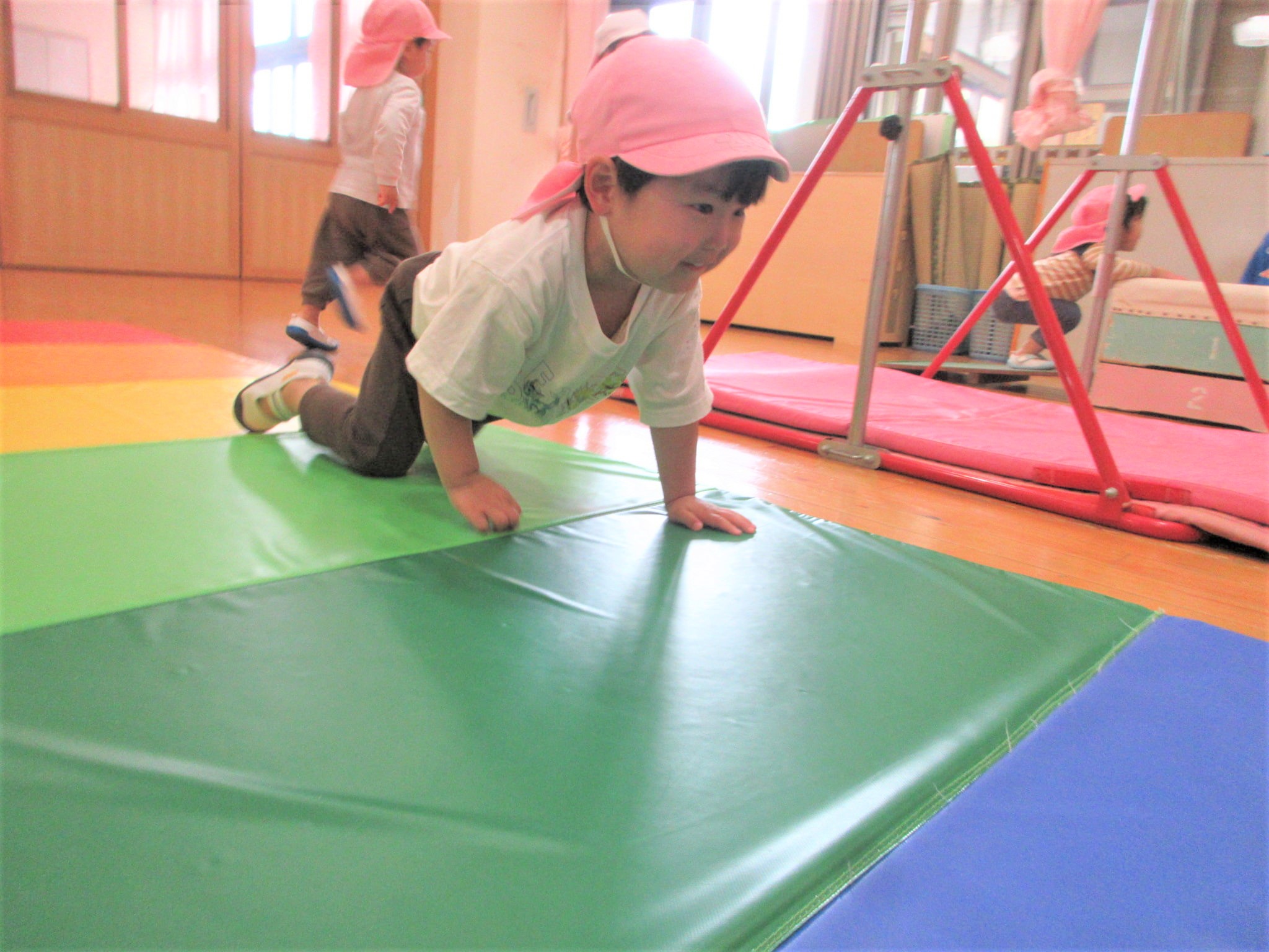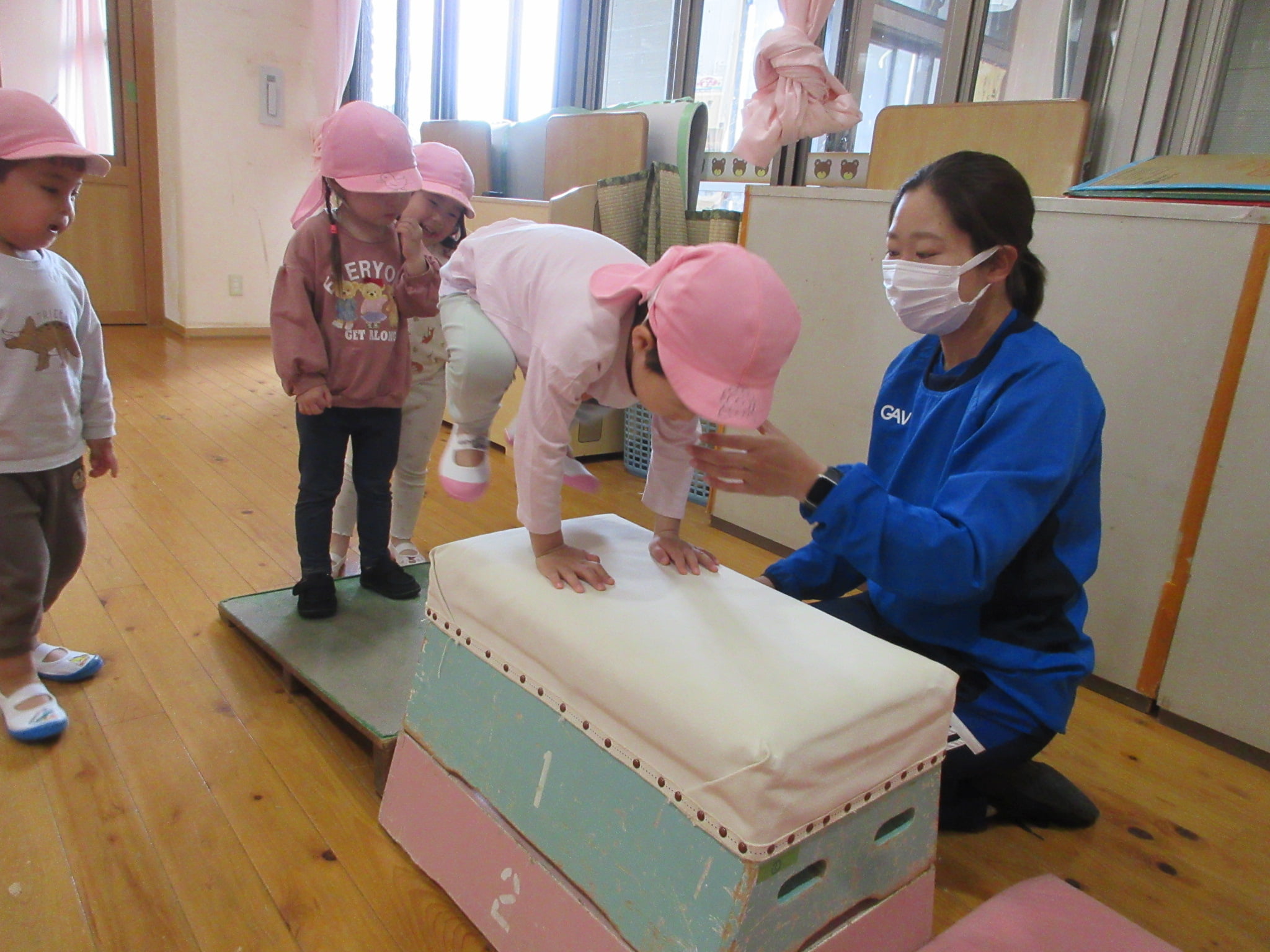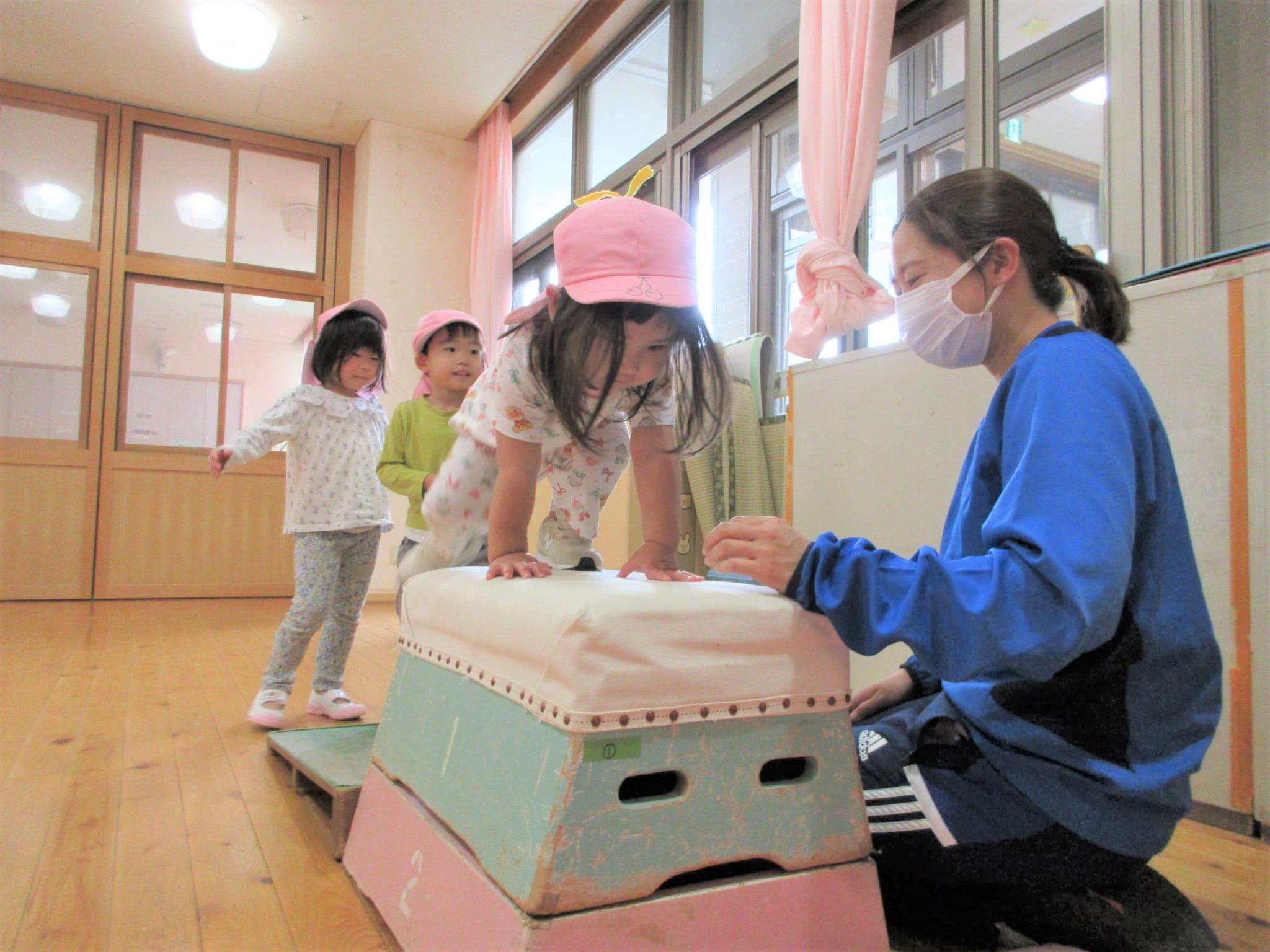 『自分で考えて自分の力』で登り、跳び箱の上に立った時に達成感あふれる笑顔がありました!
