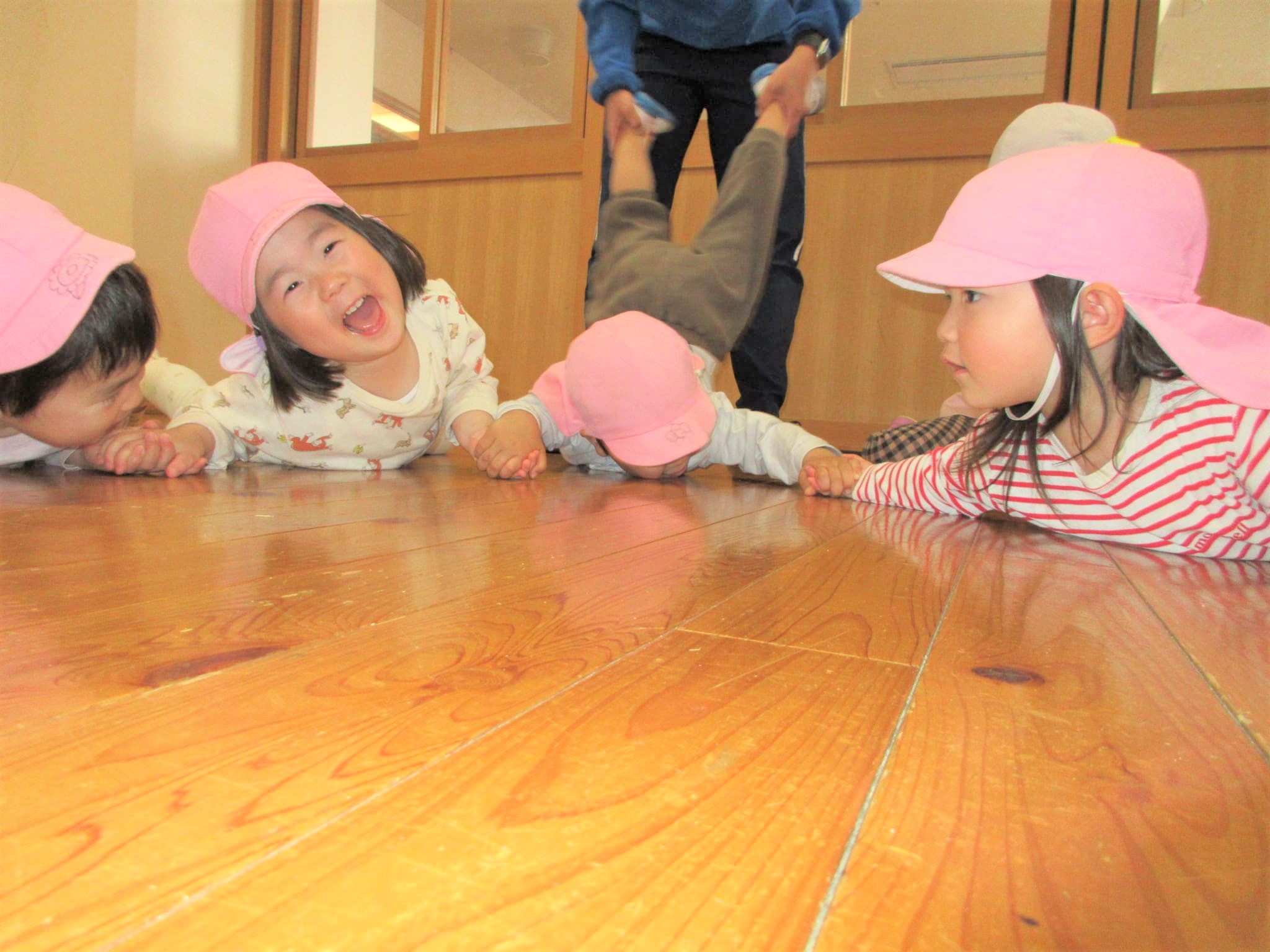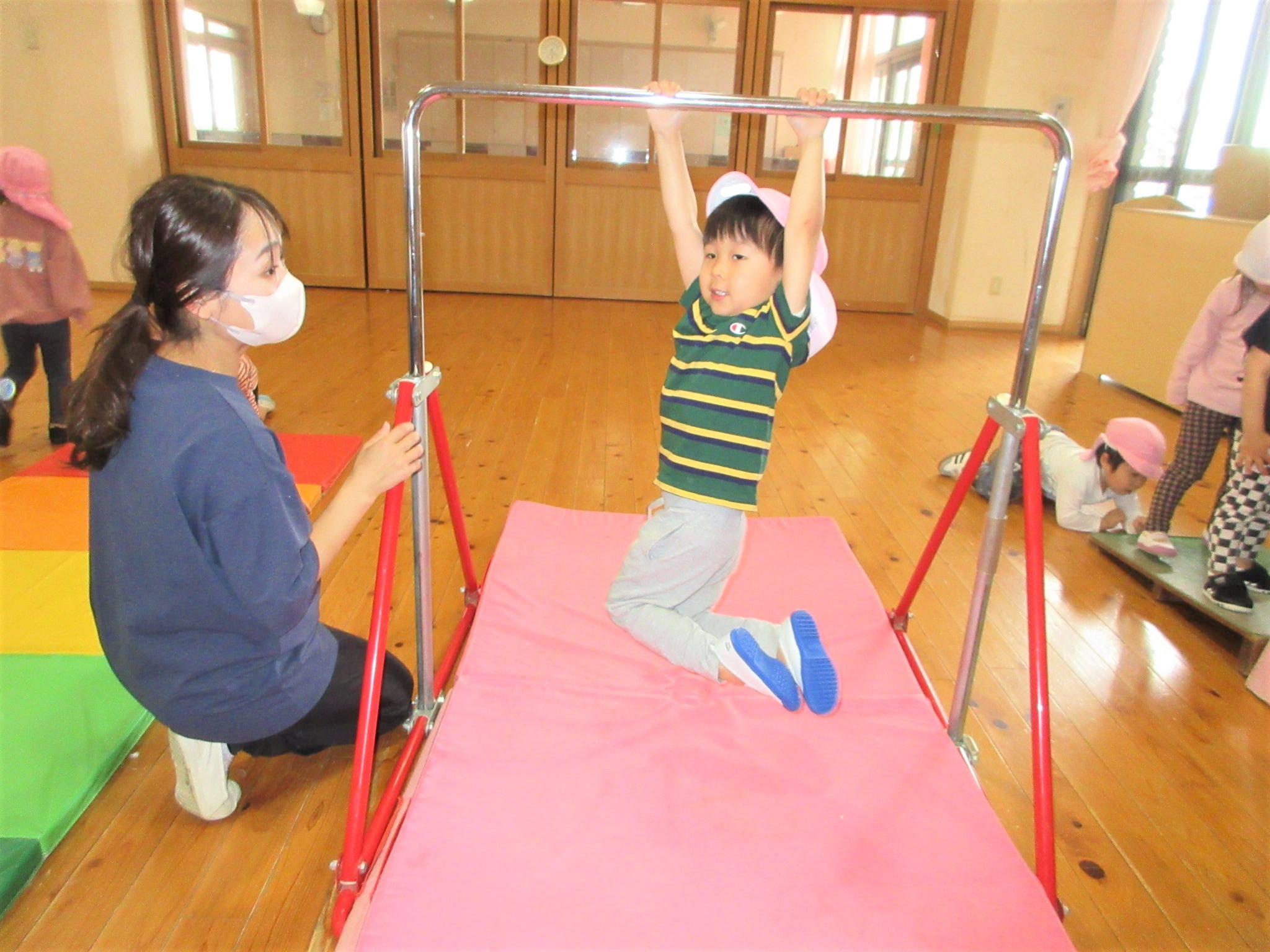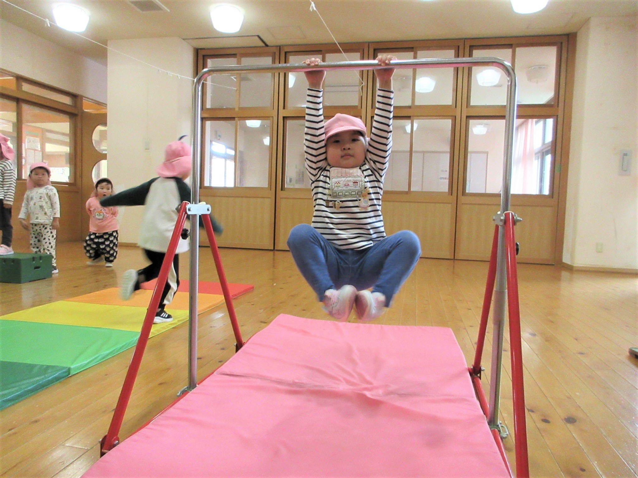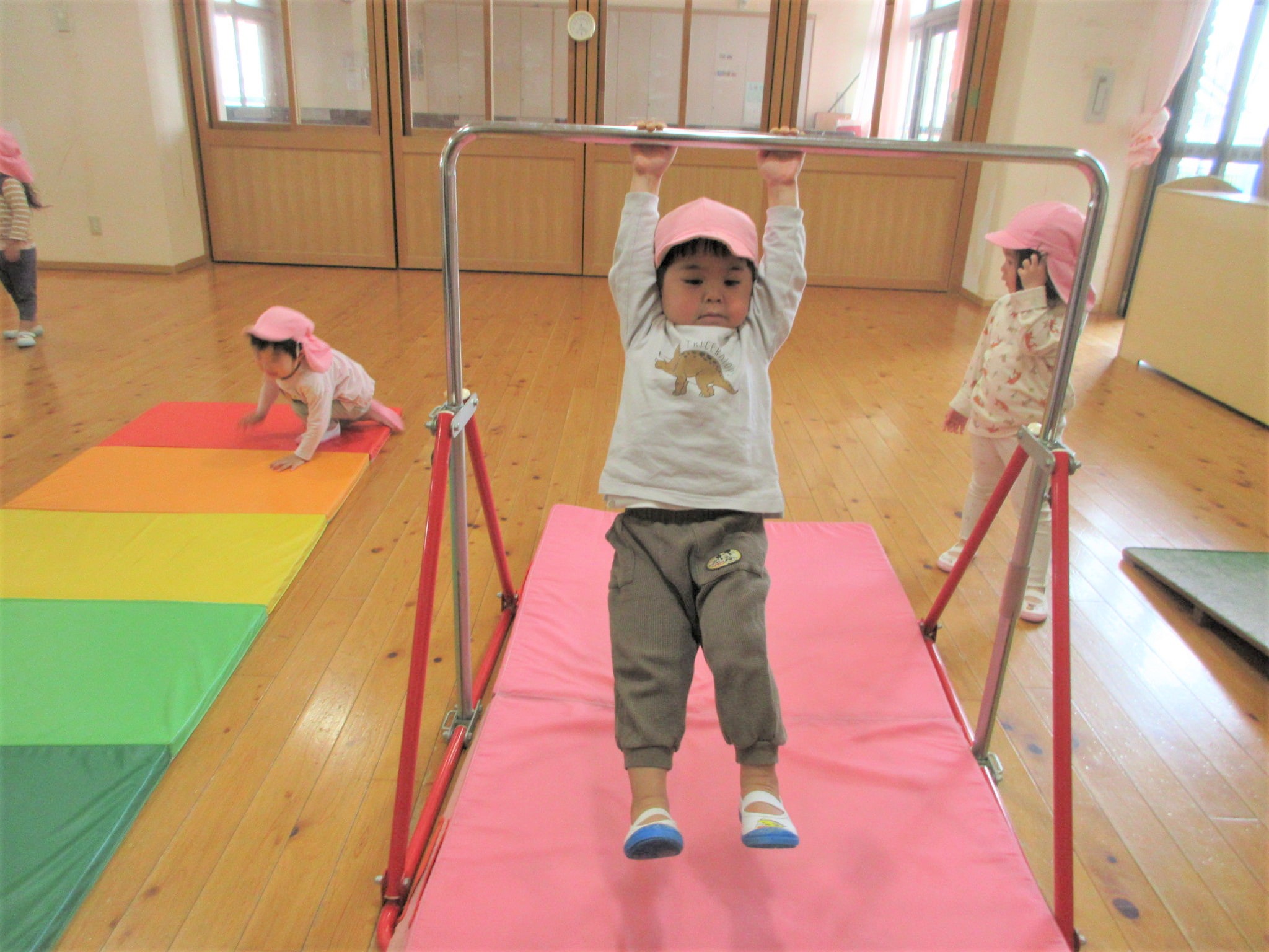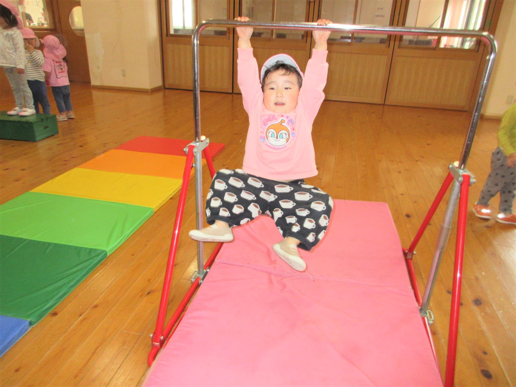 ぶら下がりながら、左右の足の裏を合わせることにも挑戦しています!!