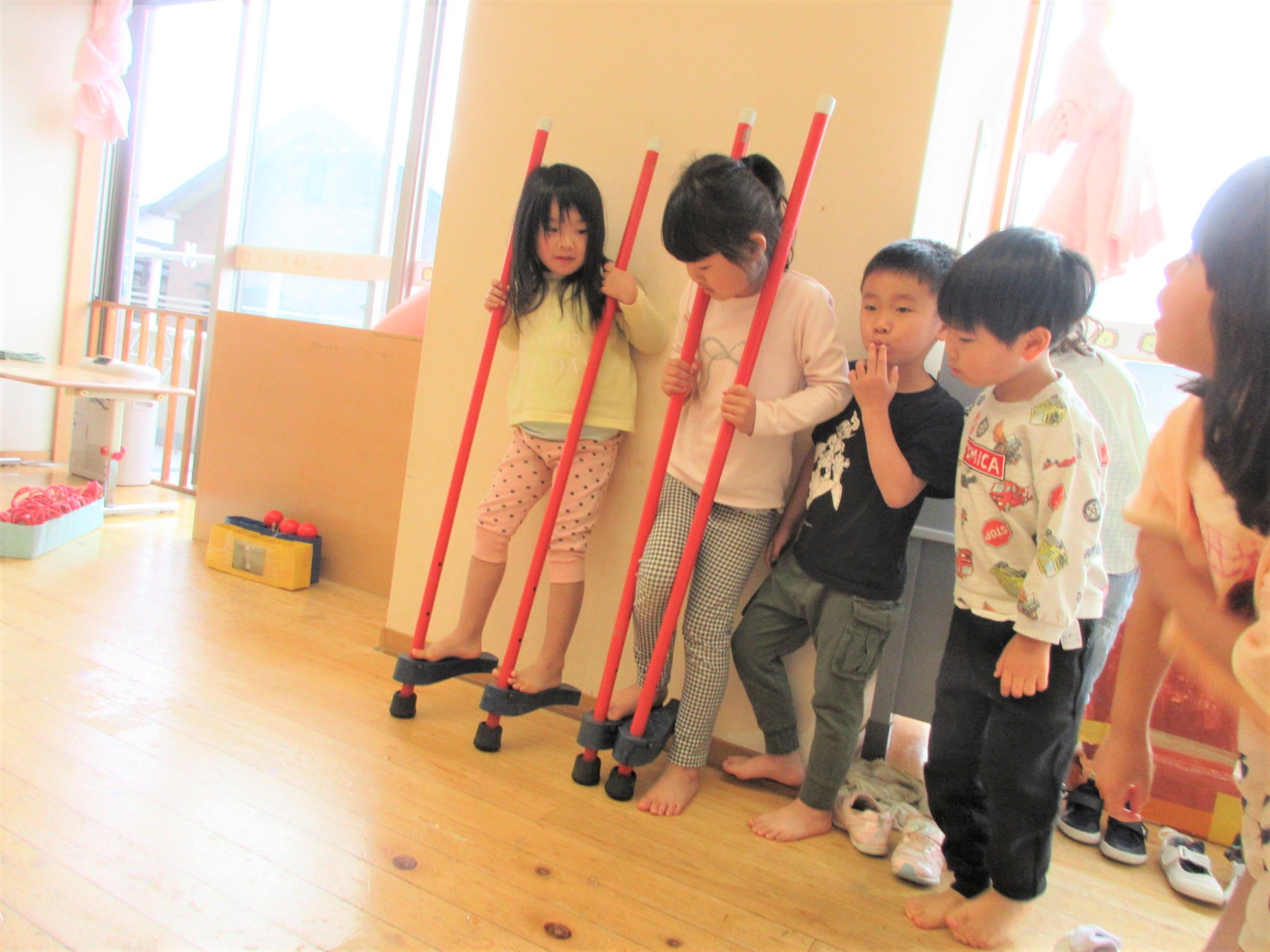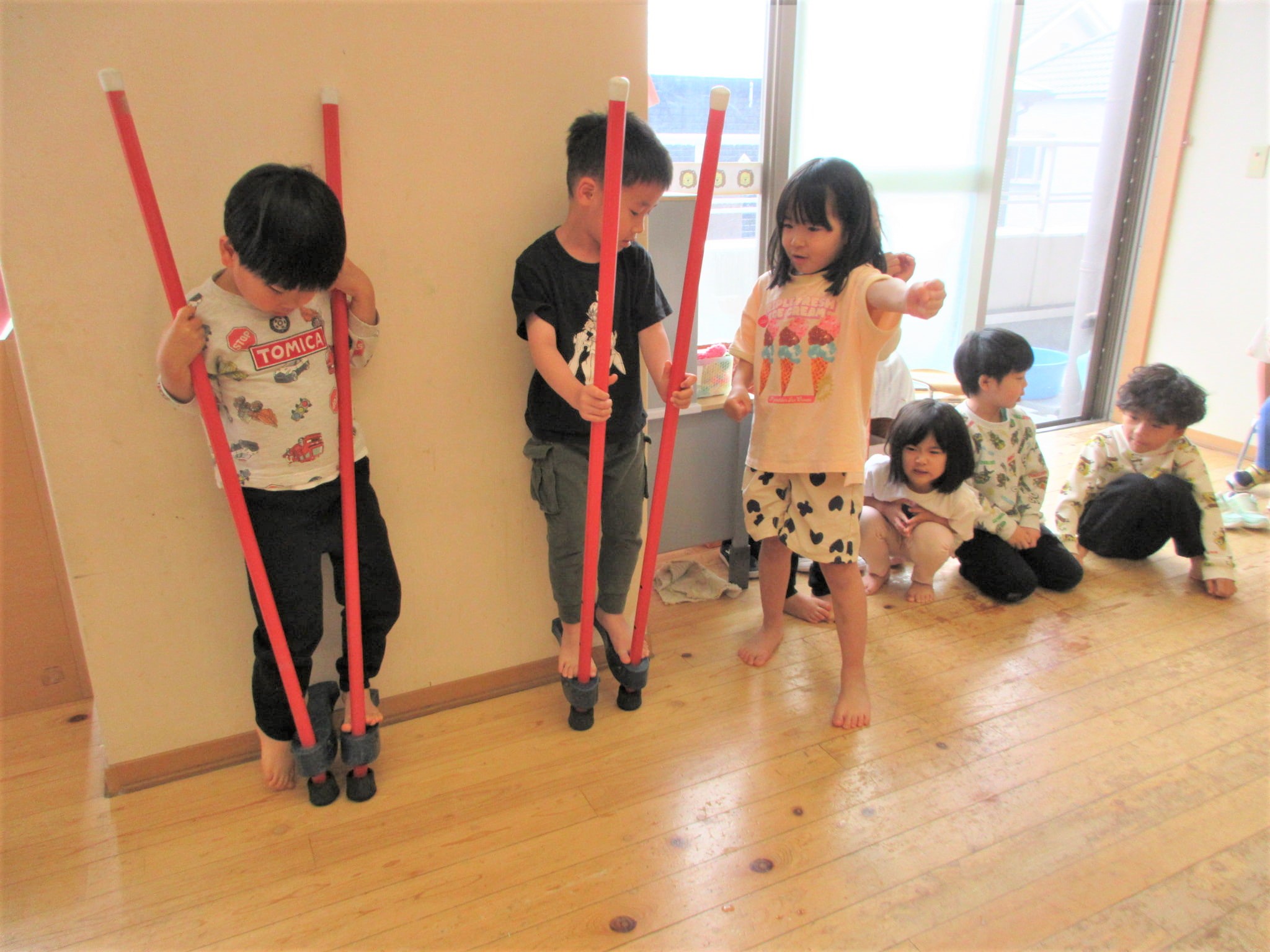 友だちに竹馬の乗り方の“コツ”を具体的に教えてあげていました!