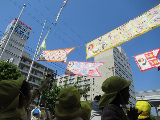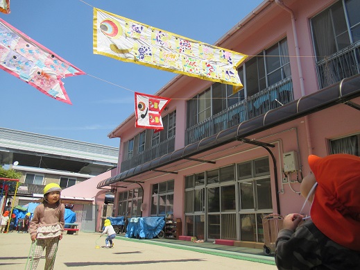 朝から「きょうは、こいのぼりをあげるひ~」と嬉しそうな子ども達。
