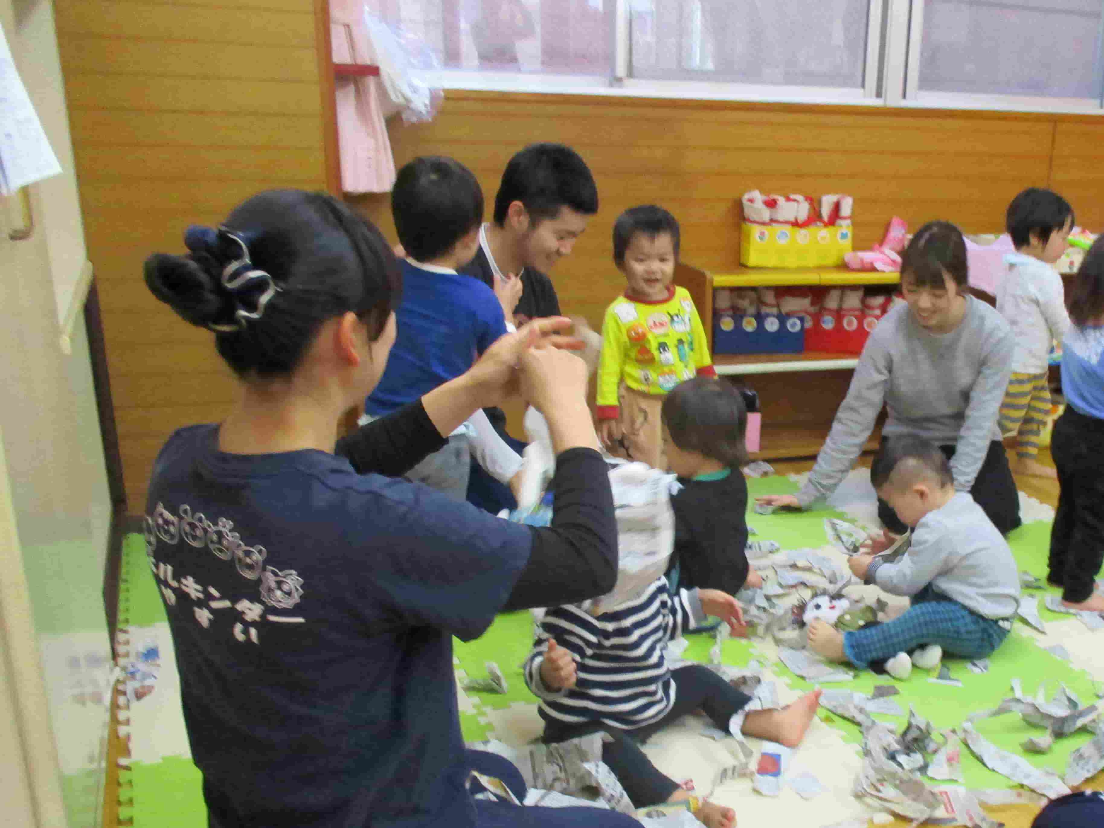 新聞を『びりびり』とちぎる感触を楽しんだり、上に投げて(新聞を雪に見たてて)