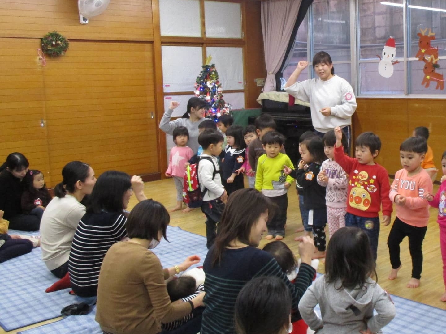園児(0歳児~2歳児・5歳児)の歌や手遊びを見てもらったり・・・