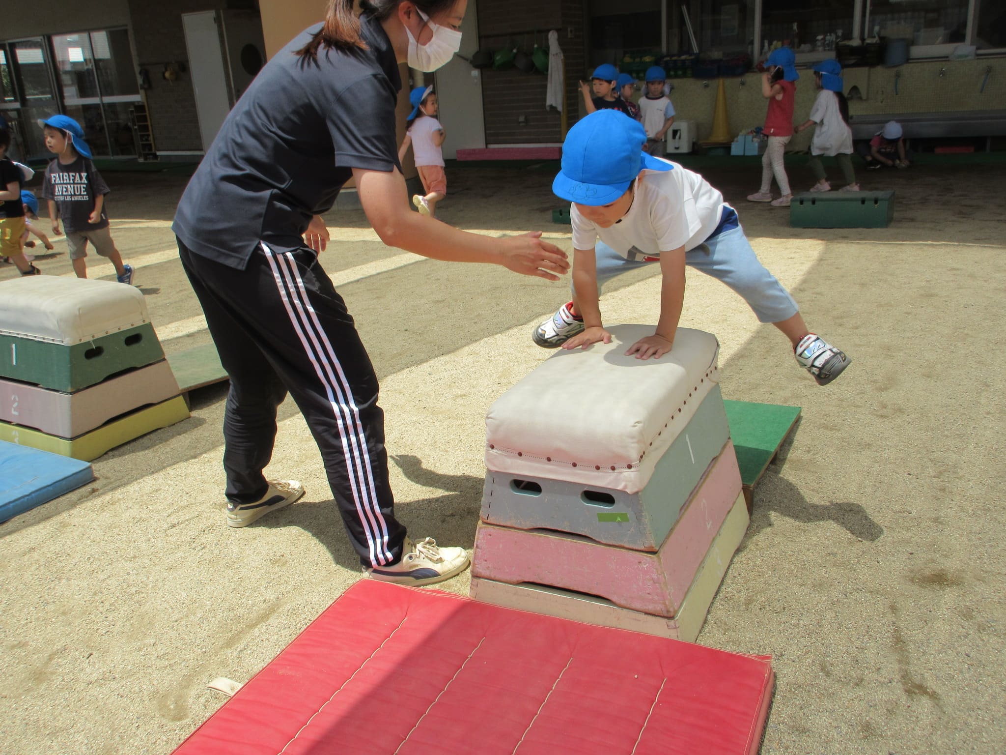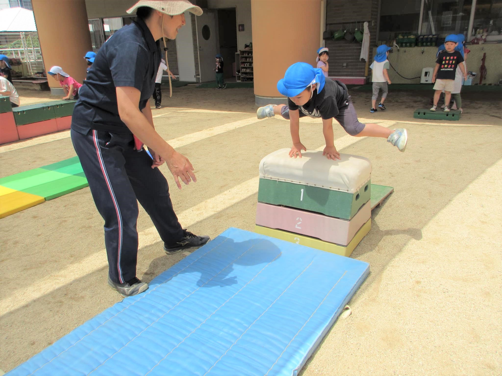 「あと、跳び箱を腕をぎゅと押したら跳べるようになるよ!」と