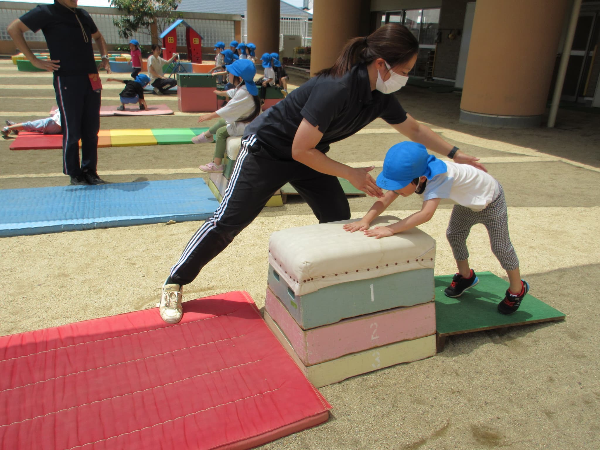 「たろうせんせ~ みててや~」と言って、何度も再チャレンジしていました♪