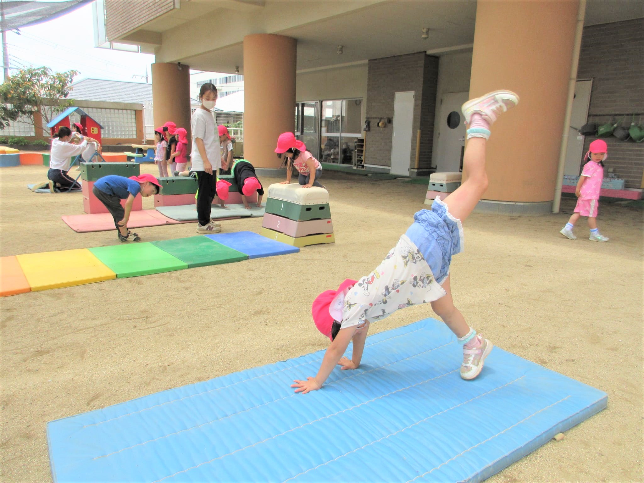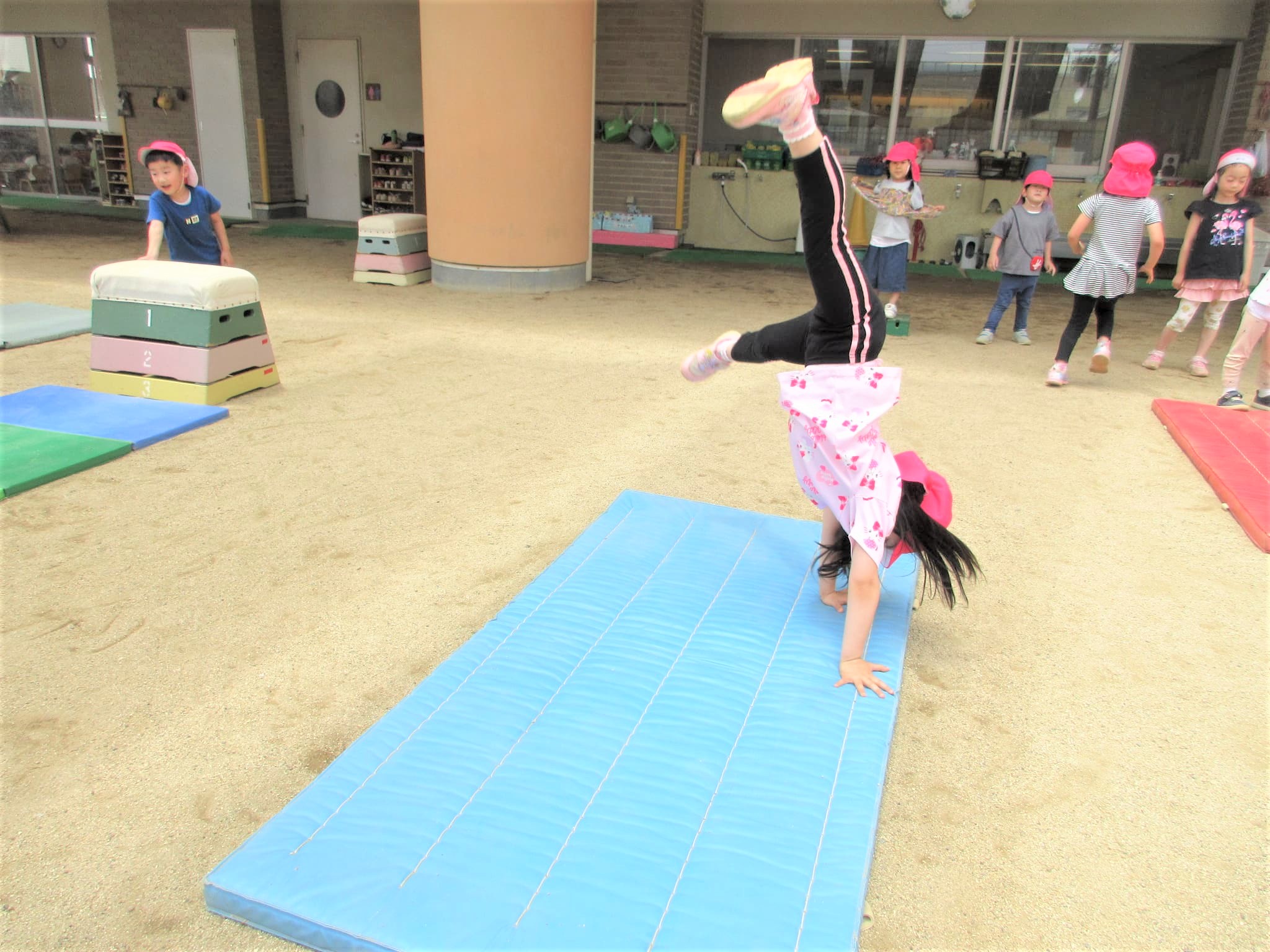 鉄馬の後は、側転も意欲的に取り組んでいます!