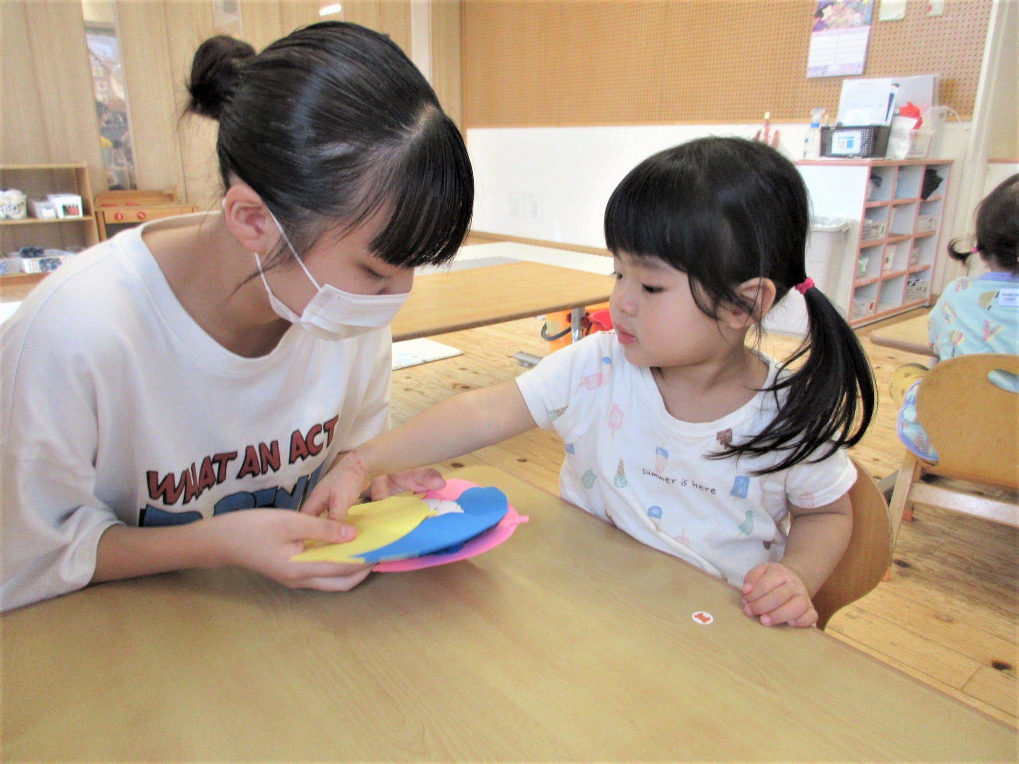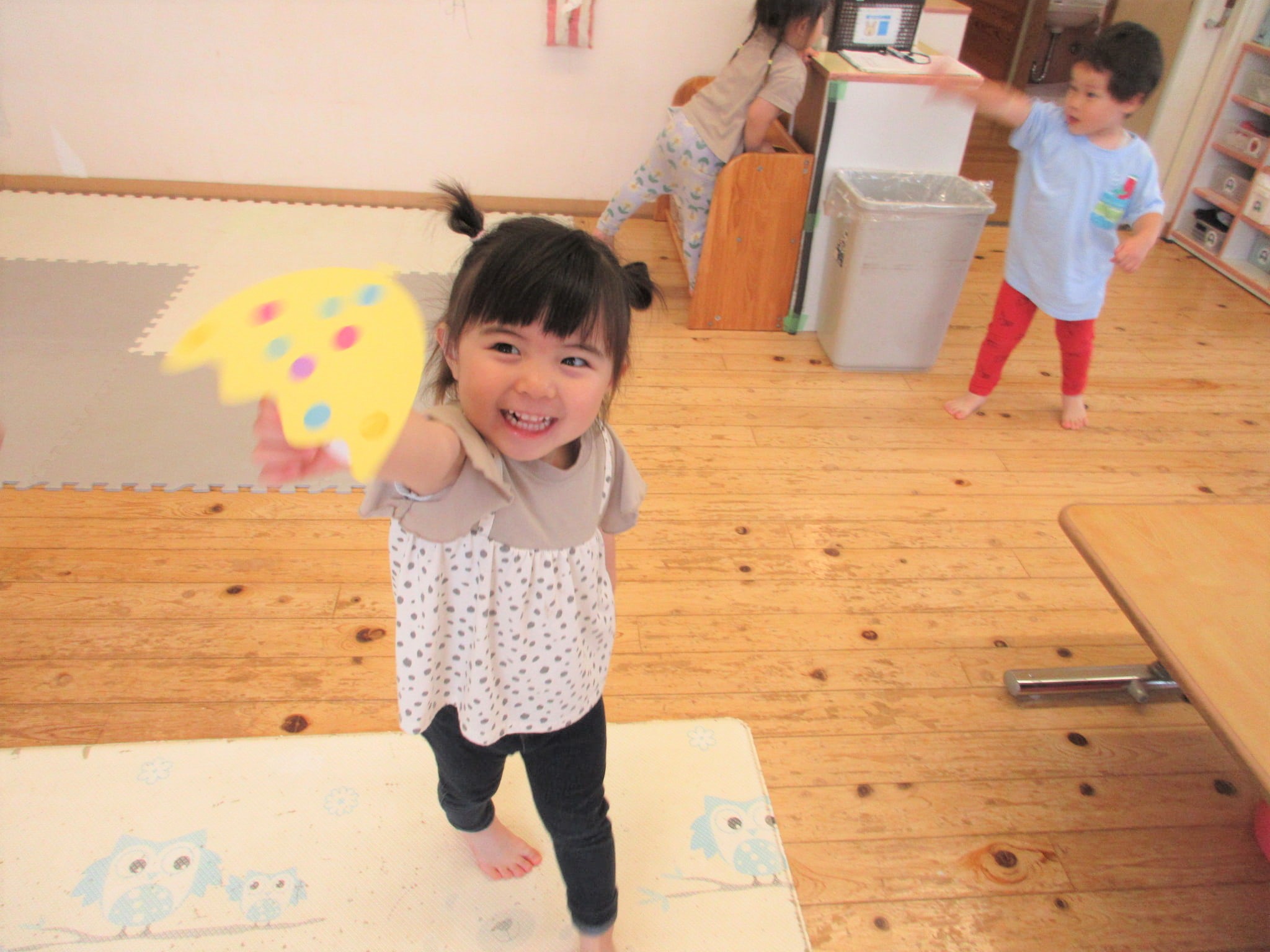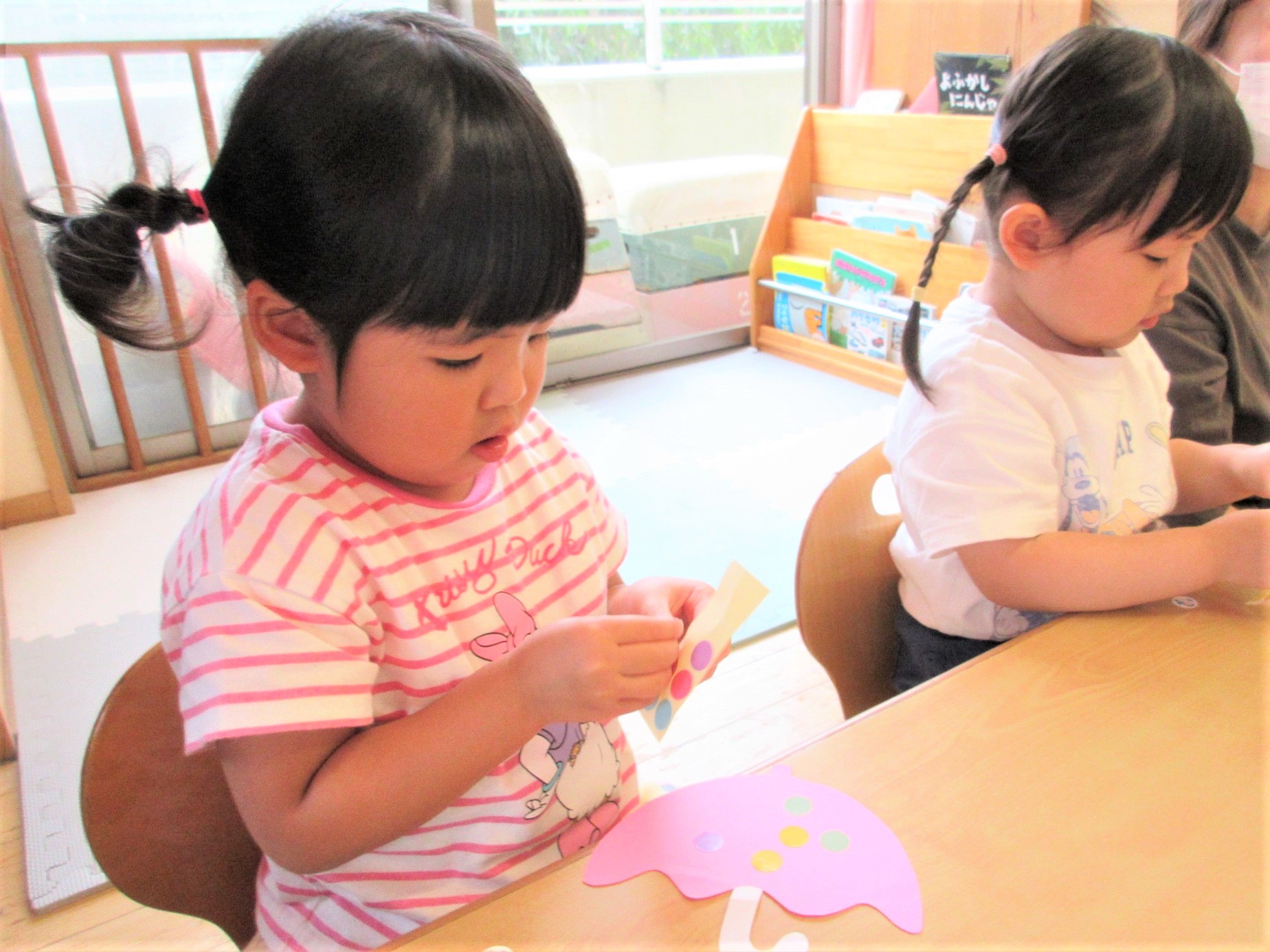 絵本を読んだ後、実習生の「傘、作ってみる?」のひと声で