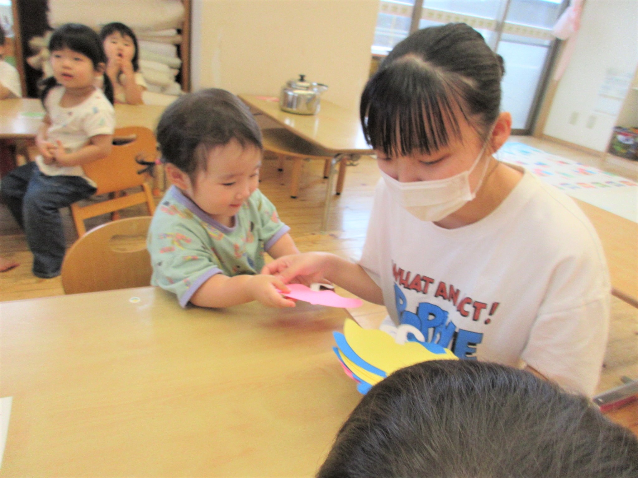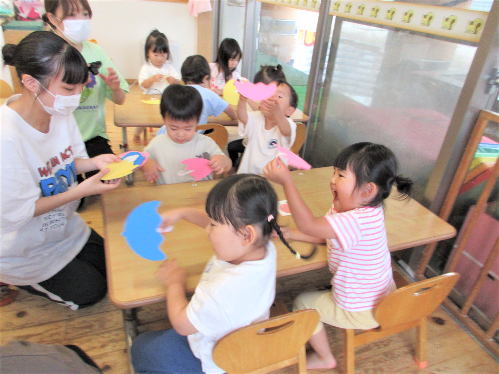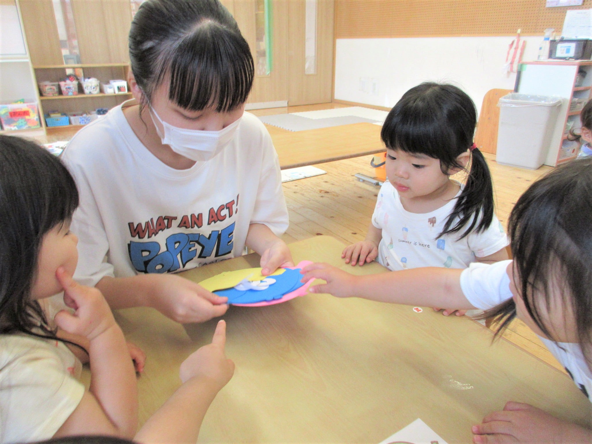 絵本を読んだ後、実習生の「傘、作ってみる?」のひと声で