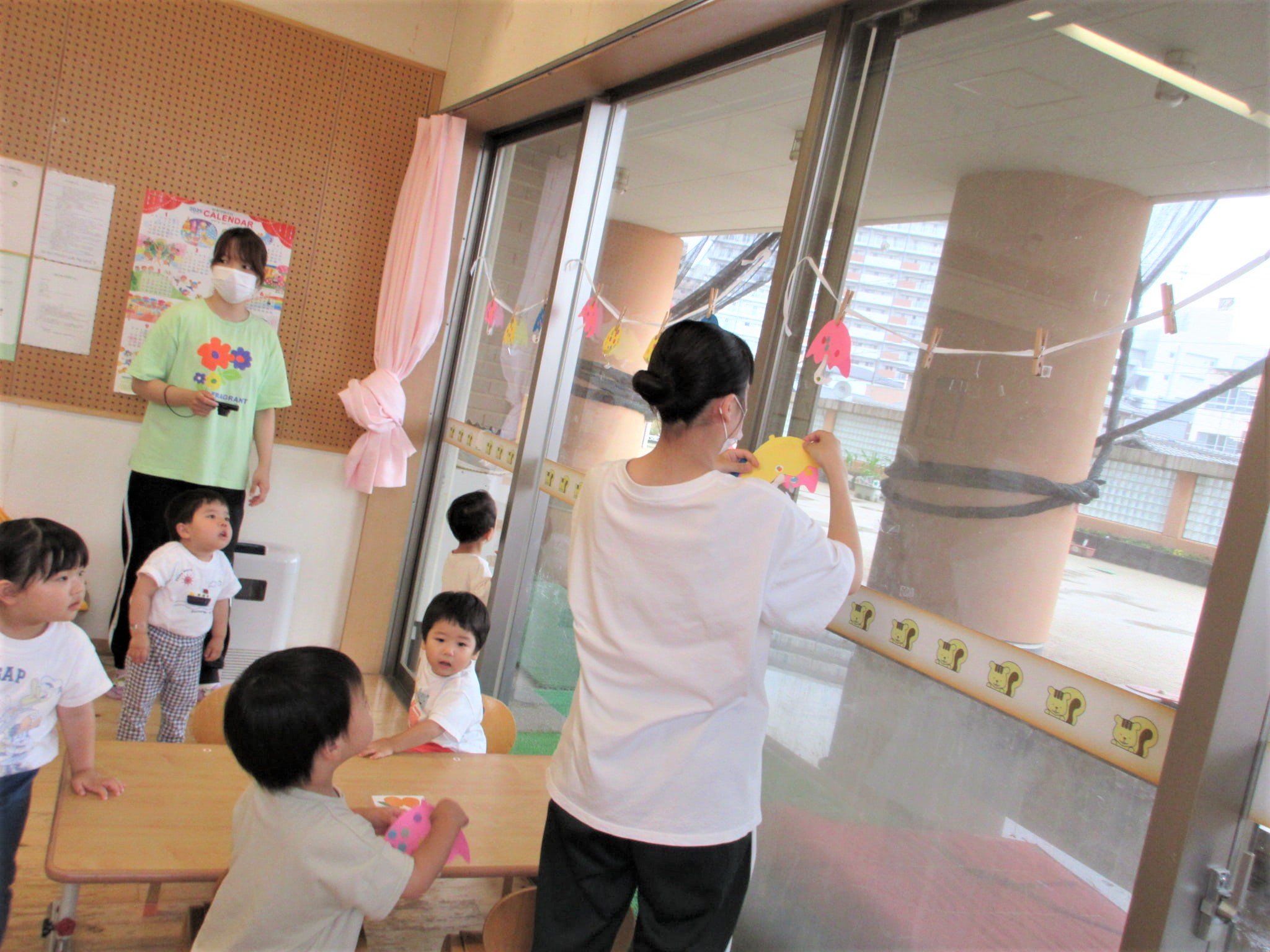 一人ひとりが作った素敵な“傘”を窓に飾ってもらいました☆