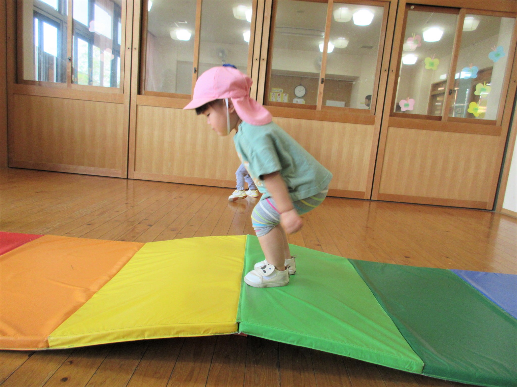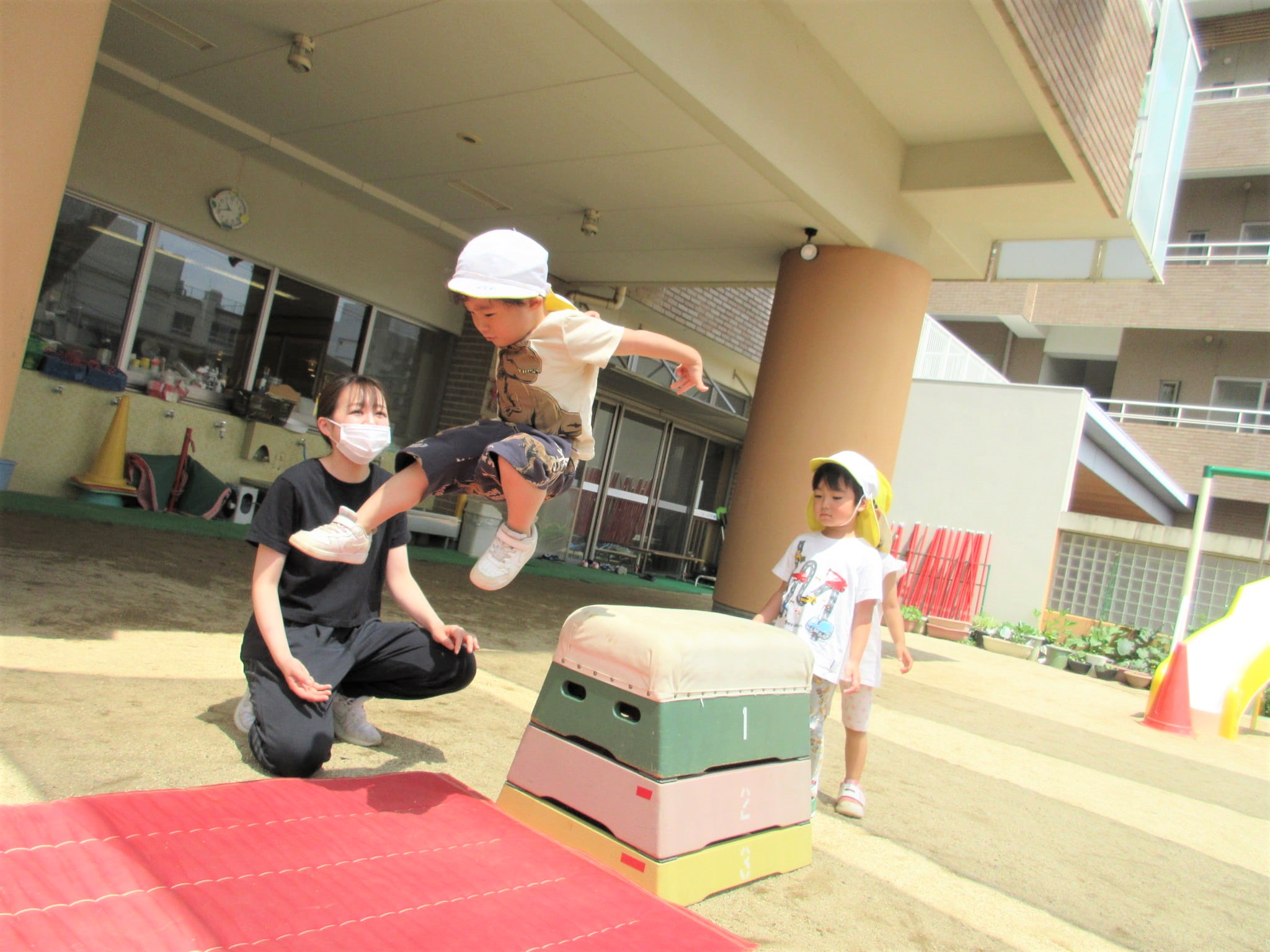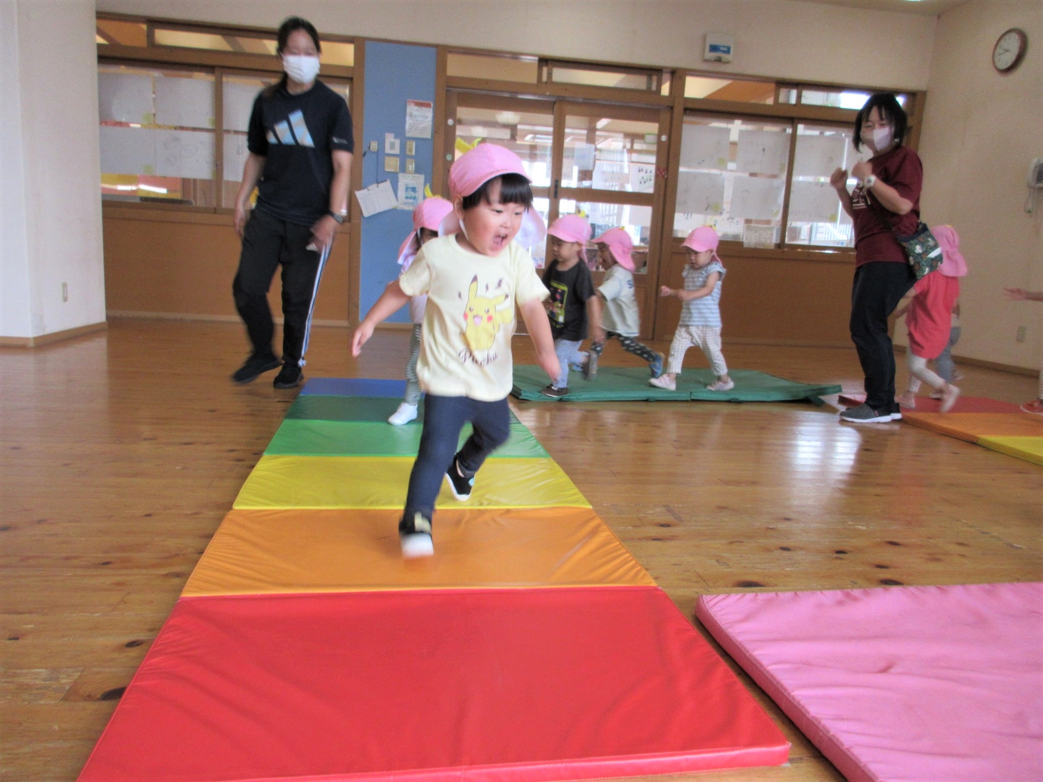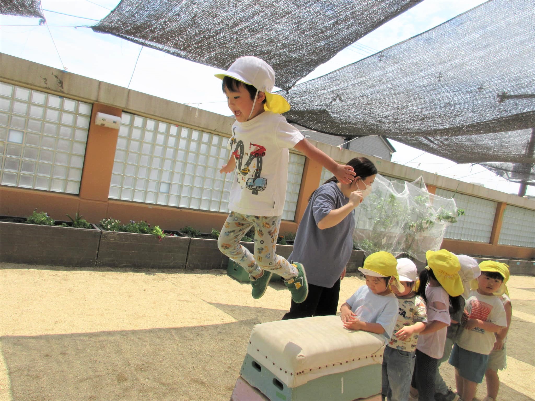 両足でピタッと止まる着地も、保育者の声掛けから意識する子どもも増えてきました☆