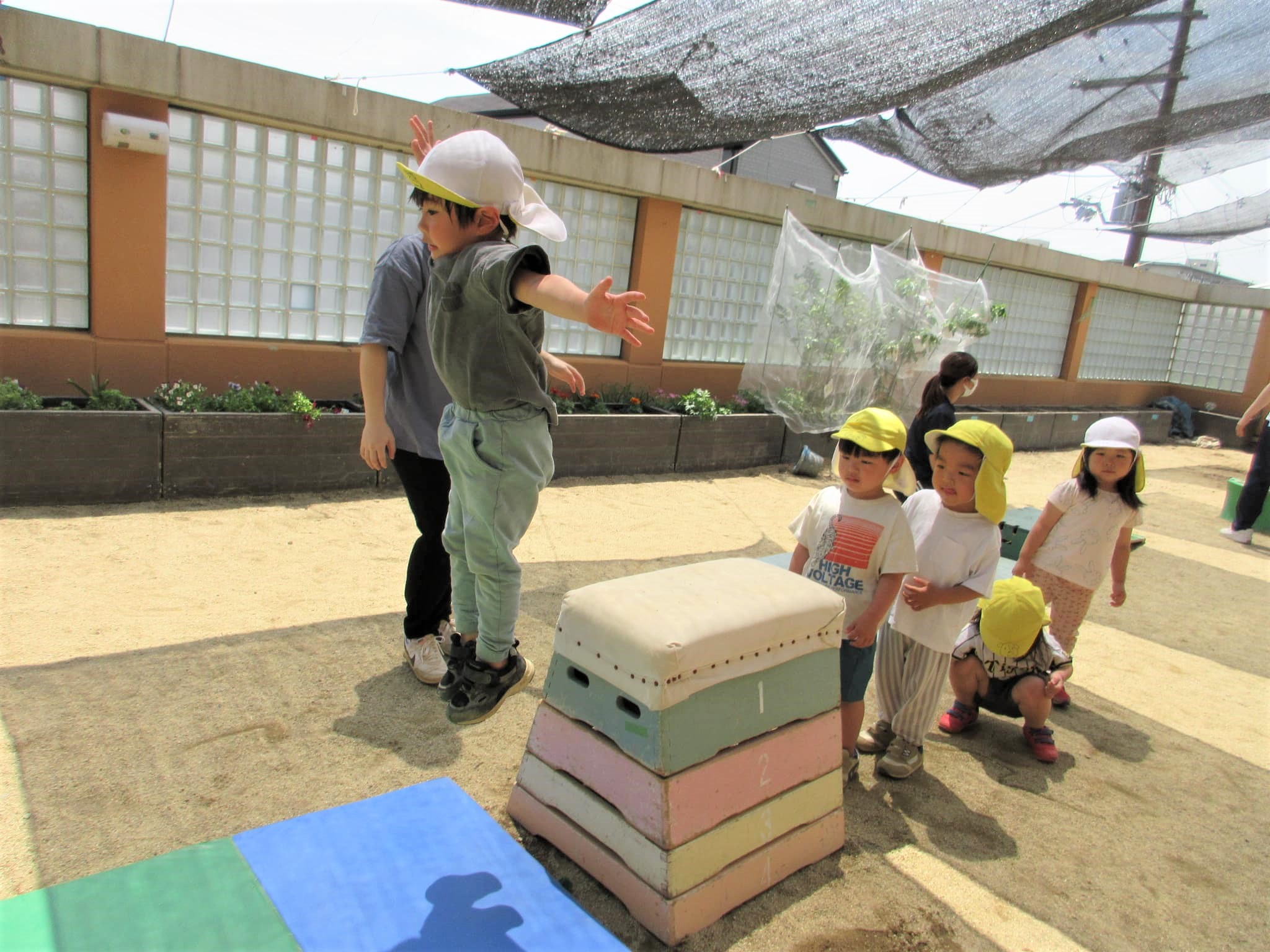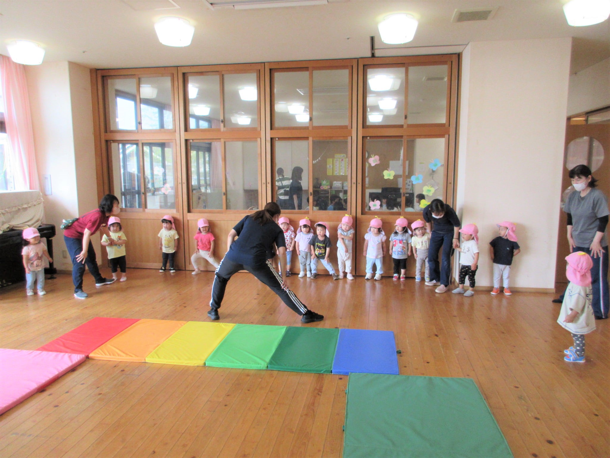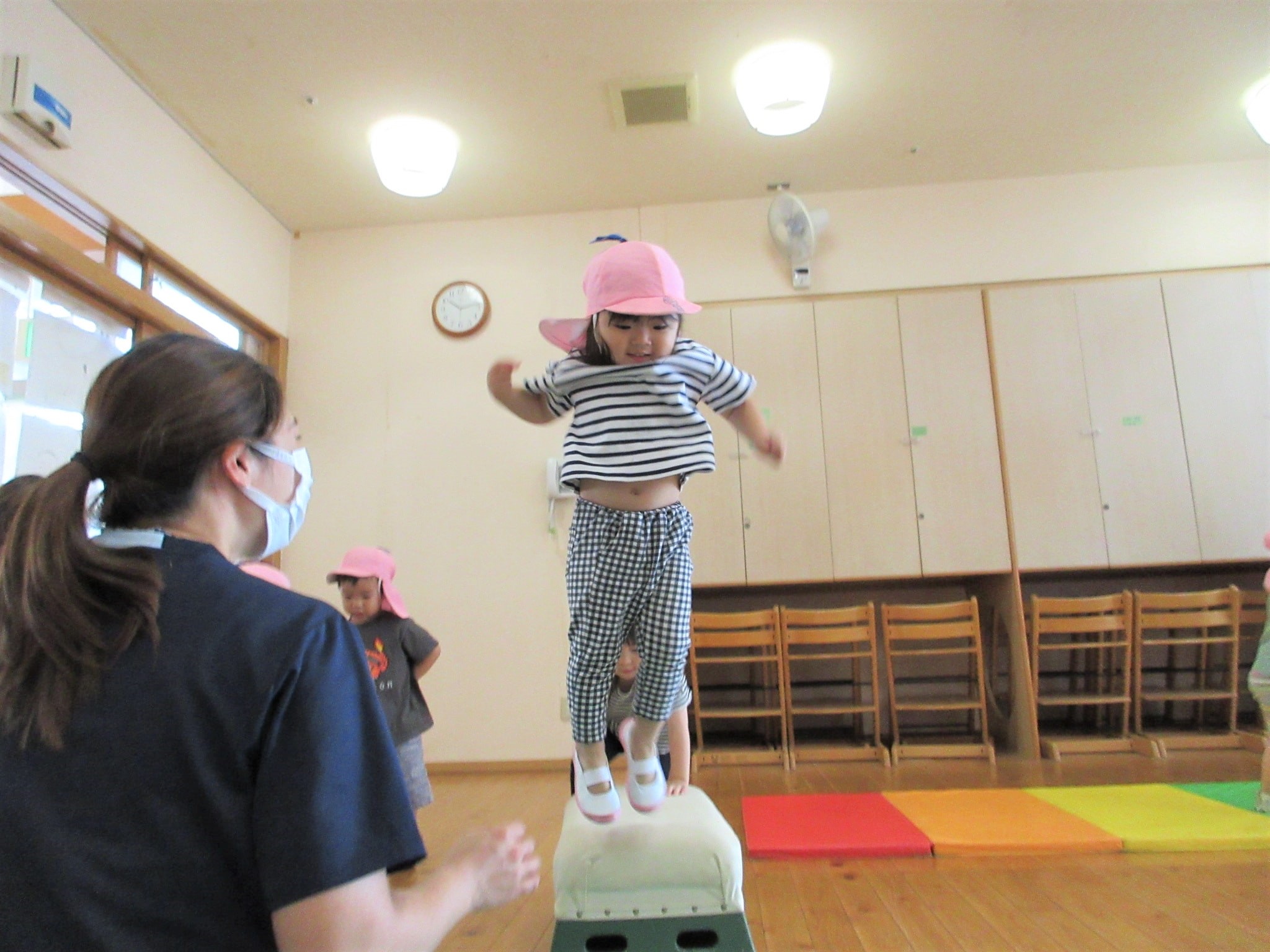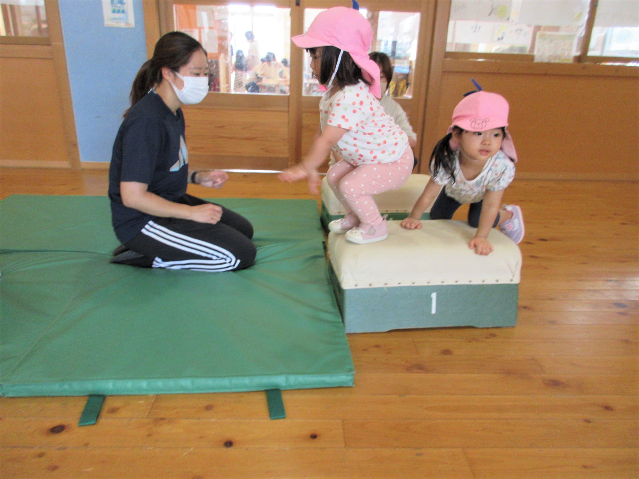 両足でピタッと止まる着地も、保育者の声掛けから意識する子どもも増えてきました☆
