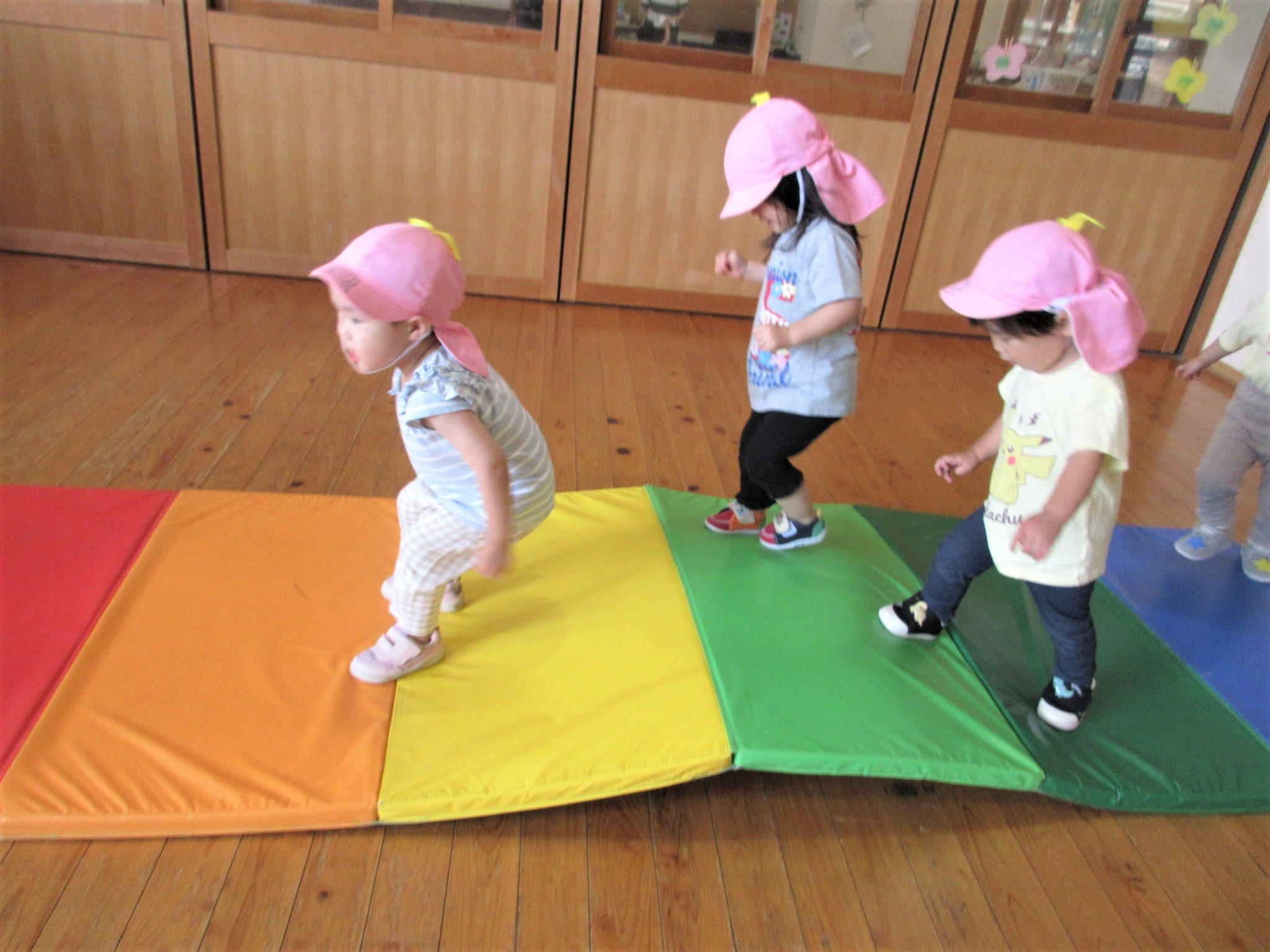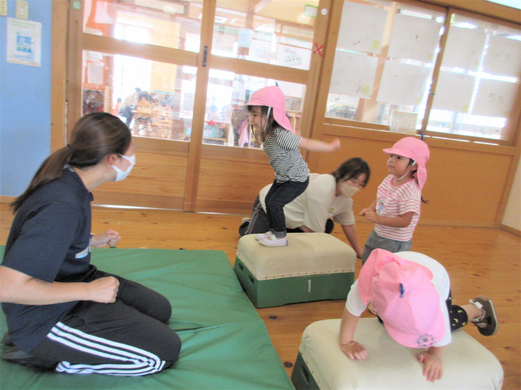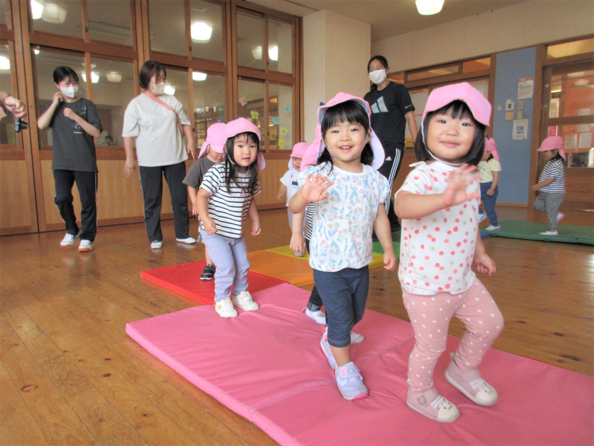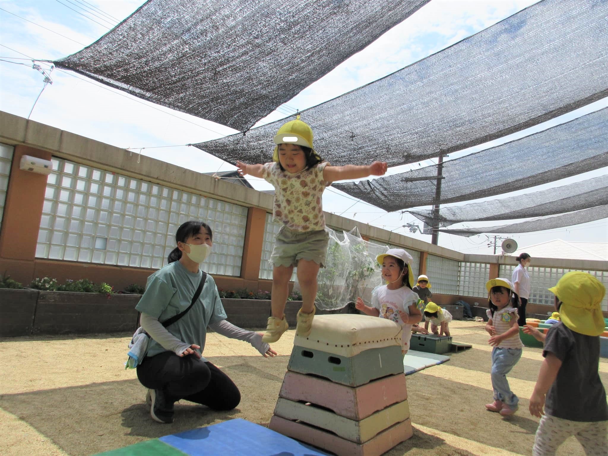 両足でピタッと止まる着地も、保育者の声掛けから意識する子どもも増えてきました☆