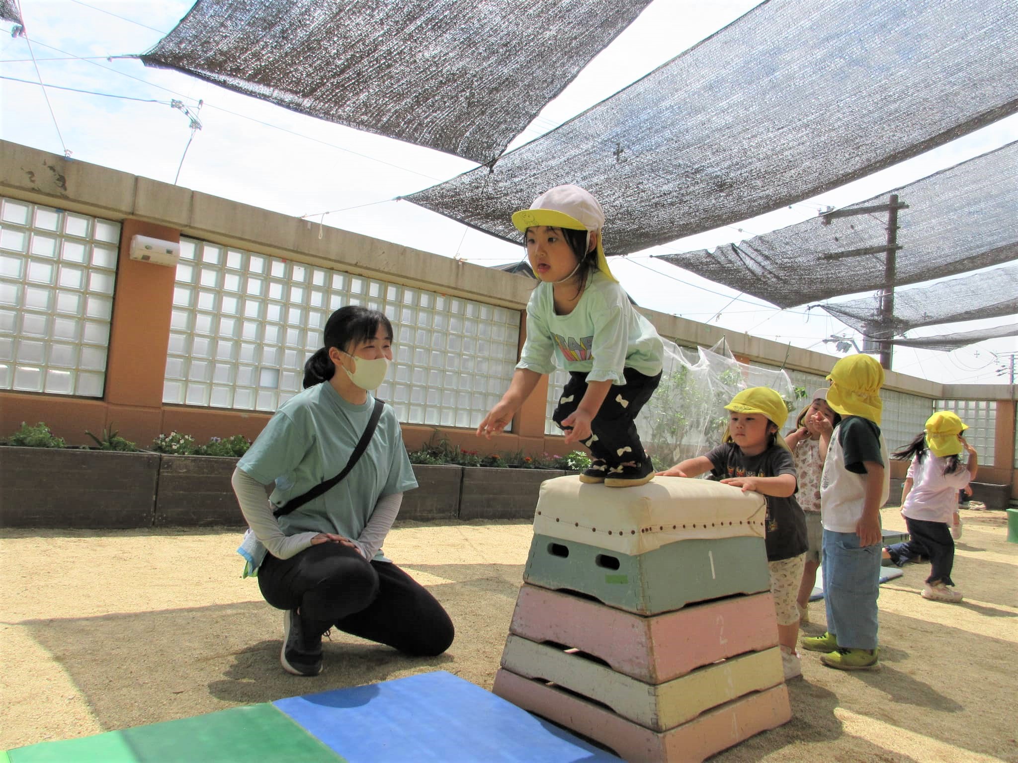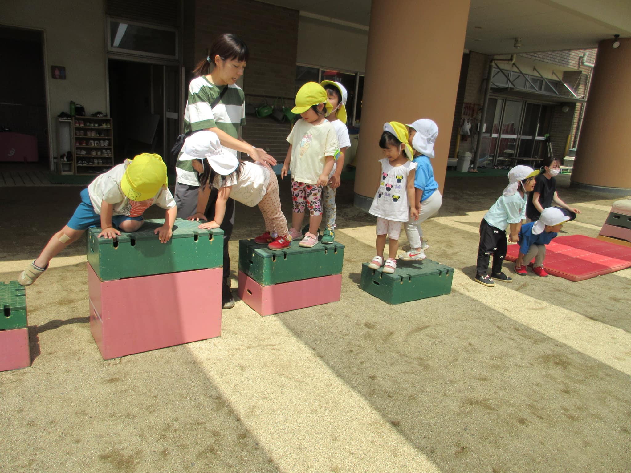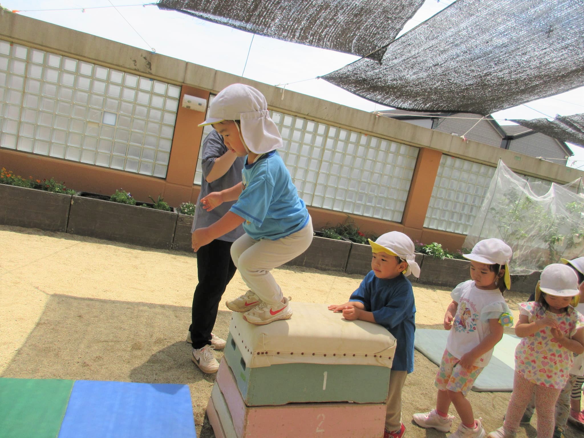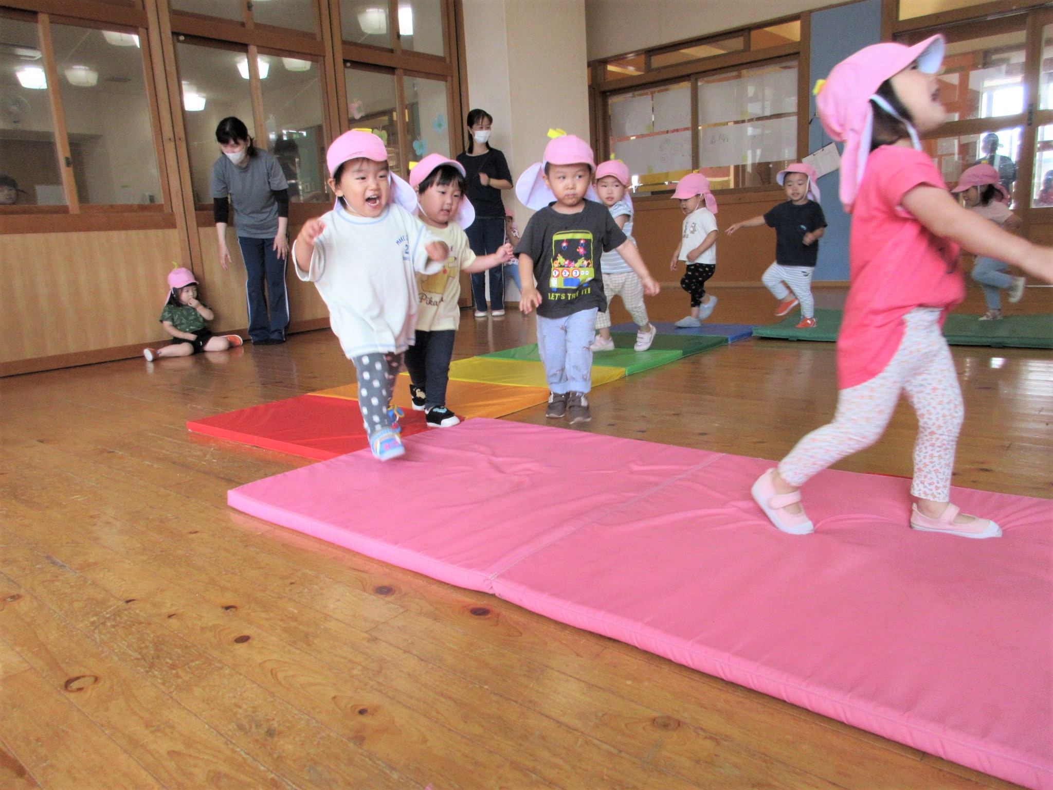 両足でピタッと止まる着地も、保育者の声掛けから意識する子どもも増えてきました☆