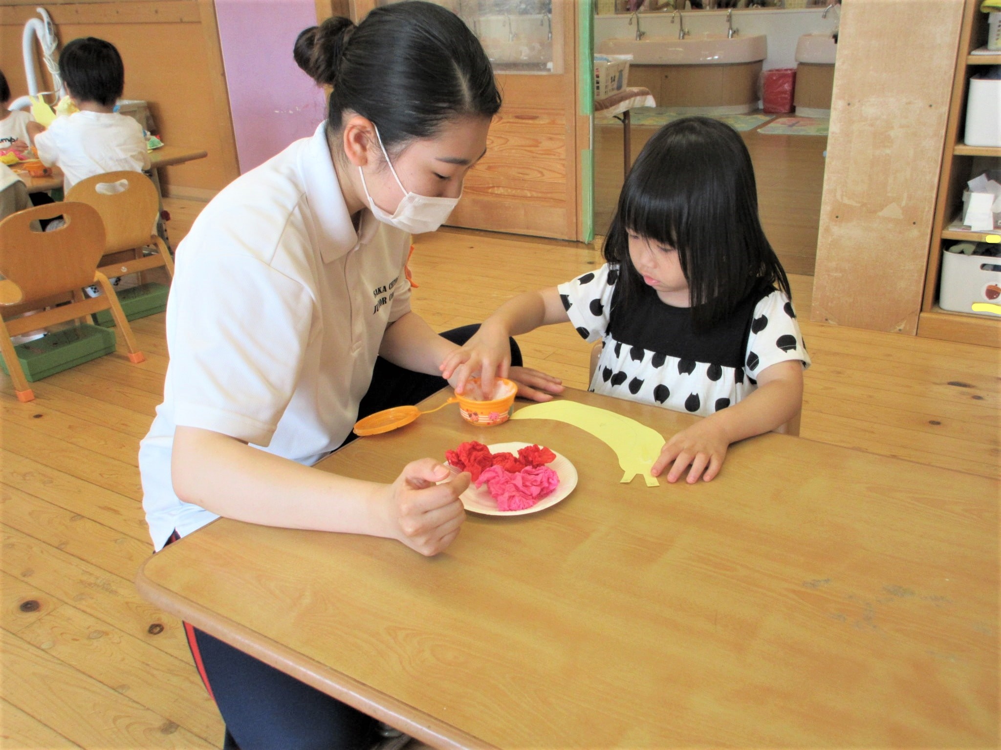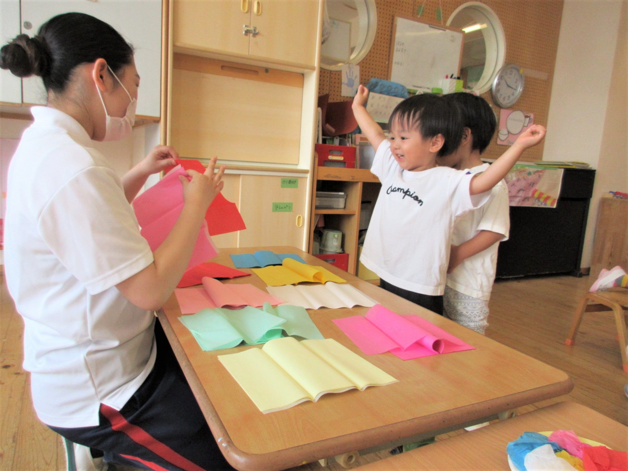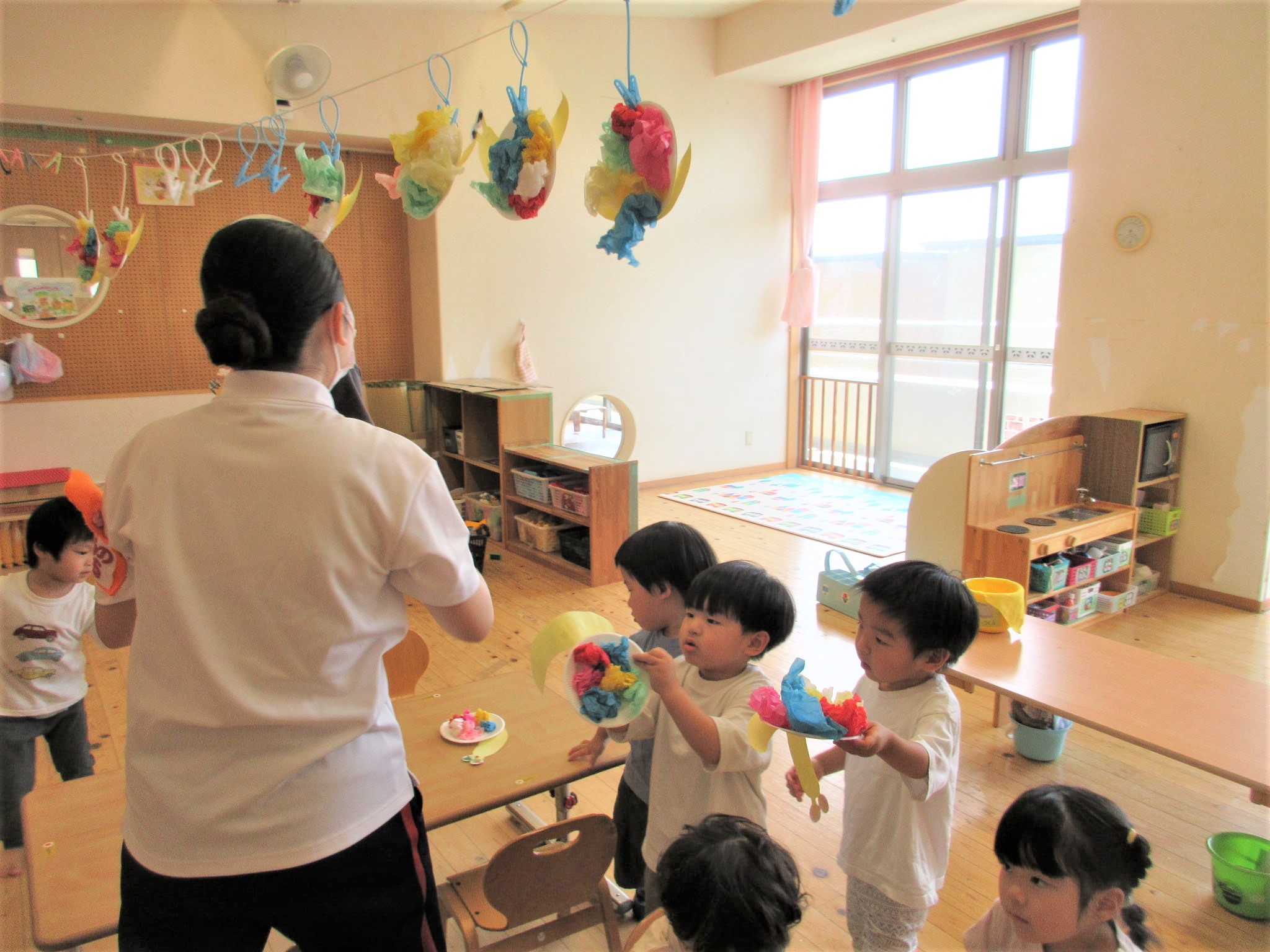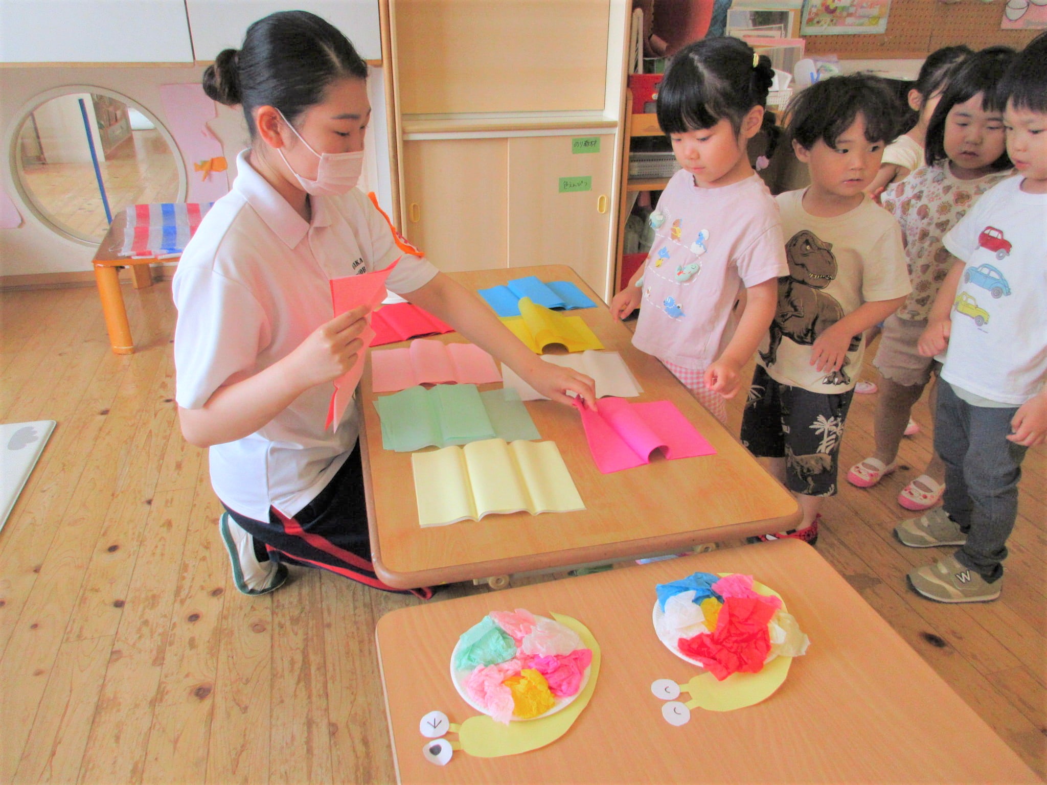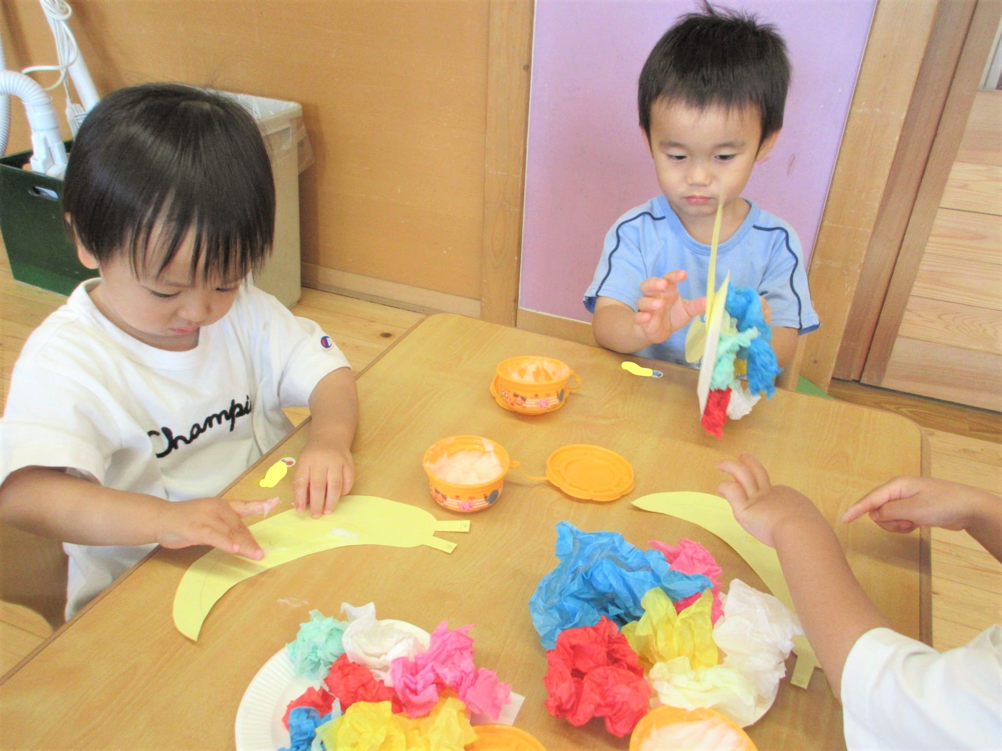 子どもたちなりに、いろいろ考えながら花紙を丸めていました♪