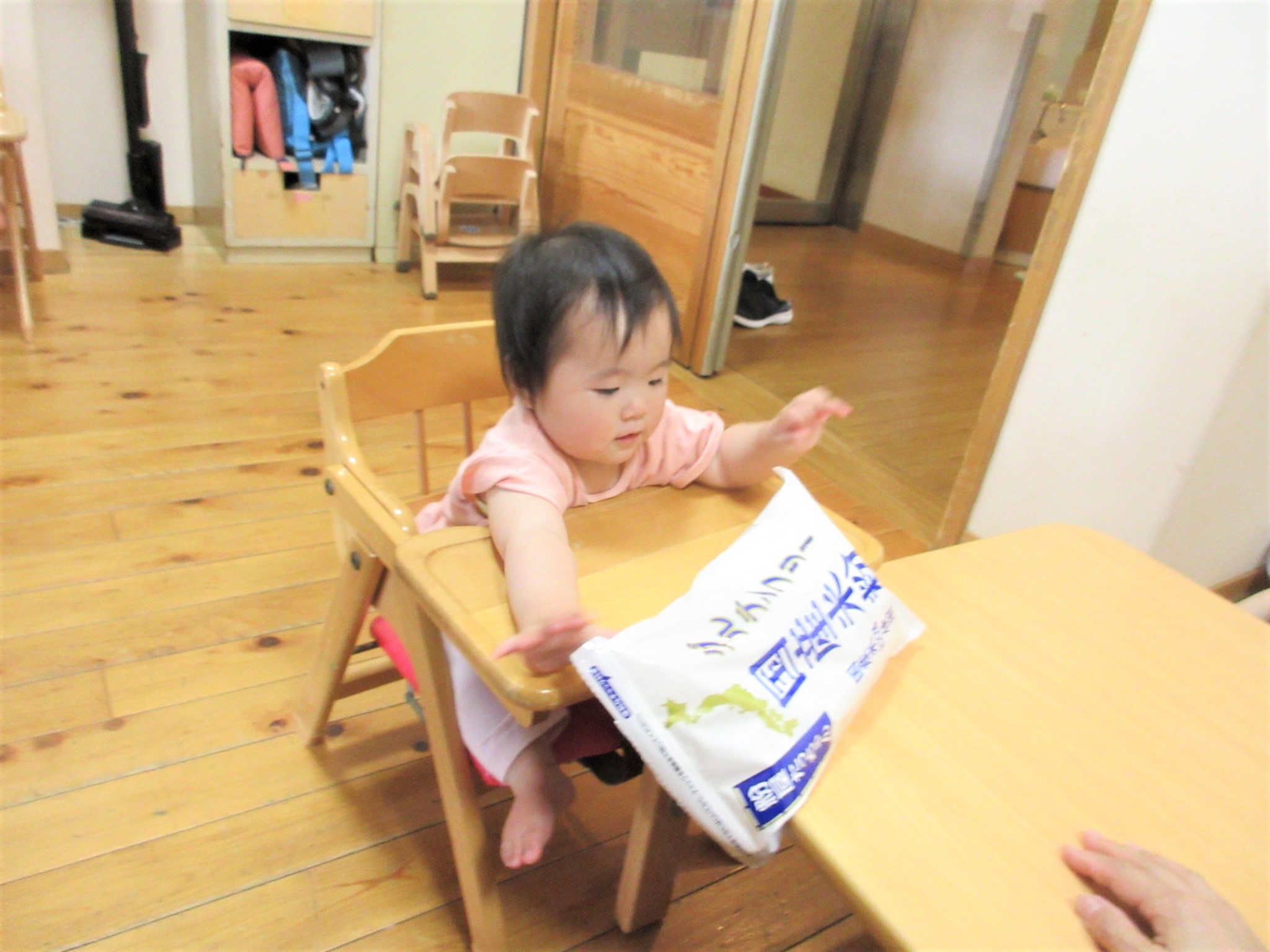 先生に抱っこしてもらい、先生が気持ち良さそうに米粉を触って姿を見ていると・・・