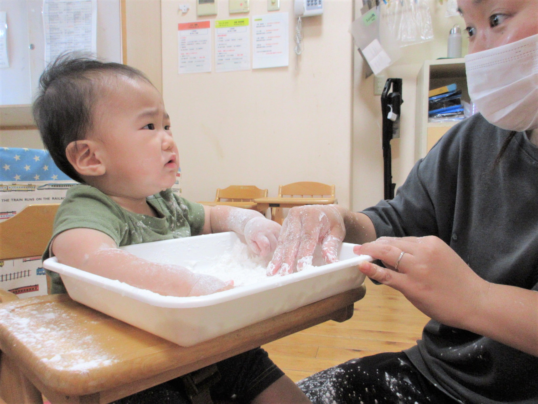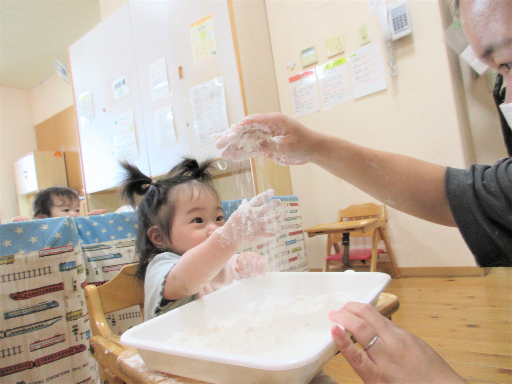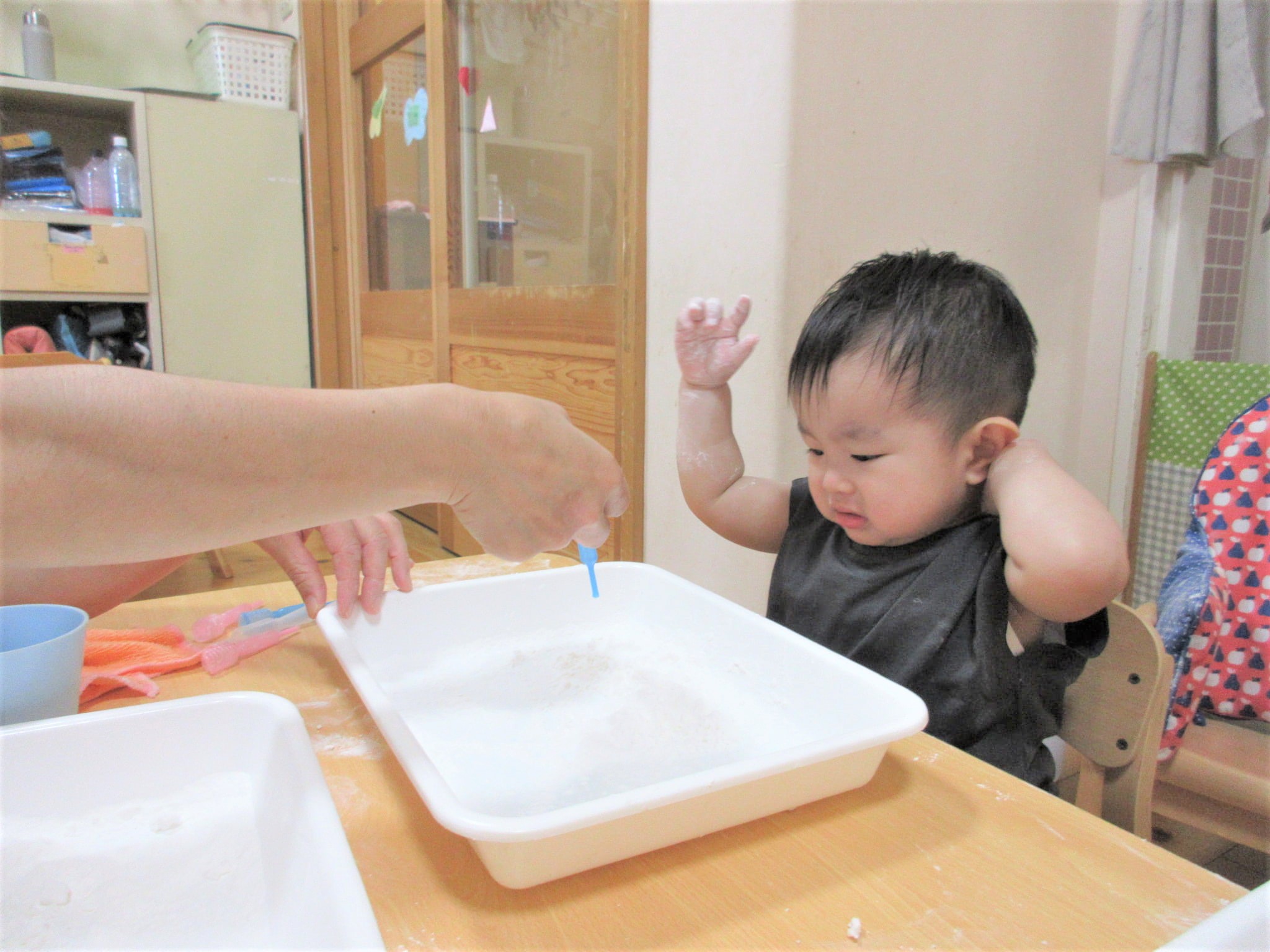 ひよこ組が米粉で遊びました♪