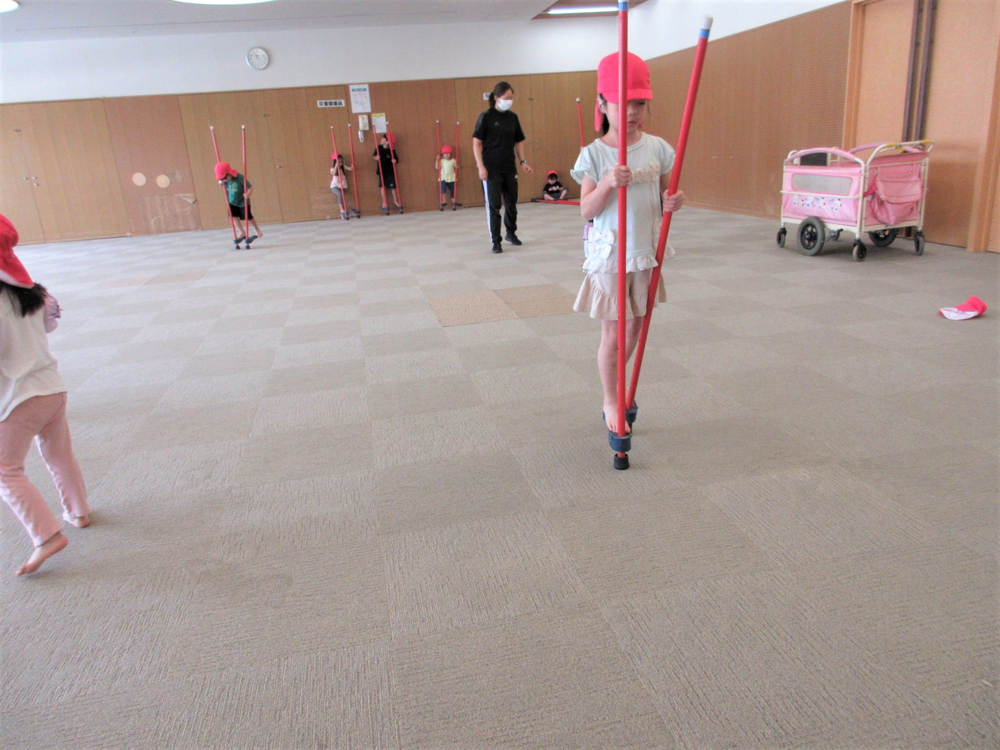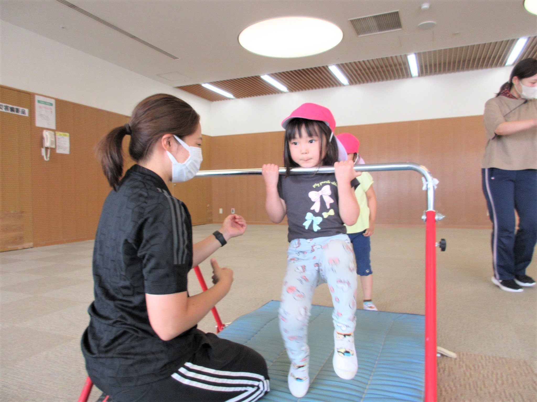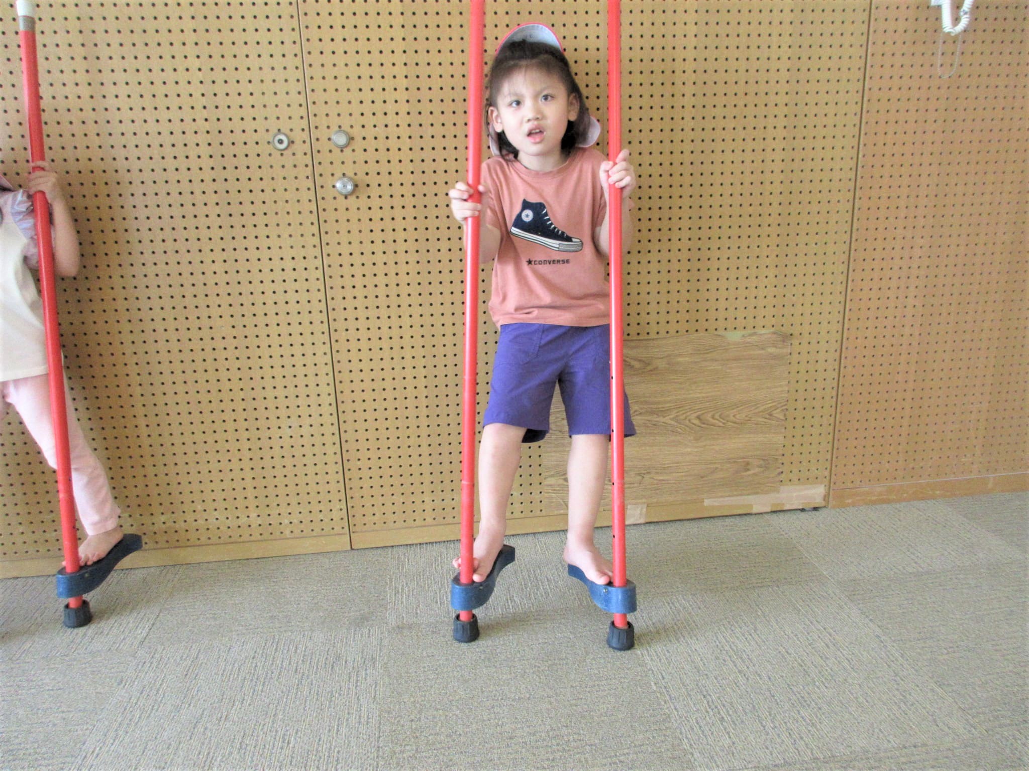 「胸の高さ位で、鉄馬を持ったらいいよ」と伝え、しばらく取り組んでいると・・・