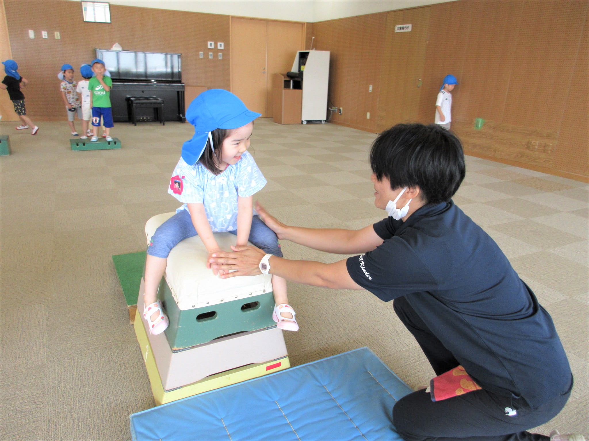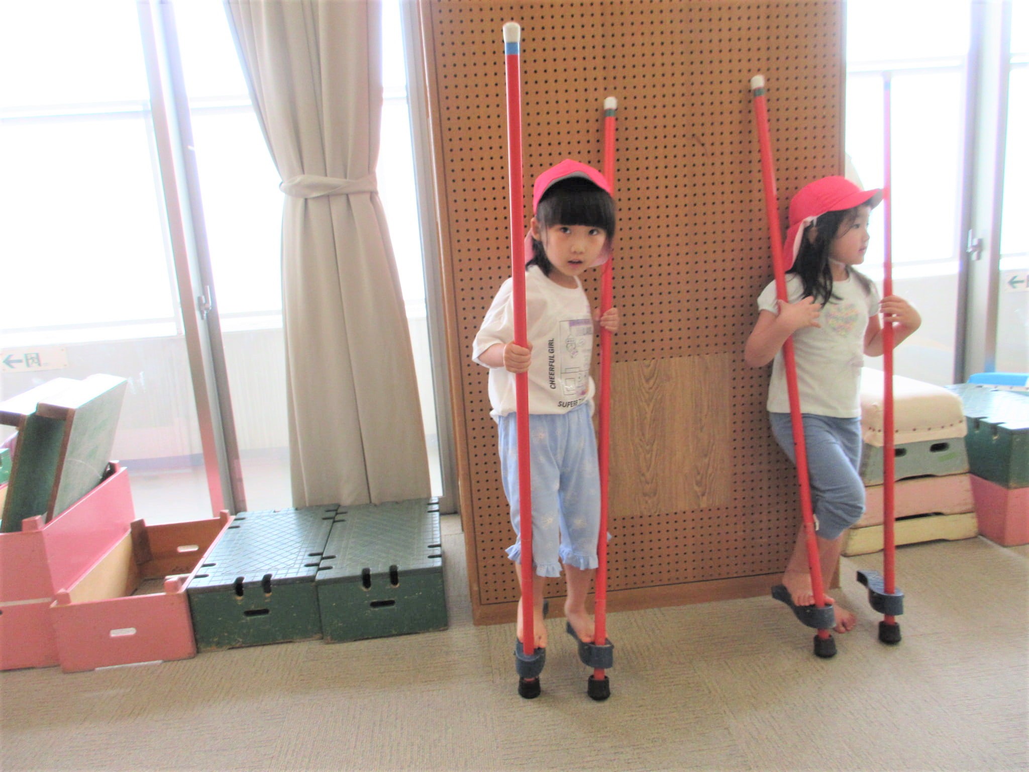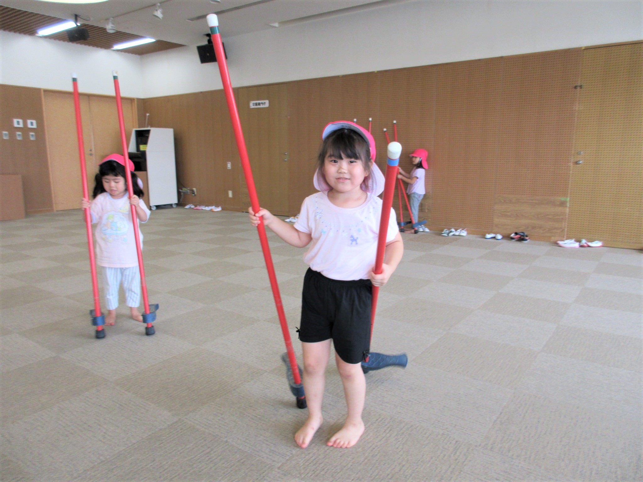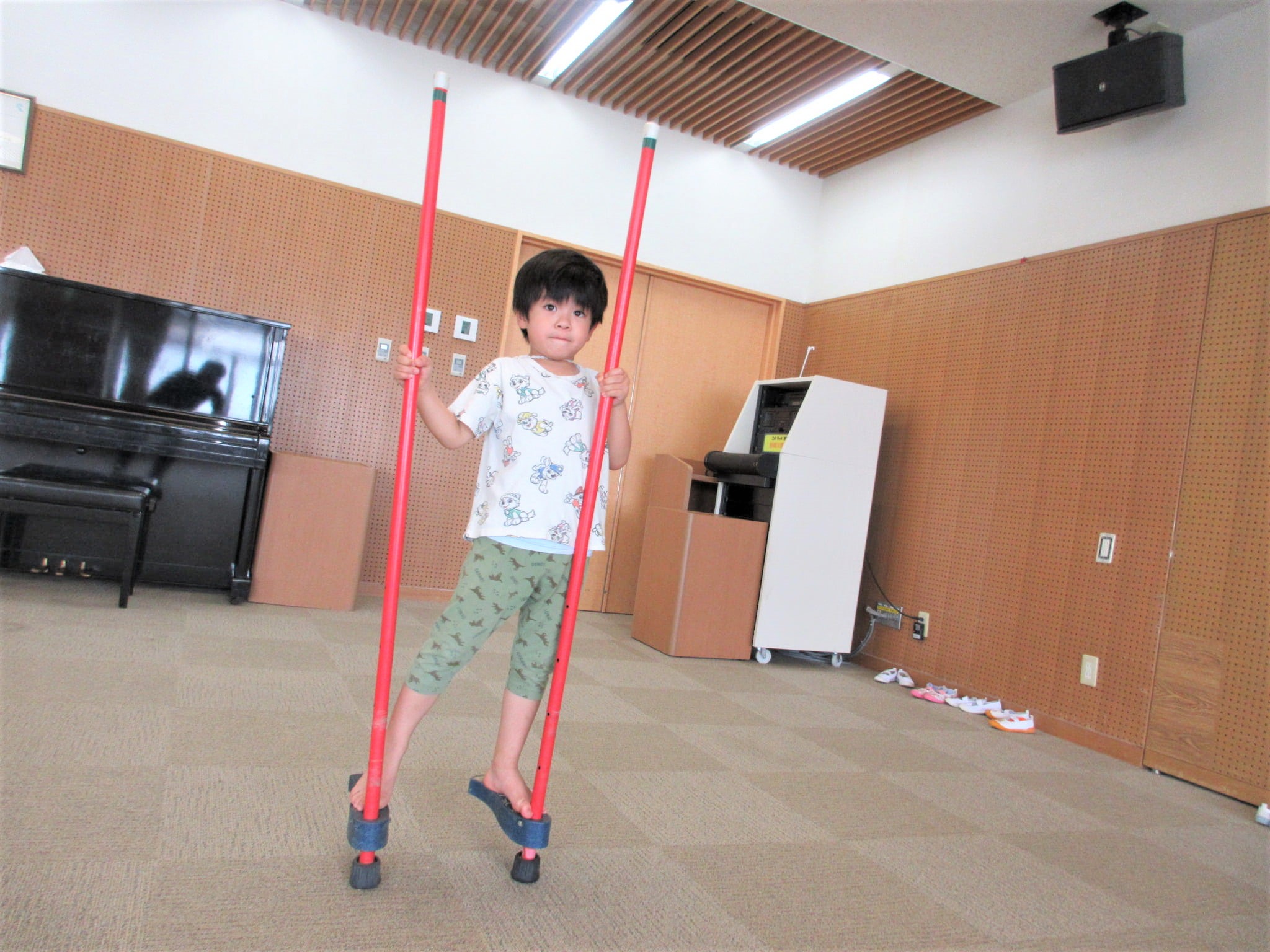 「胸の高さ位で、鉄馬を持ったらいいよ」と伝え、しばらく取り組んでいると・・・
