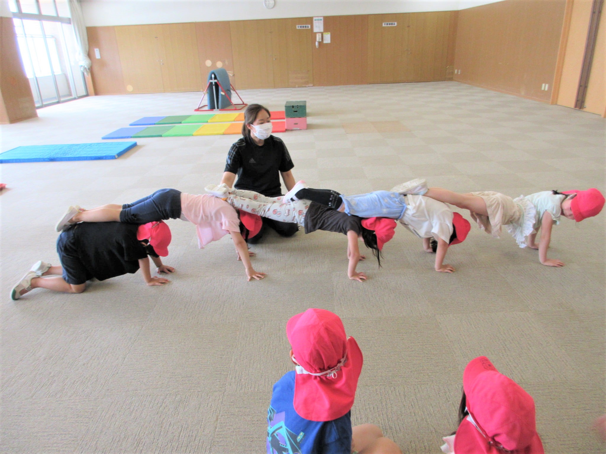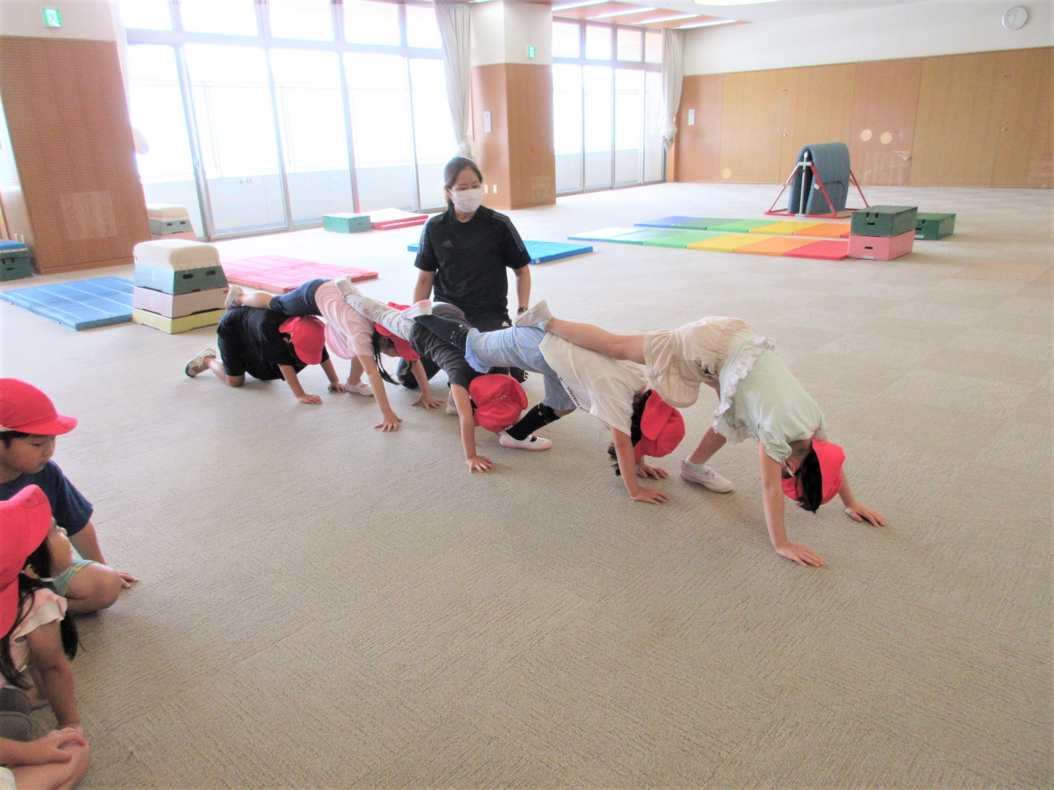 グループで協力して、このような形(橋…かな?)を身体を使って表現します!
