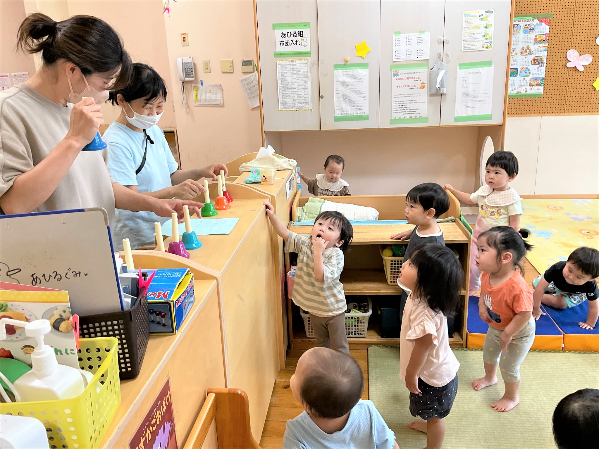 あひる組・りす組は、紙芝居を見たり、先生たちの合奏を聴いたり・・・