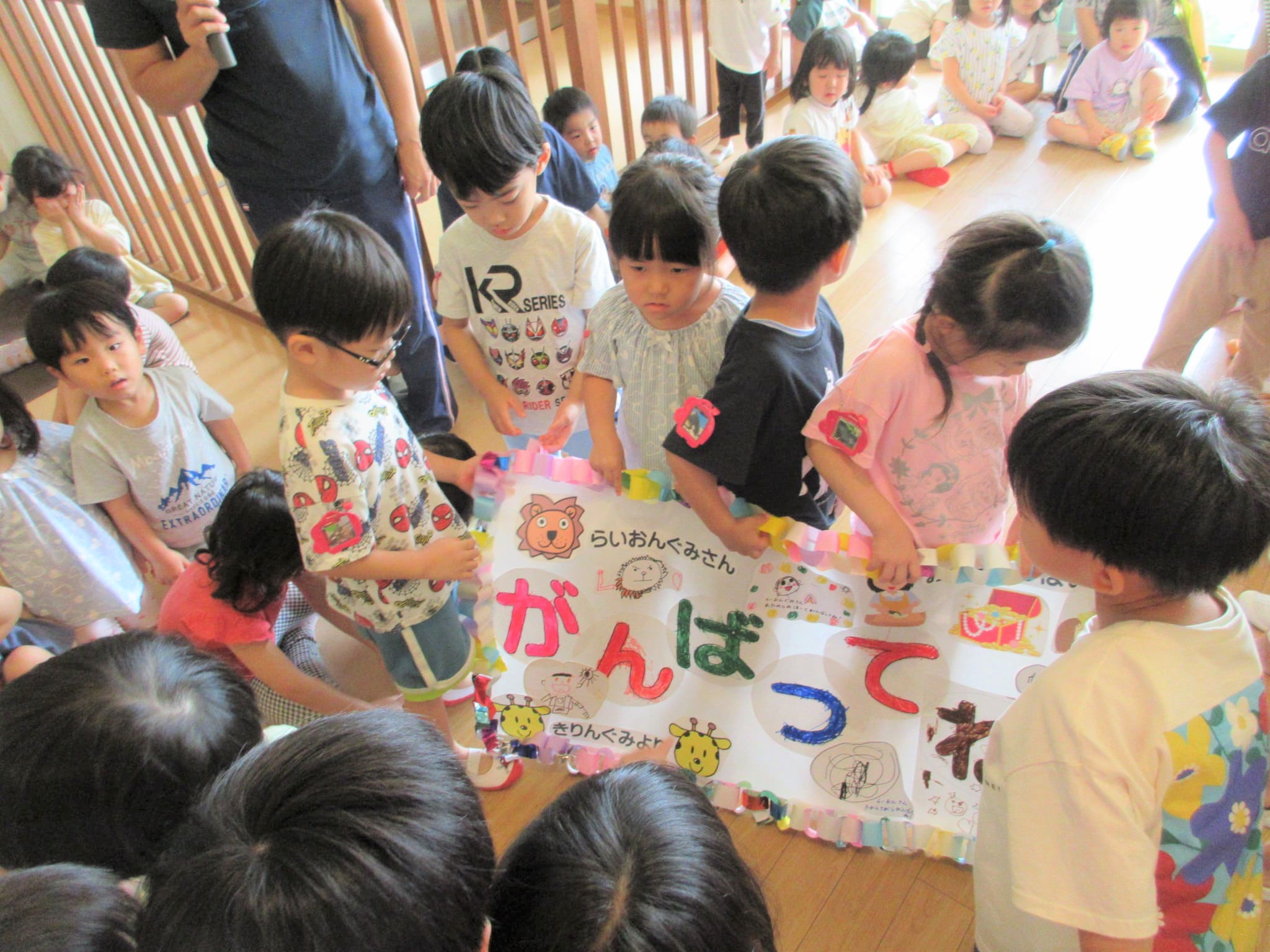 他のクラスは「らいおんぐみさん がんばってね」という気持ちを伝えるため・・・