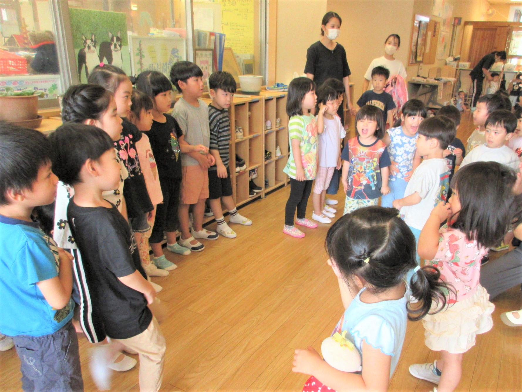 ちょっと緊張の面持ちのらいおん組の子どもたち・・・(笑)