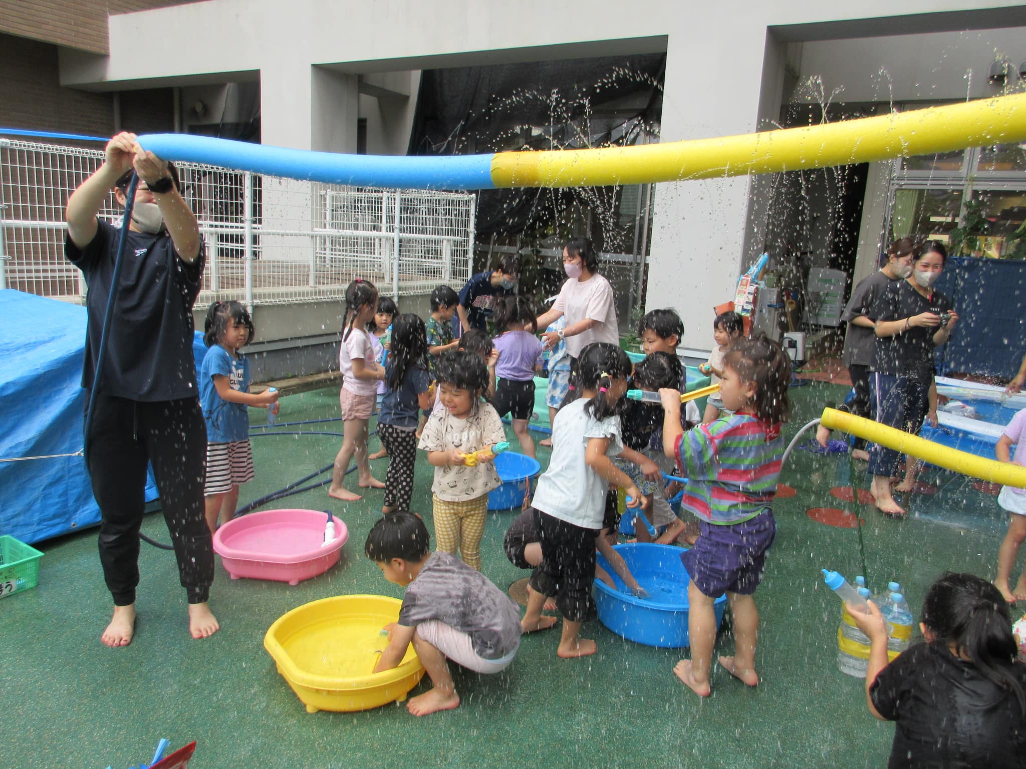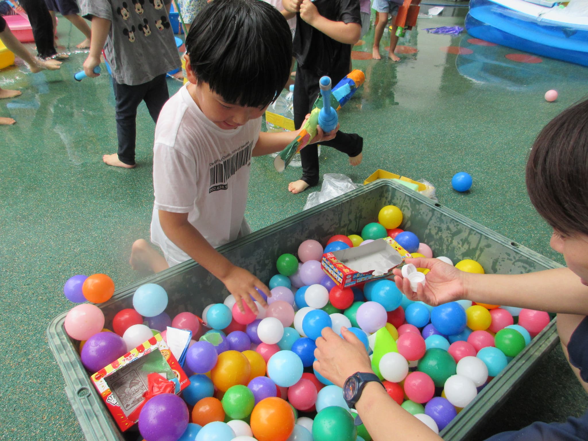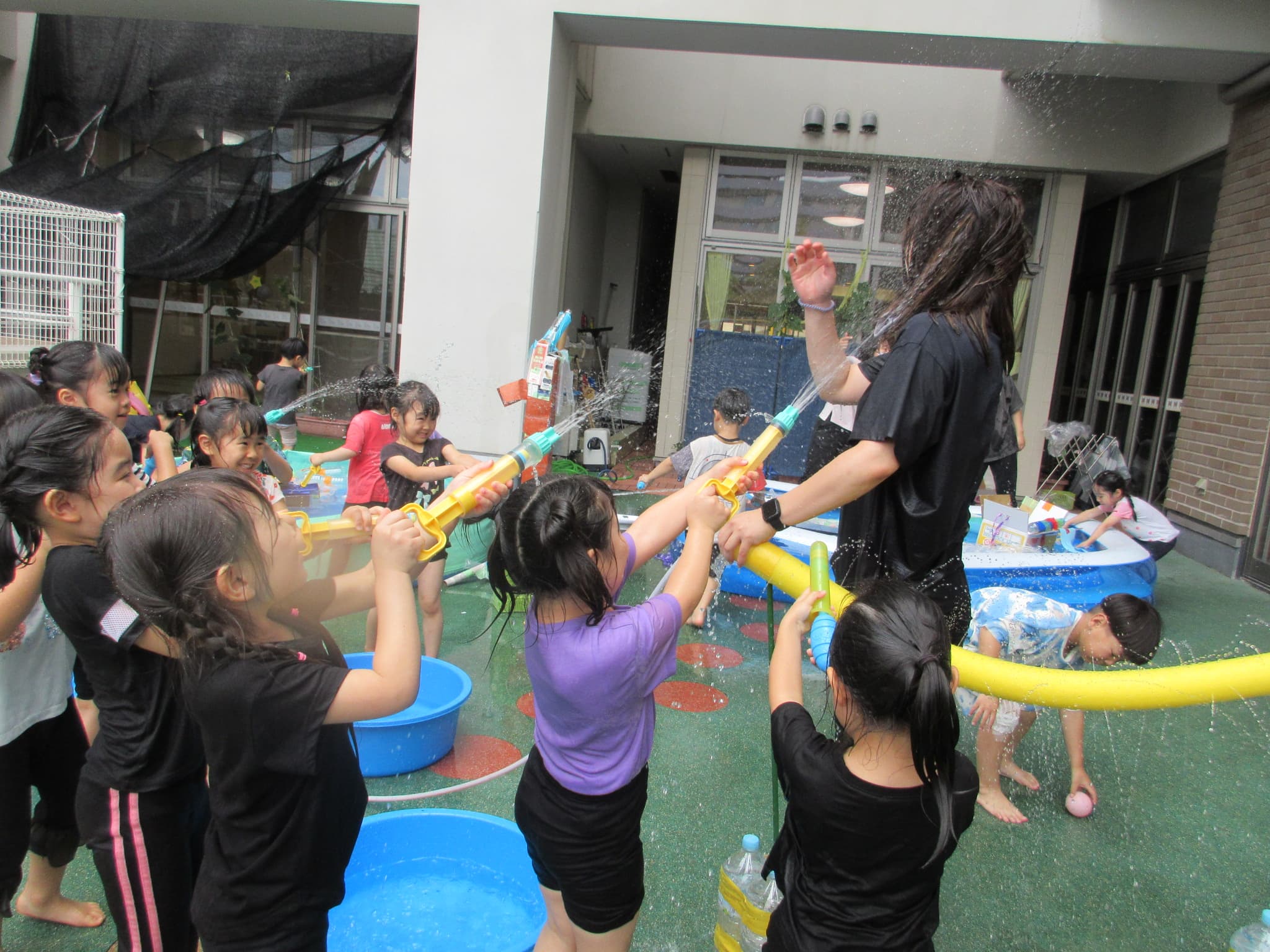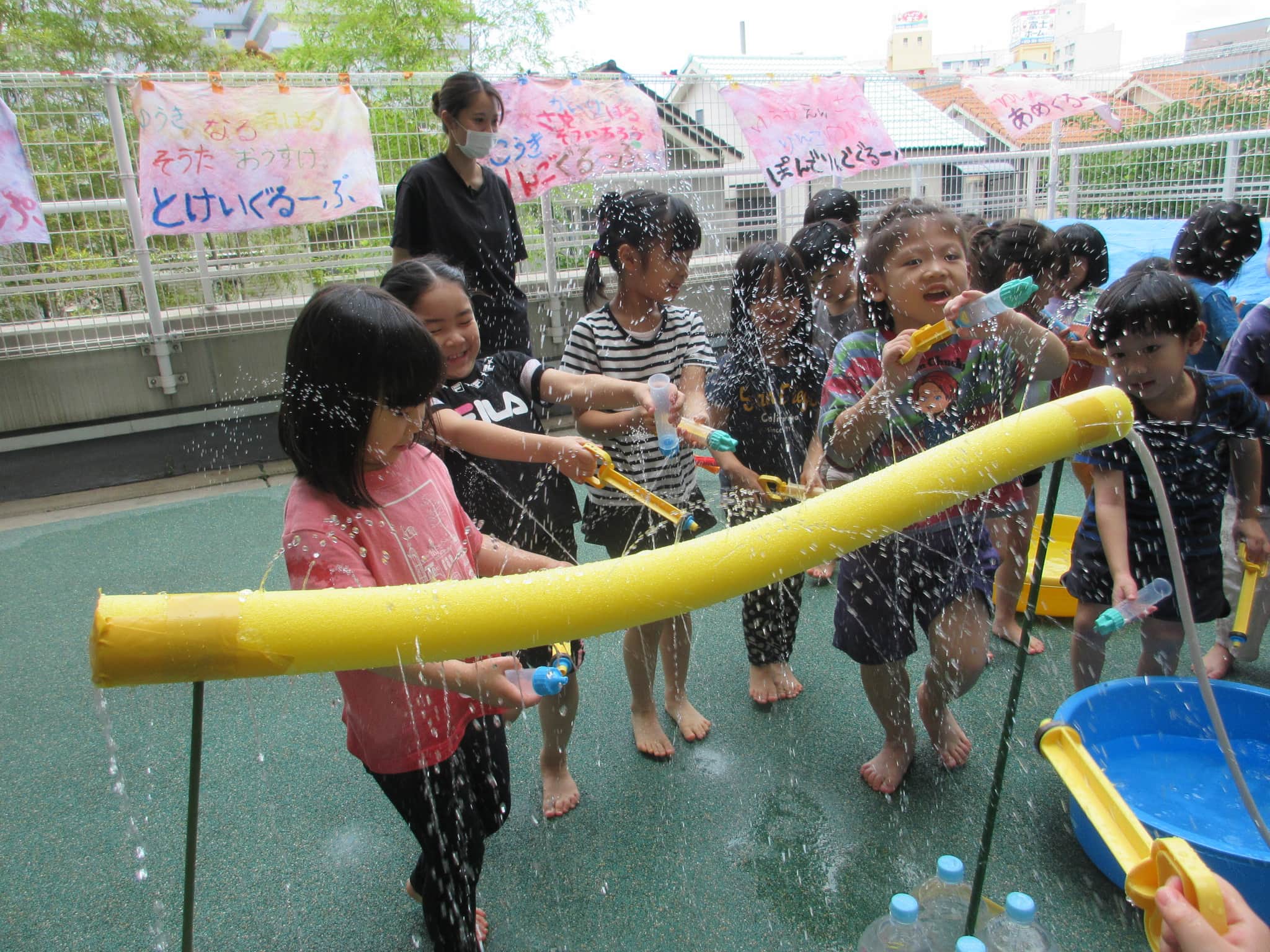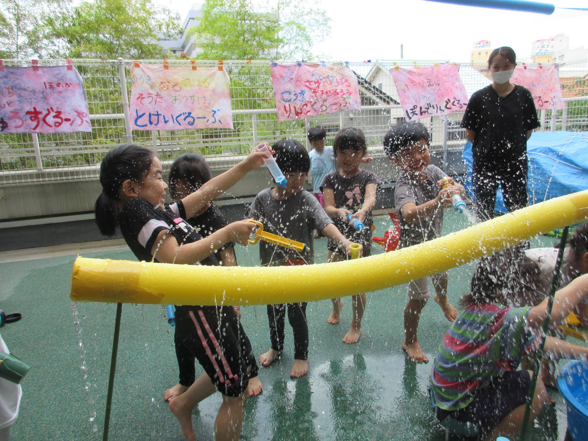 自分たちで作った船を浮かべたり、水鉄砲で遊んだり・・・☆