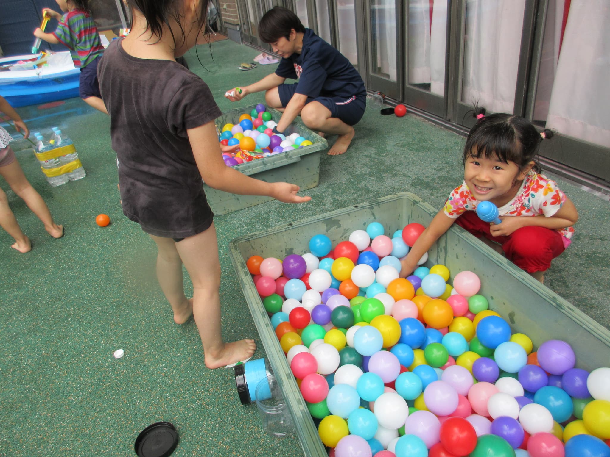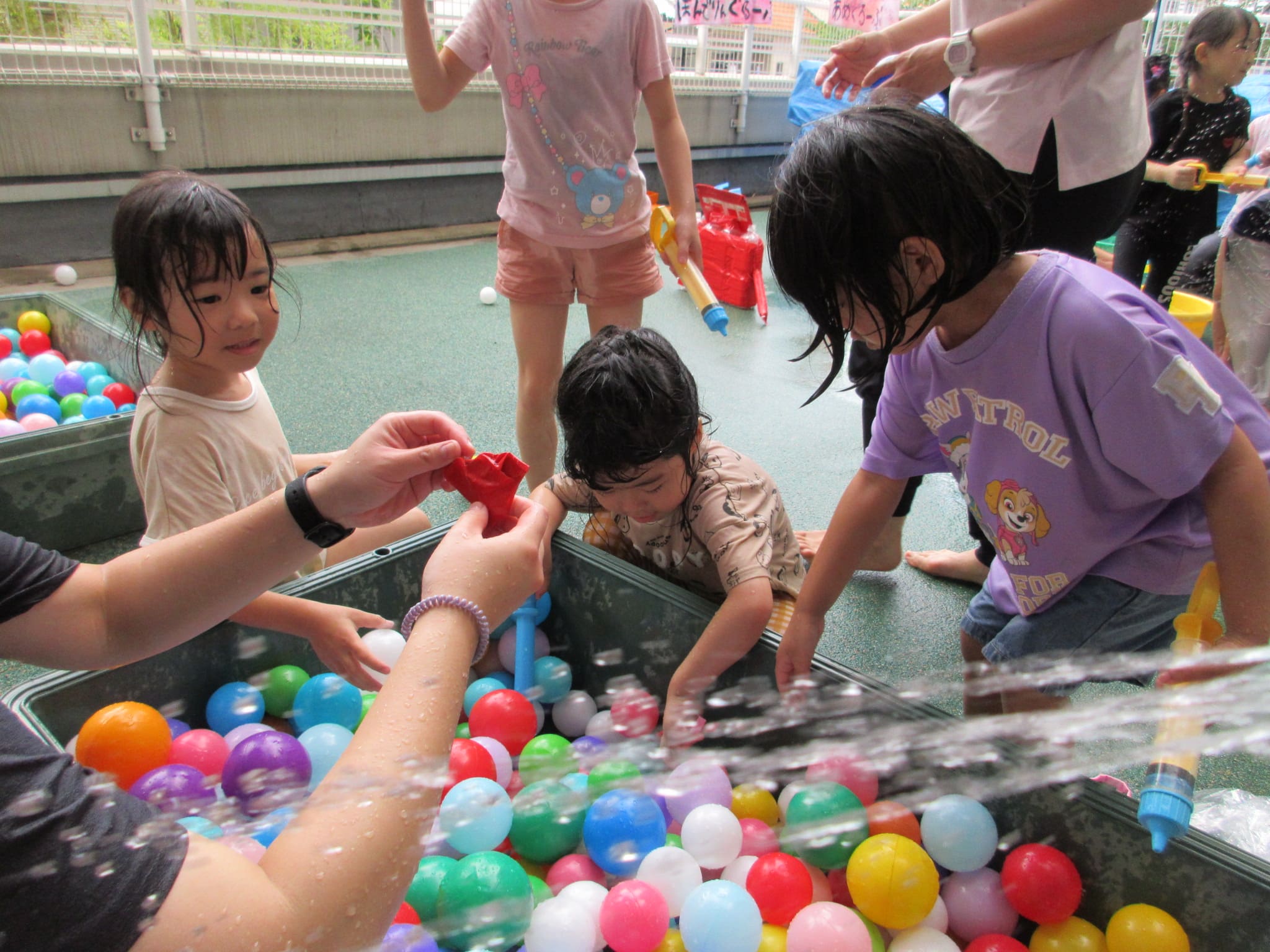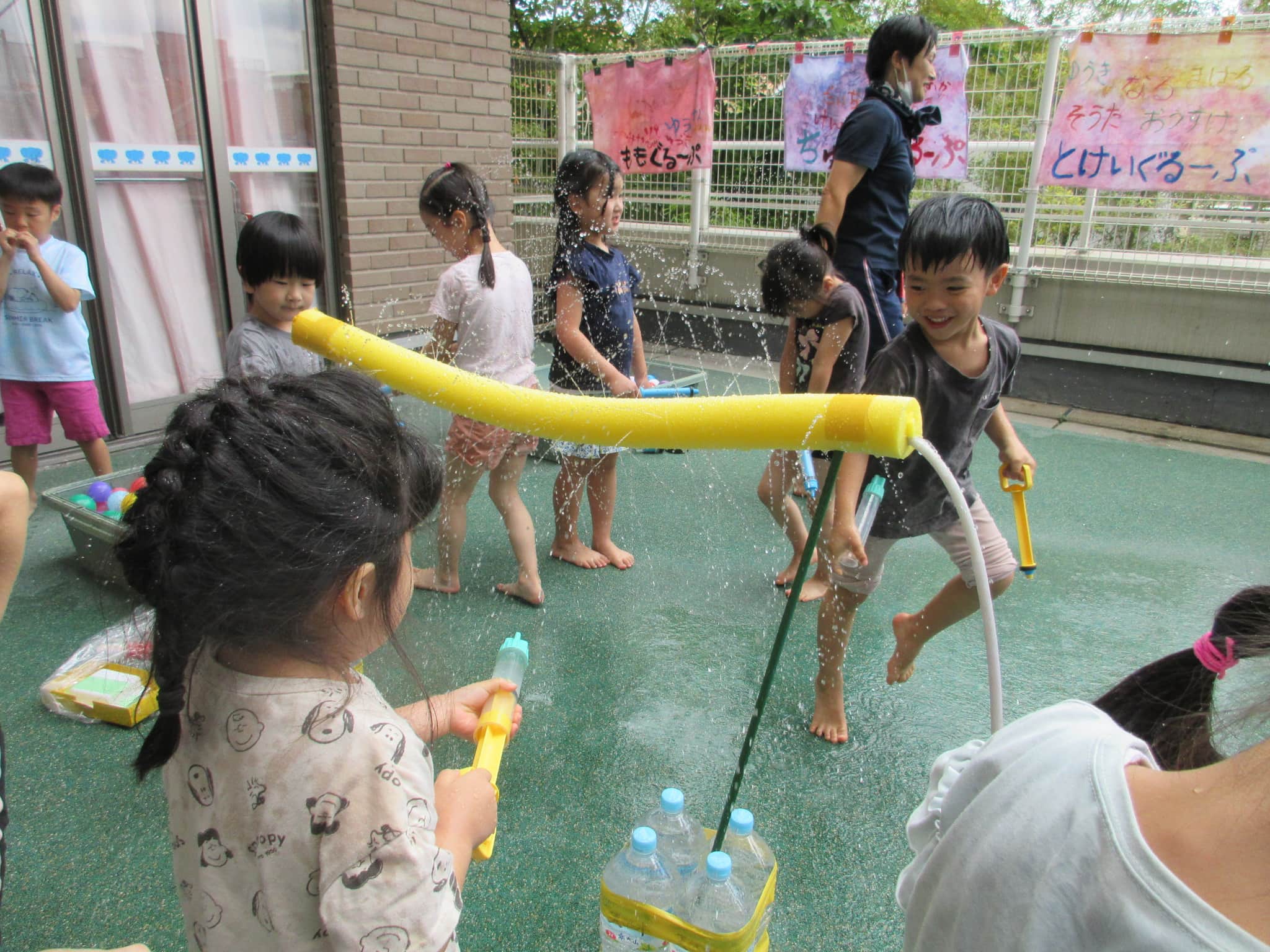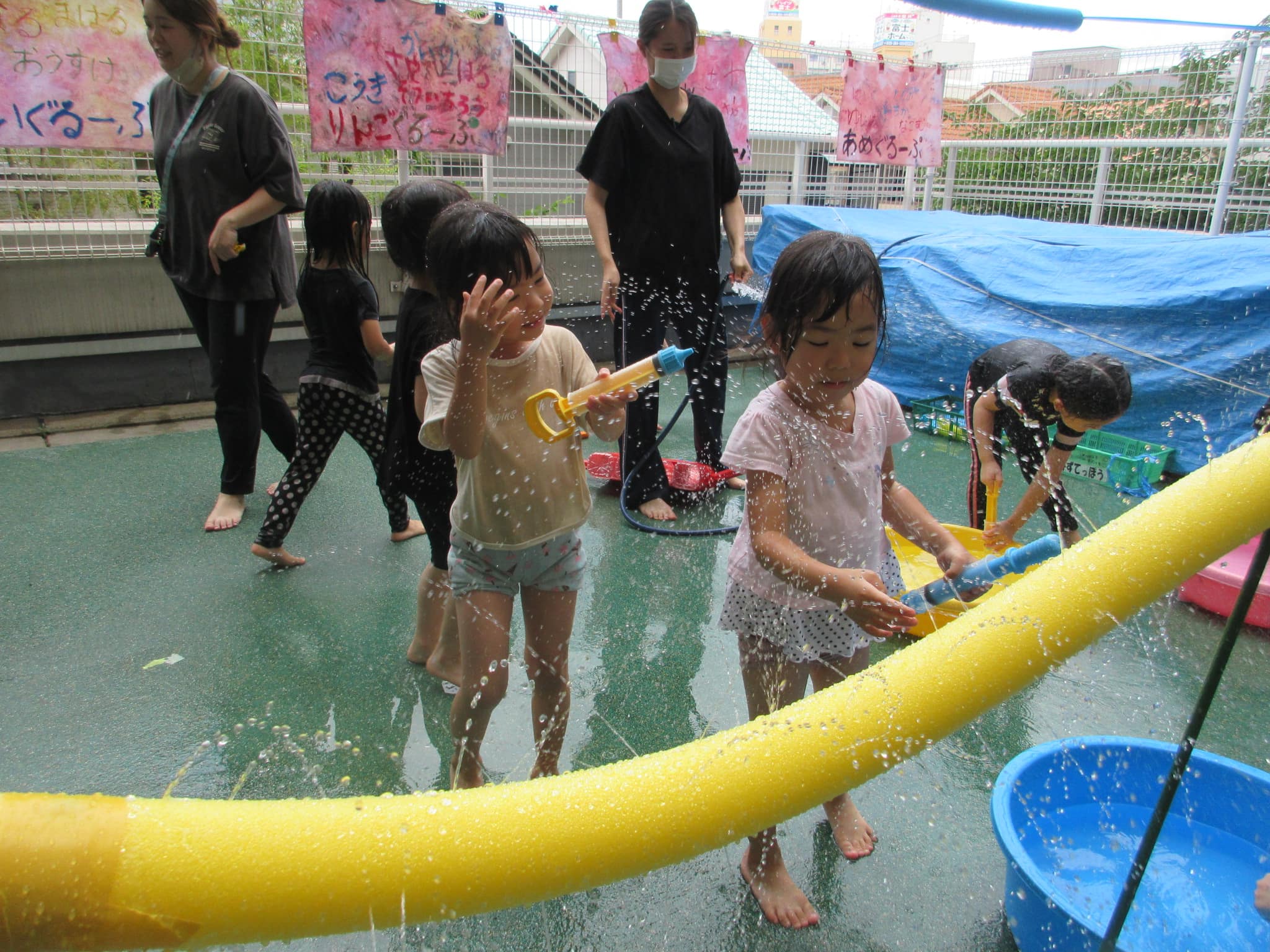自分たちで作った船を浮かべたり、水鉄砲で遊んだり・・・☆