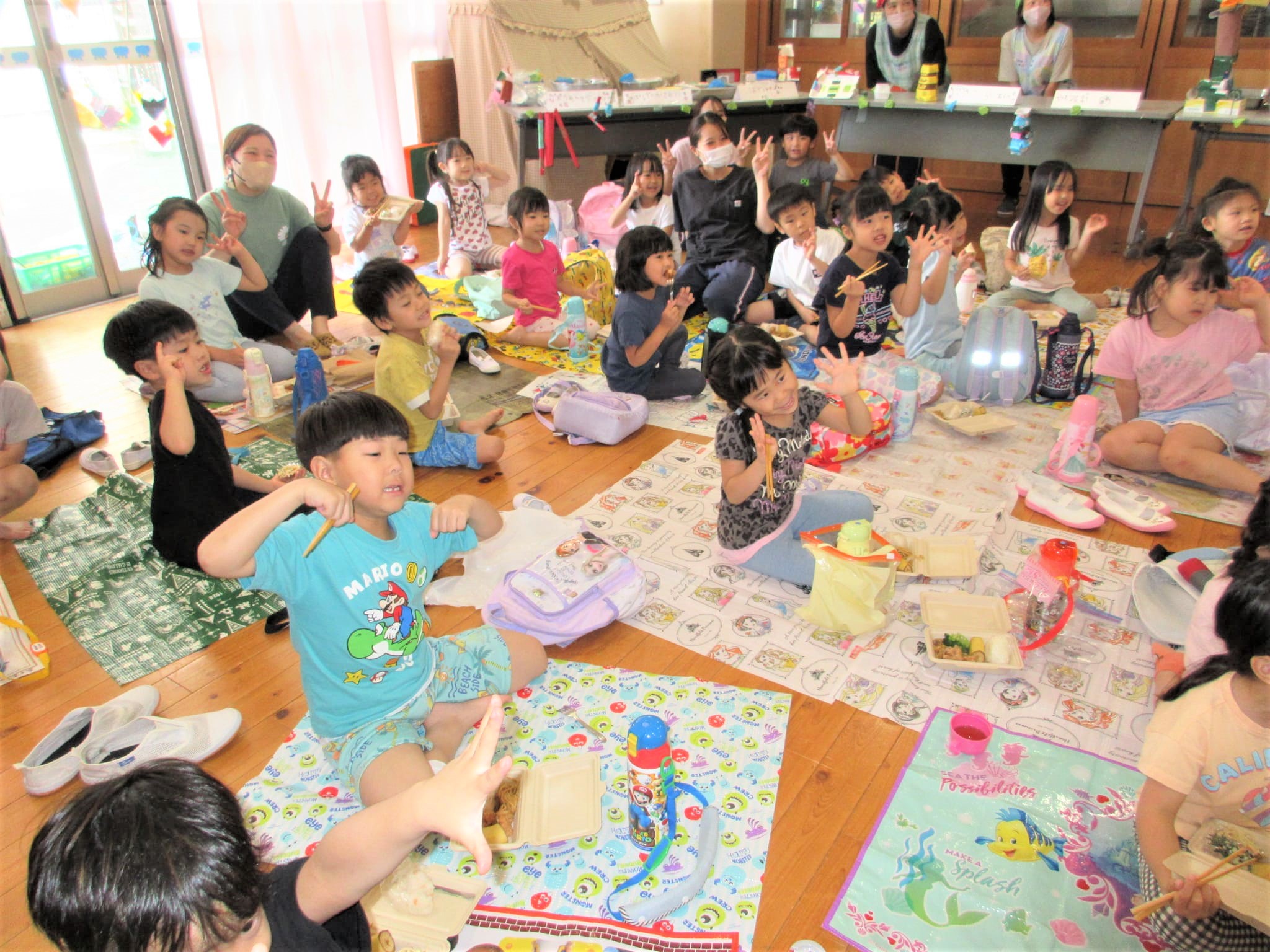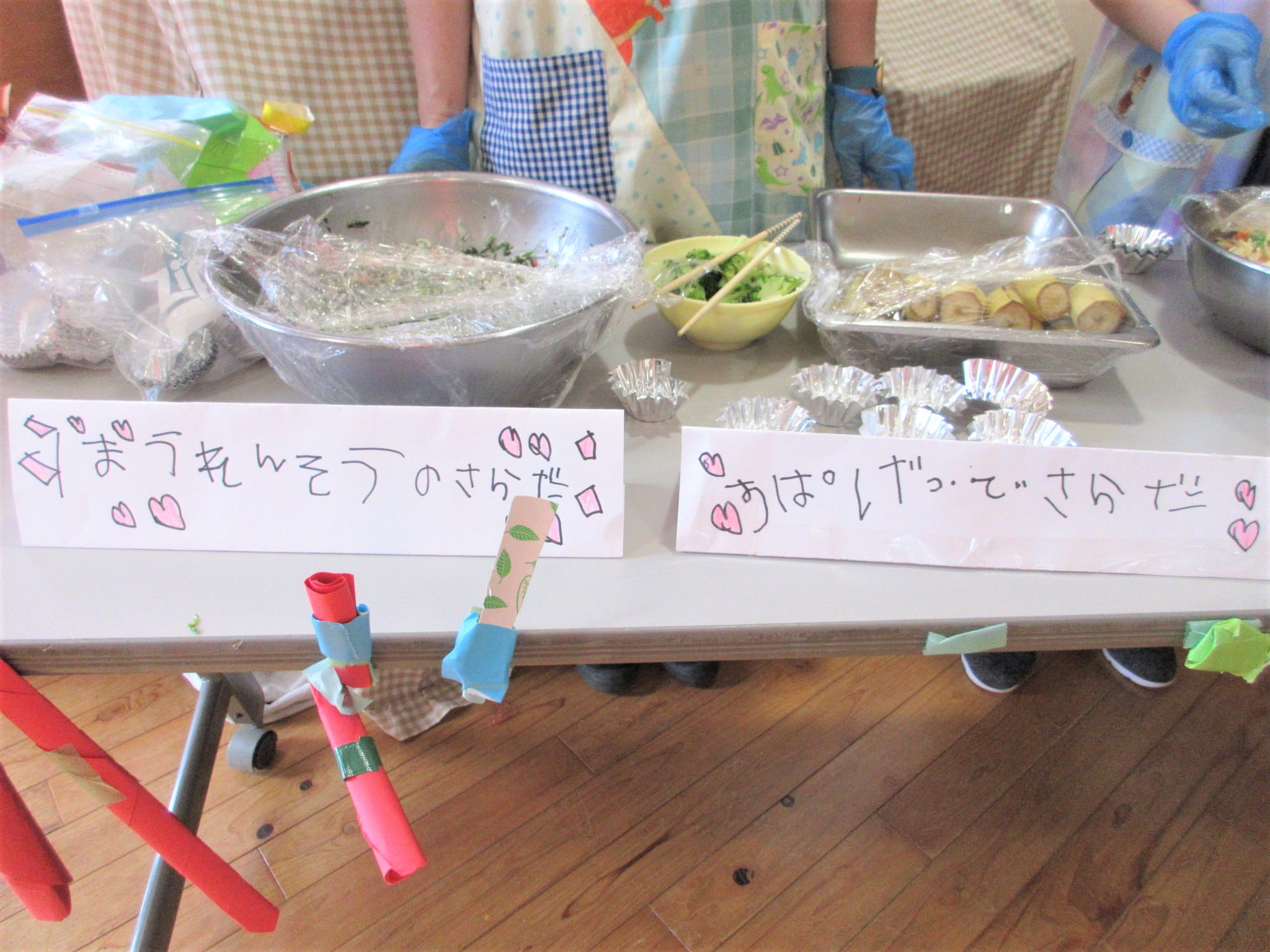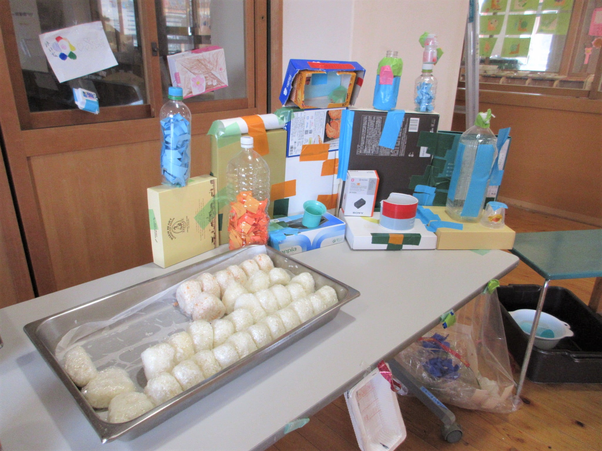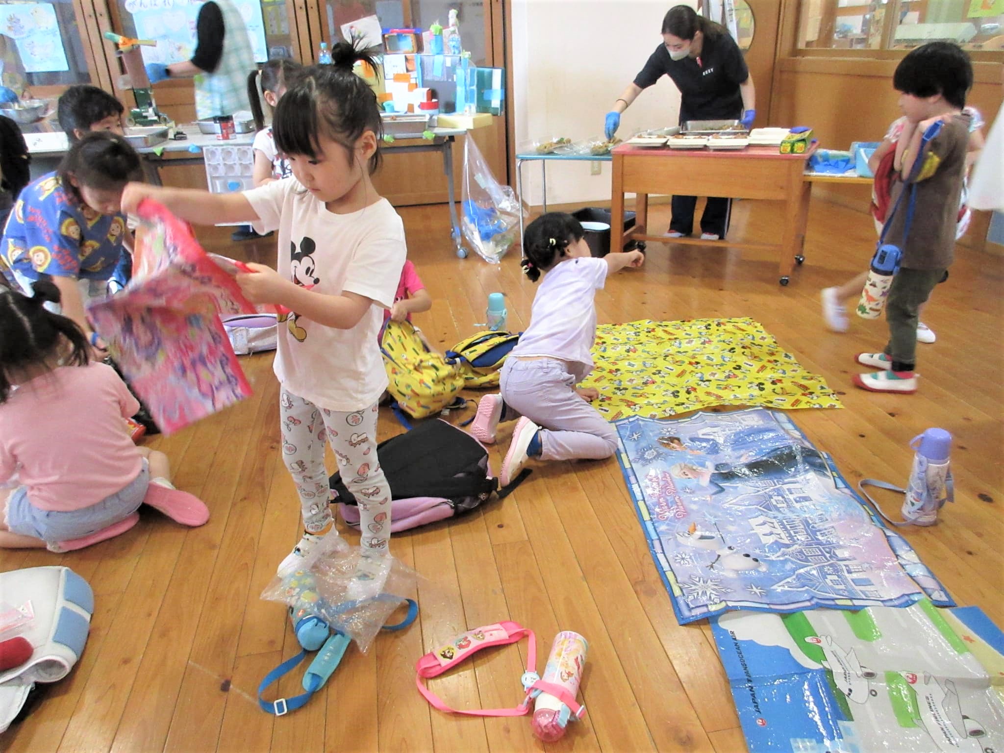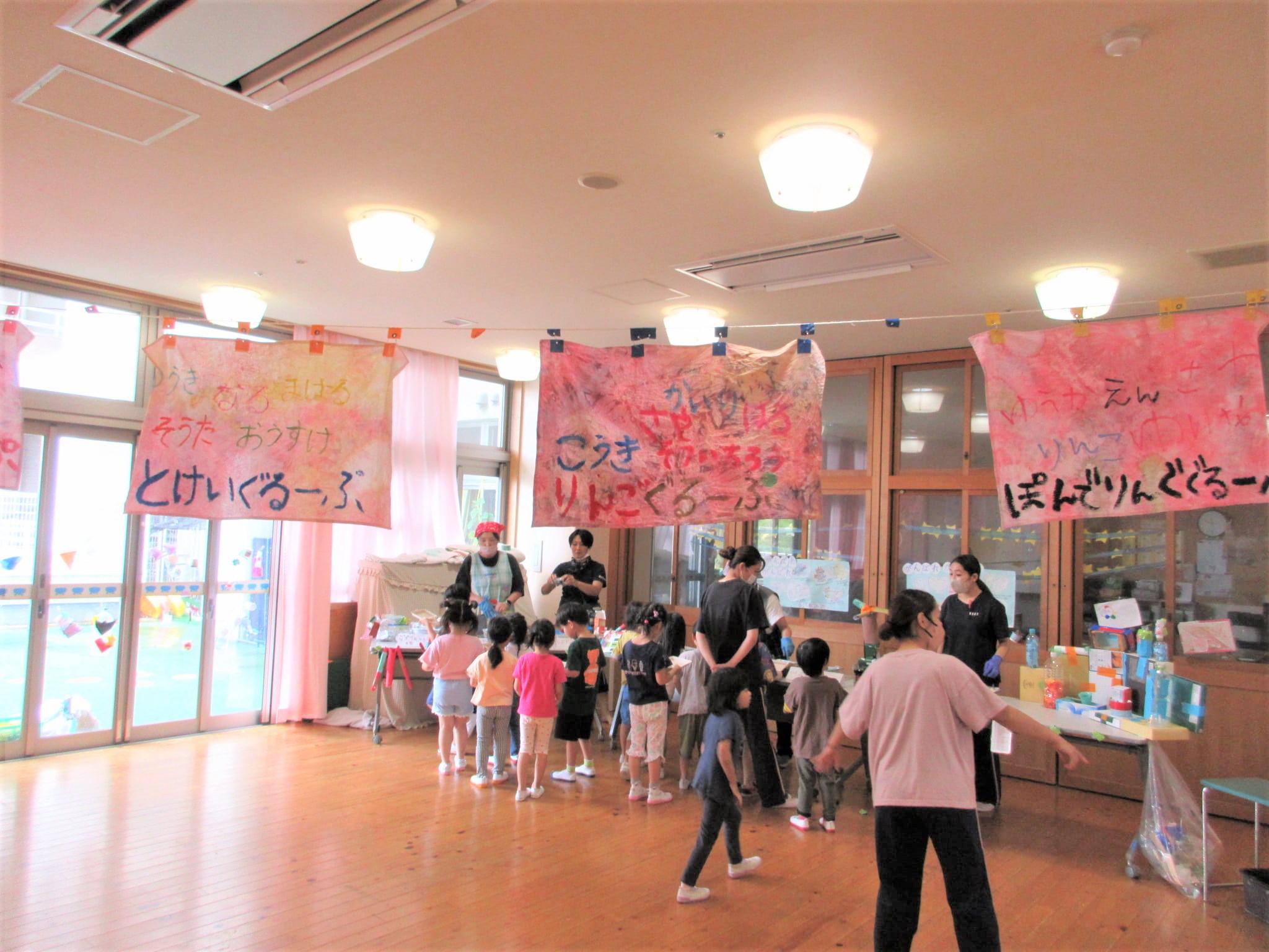 昨日のはじまりの会で、きりん組・ぱんだ組からのプレゼントも飾って