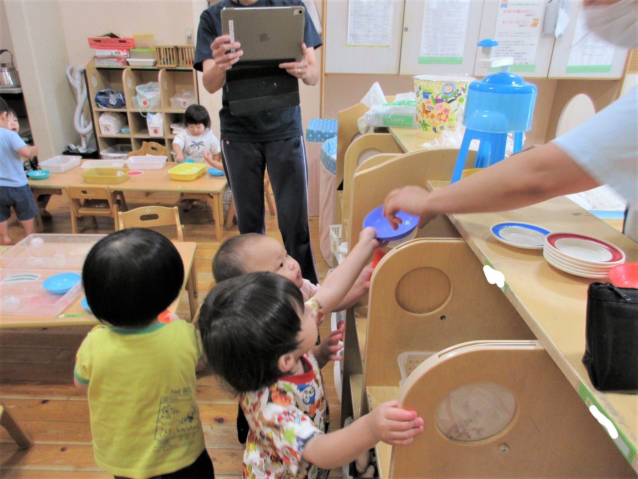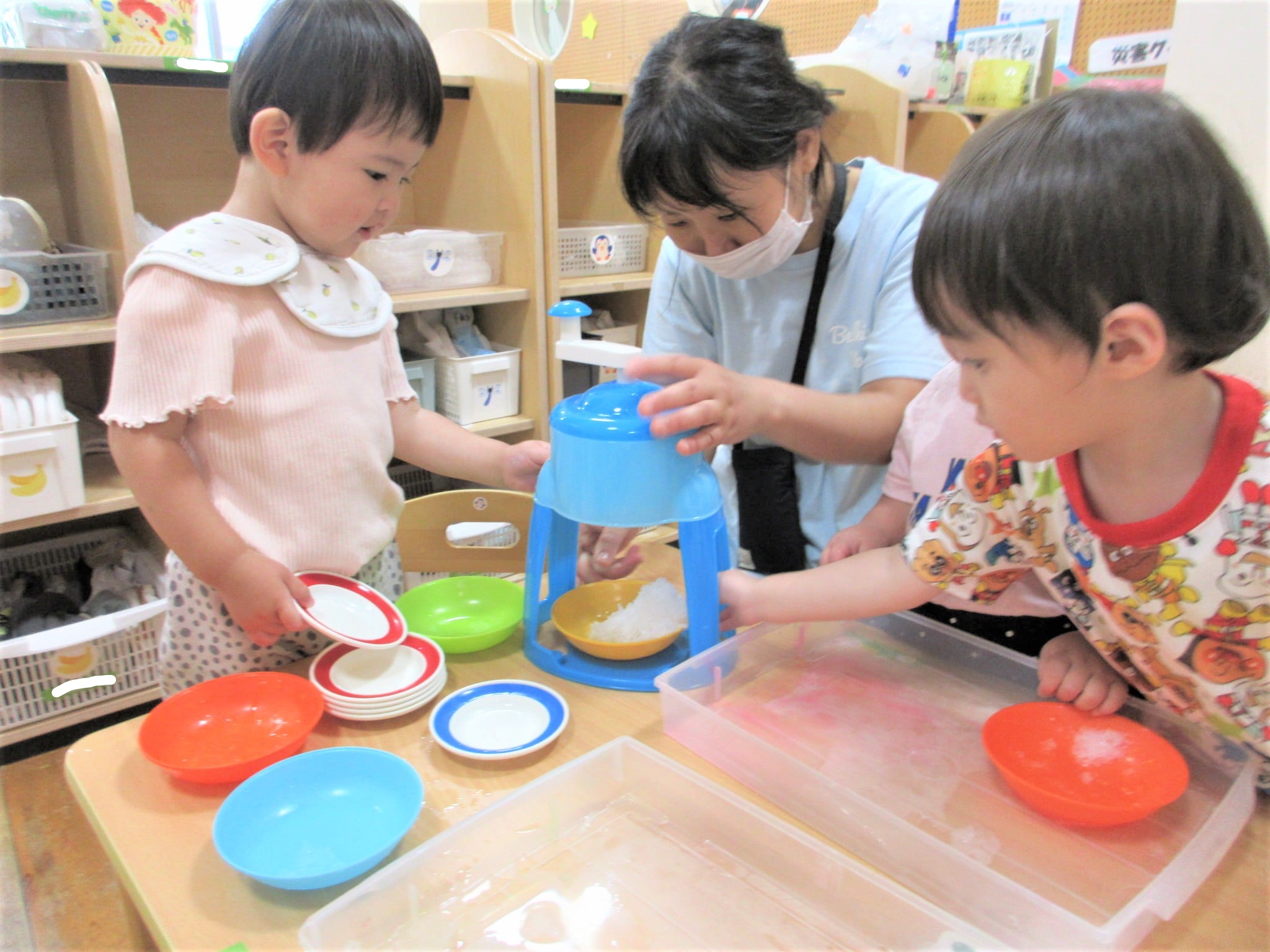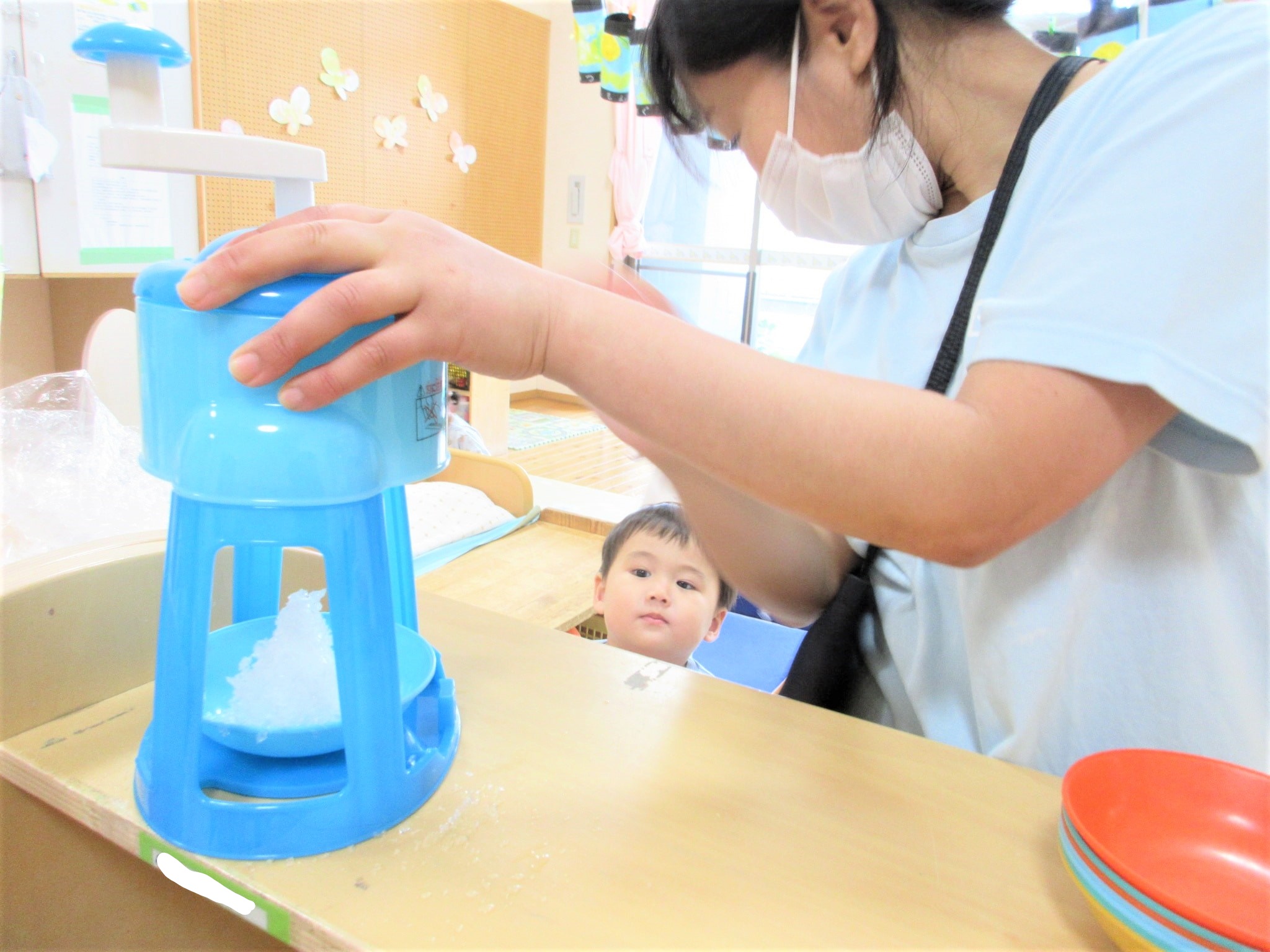 「おかわり~♪」みたいな感じで“あひる組のかき氷屋さん”が始まりました(笑)