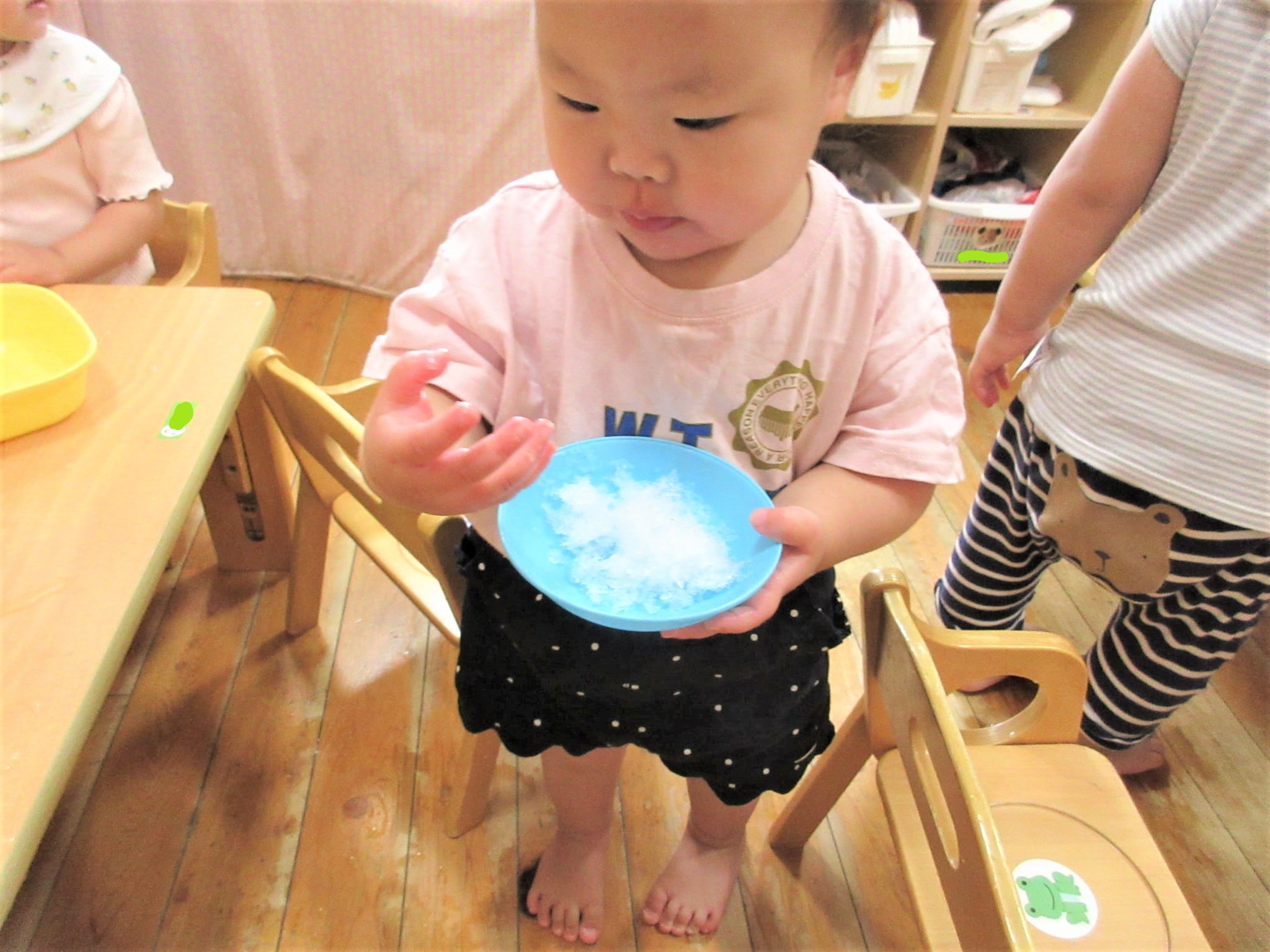 最初の氷とは違い、少しふわふわとした感触を楽しんでいました♪