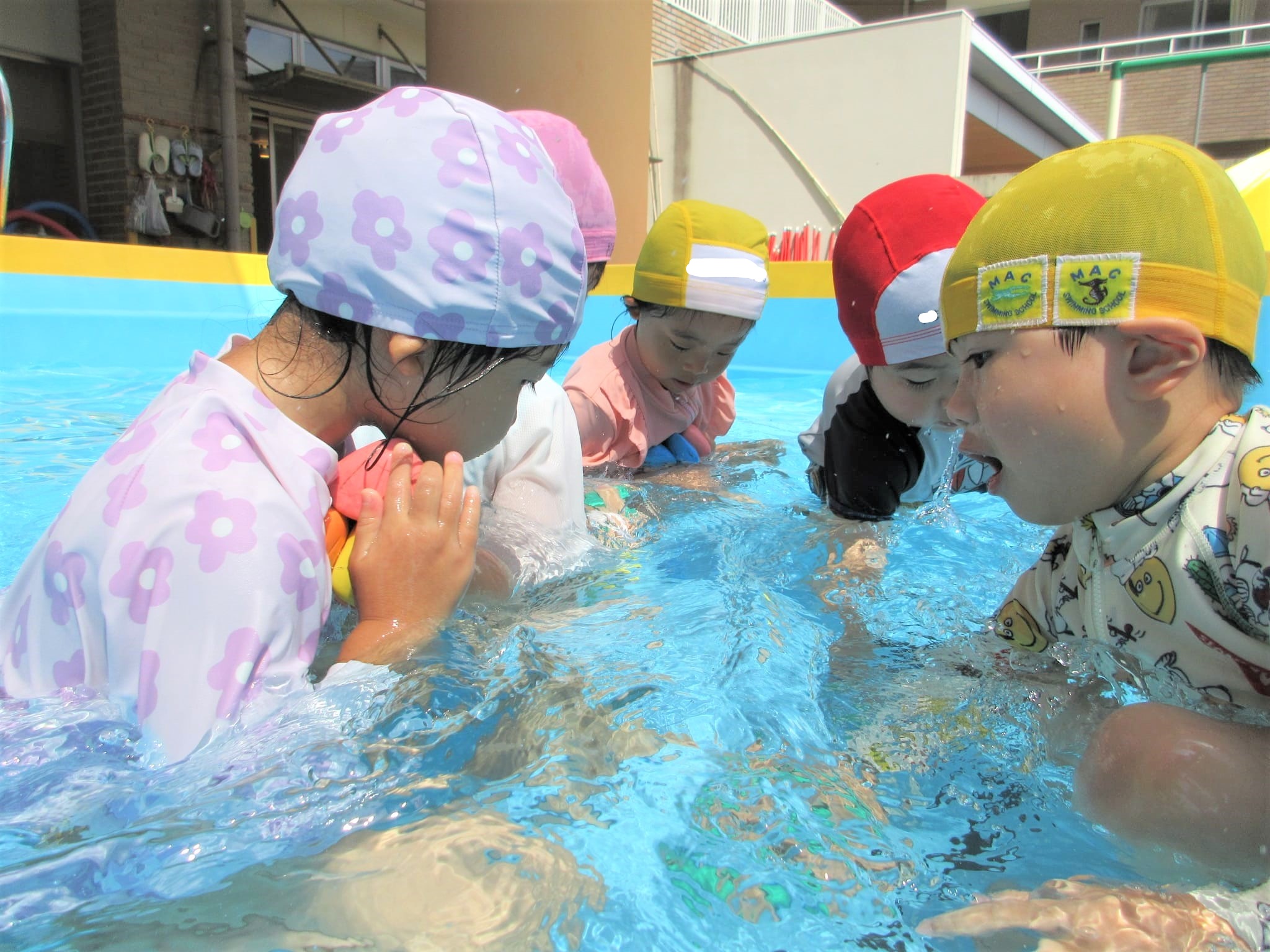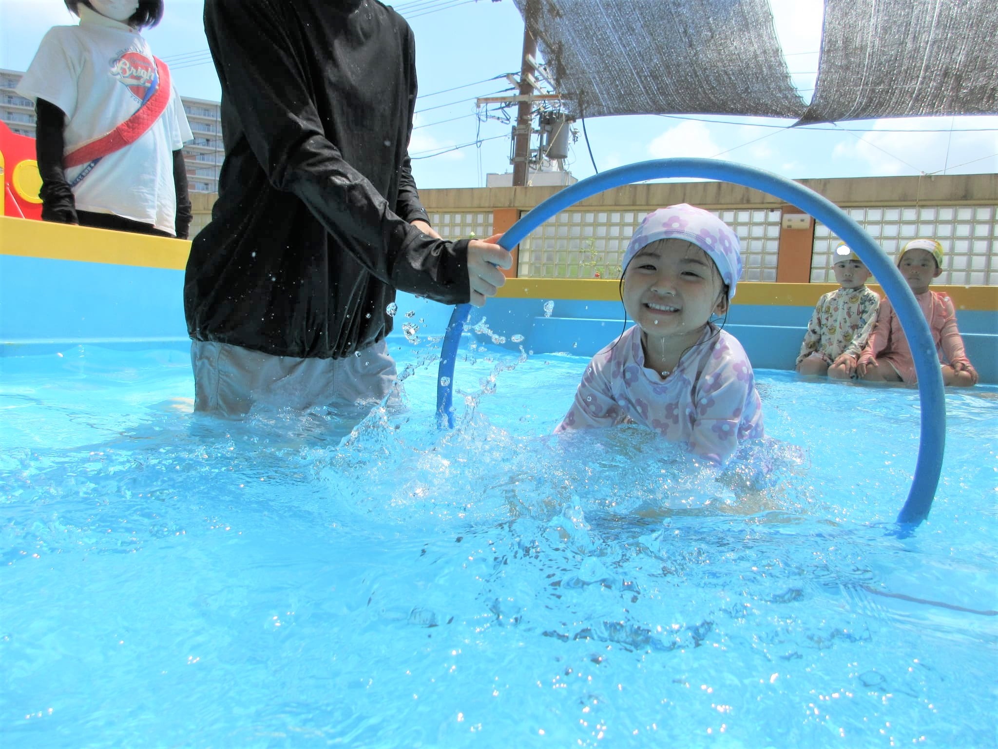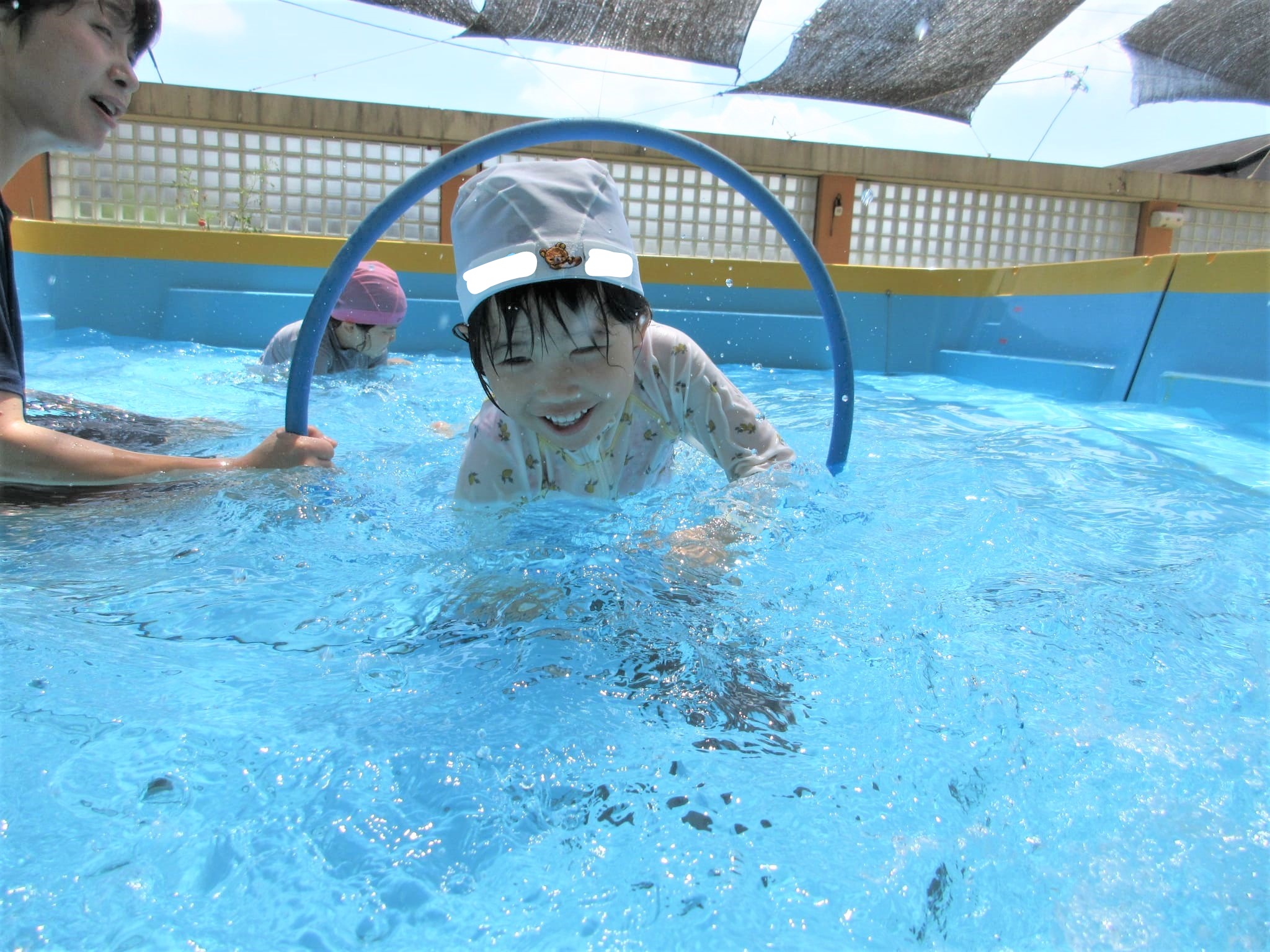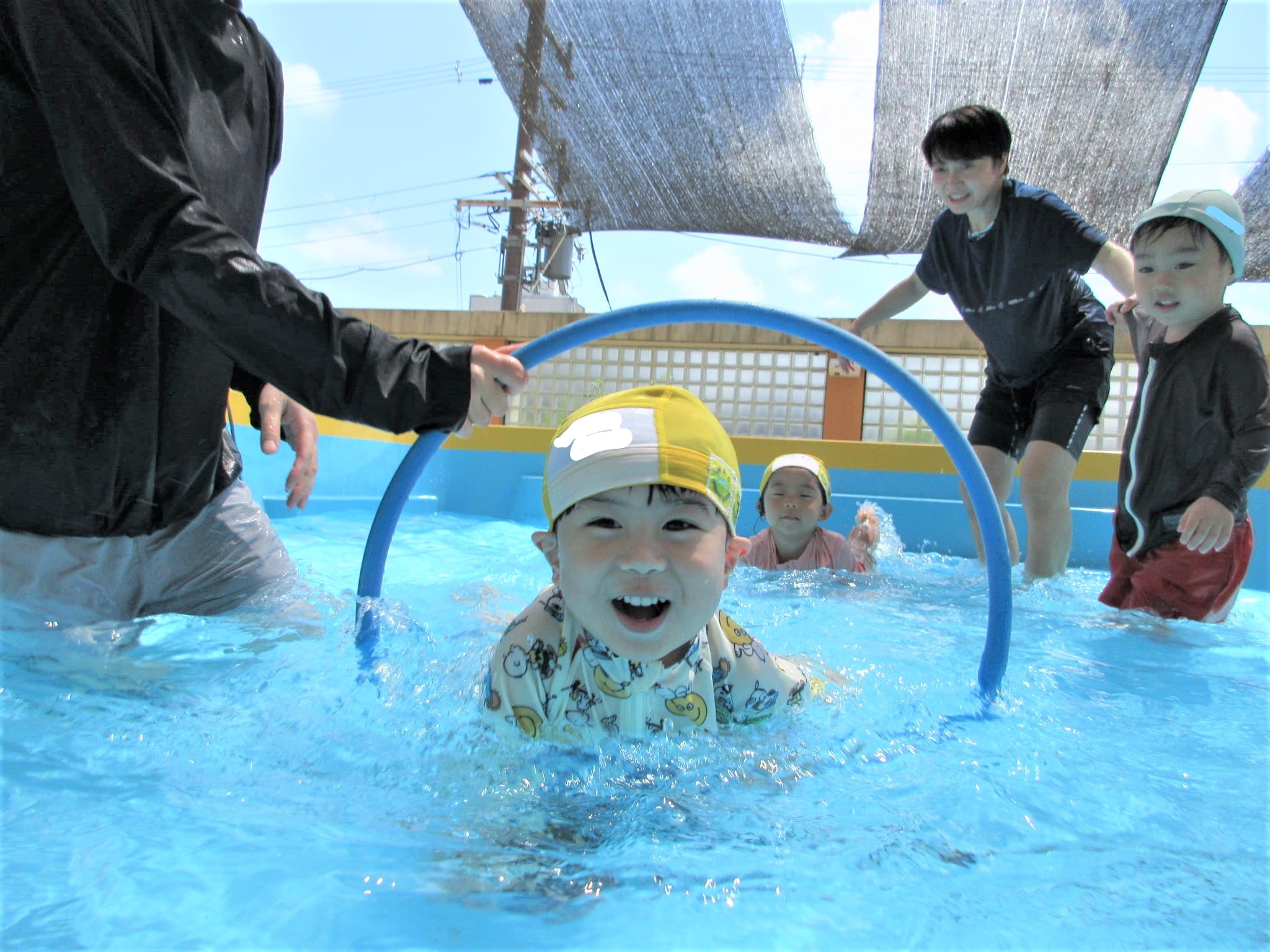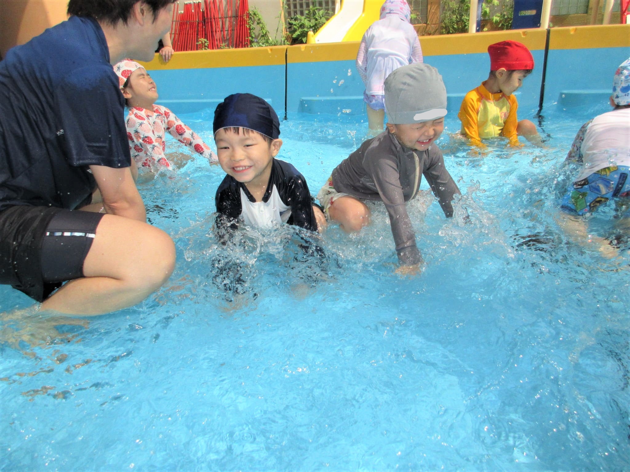 いろんな遊びを楽しみながら、顔に水が掛かることにも少しずつ慣れていき