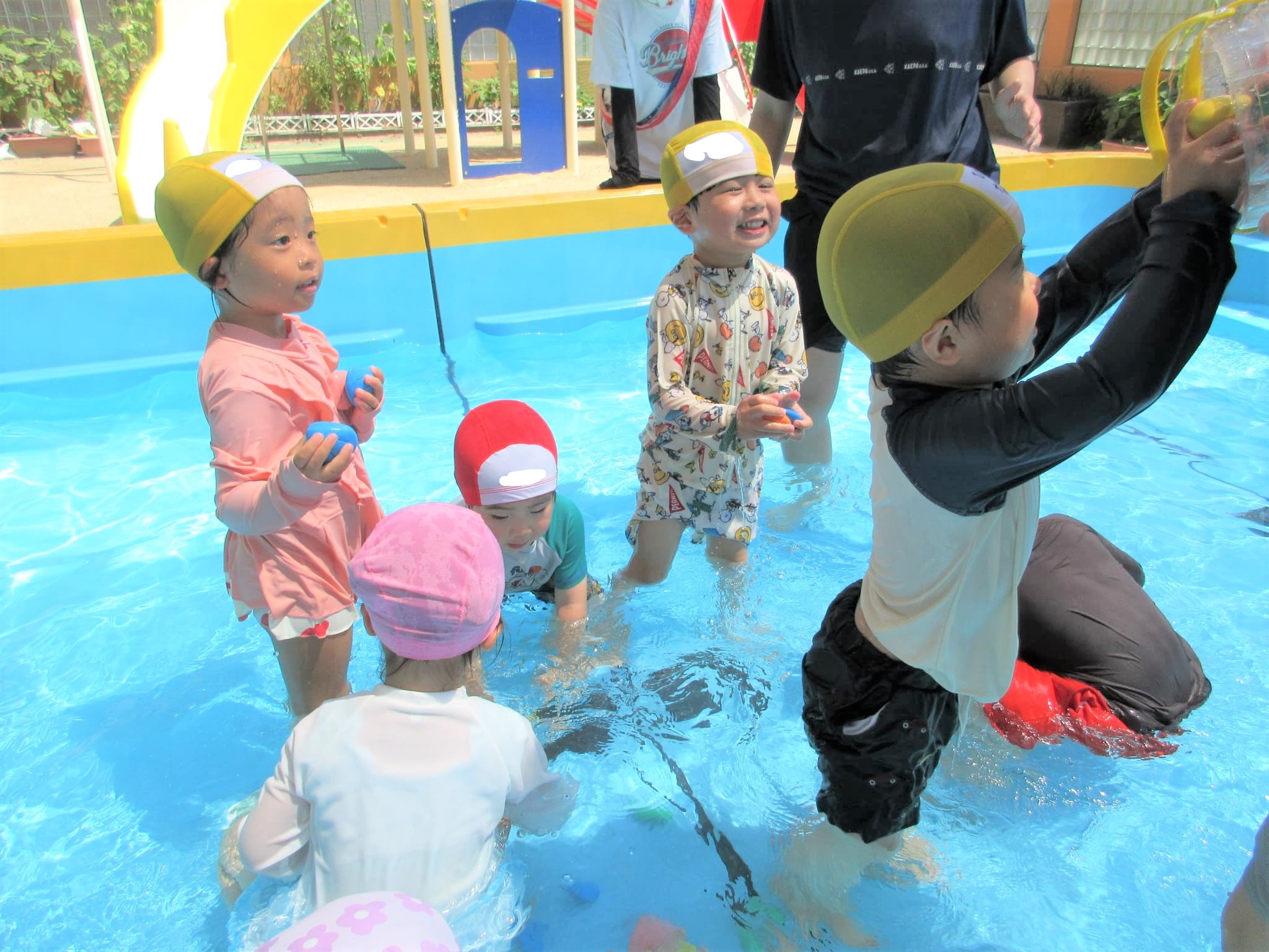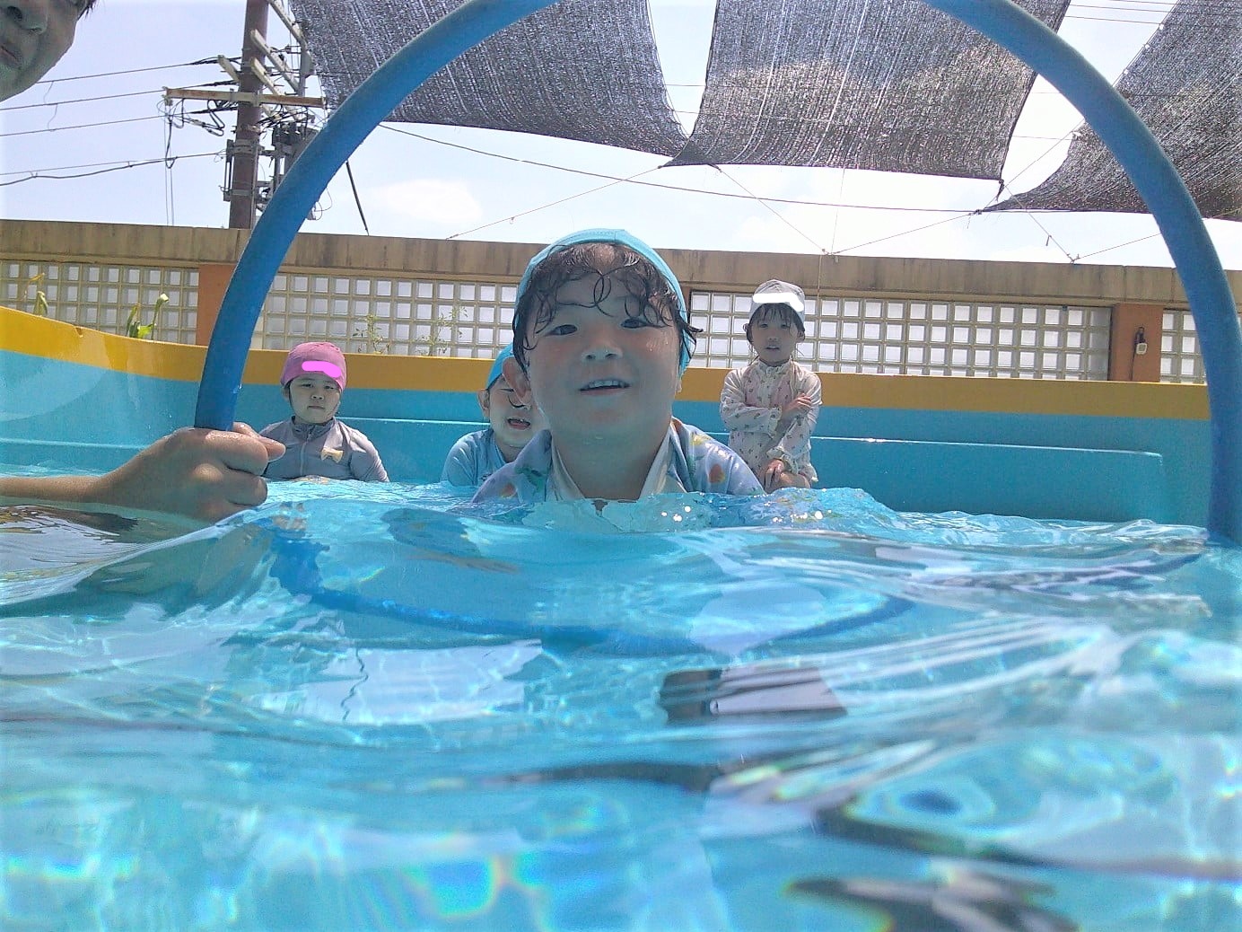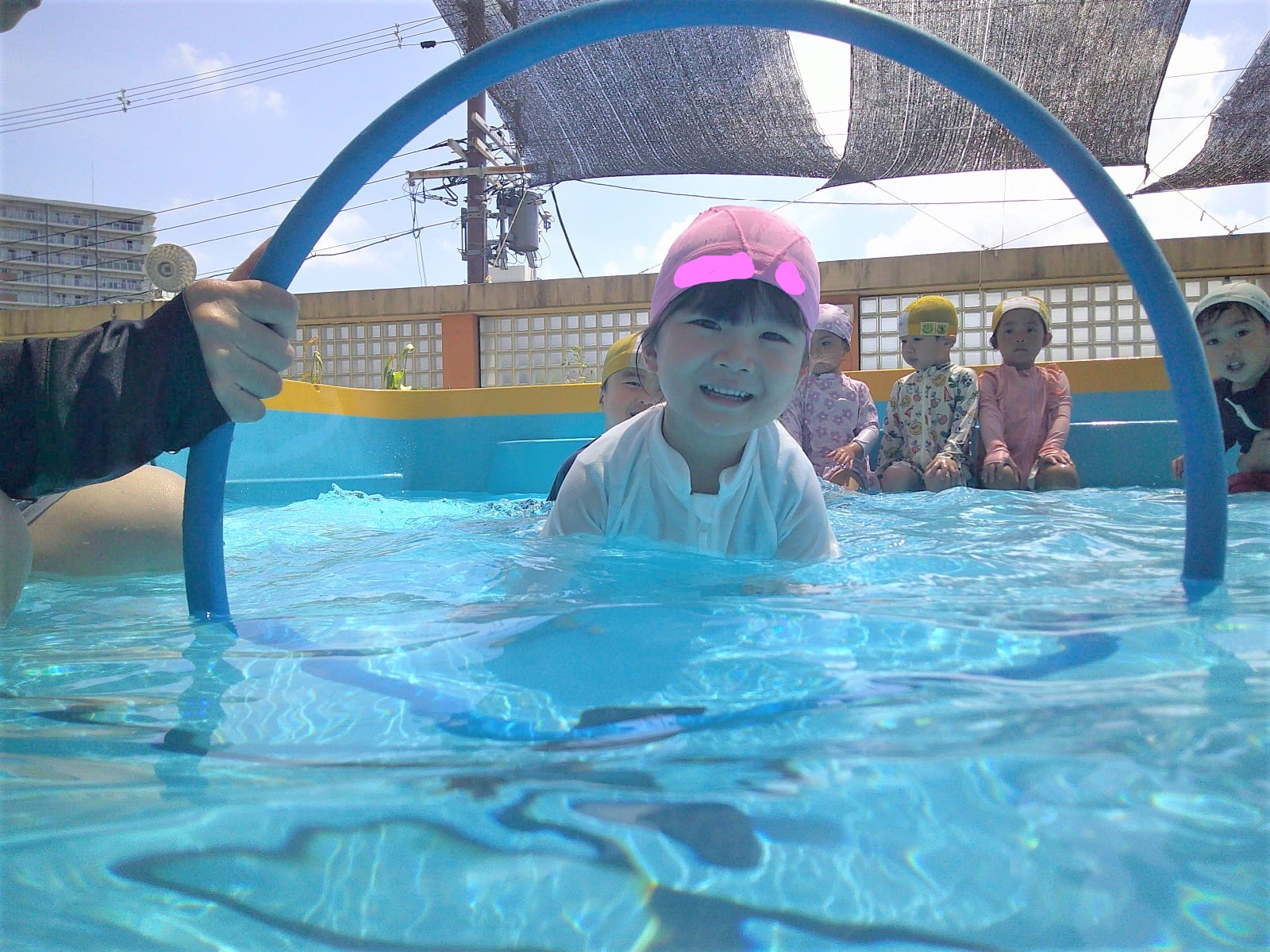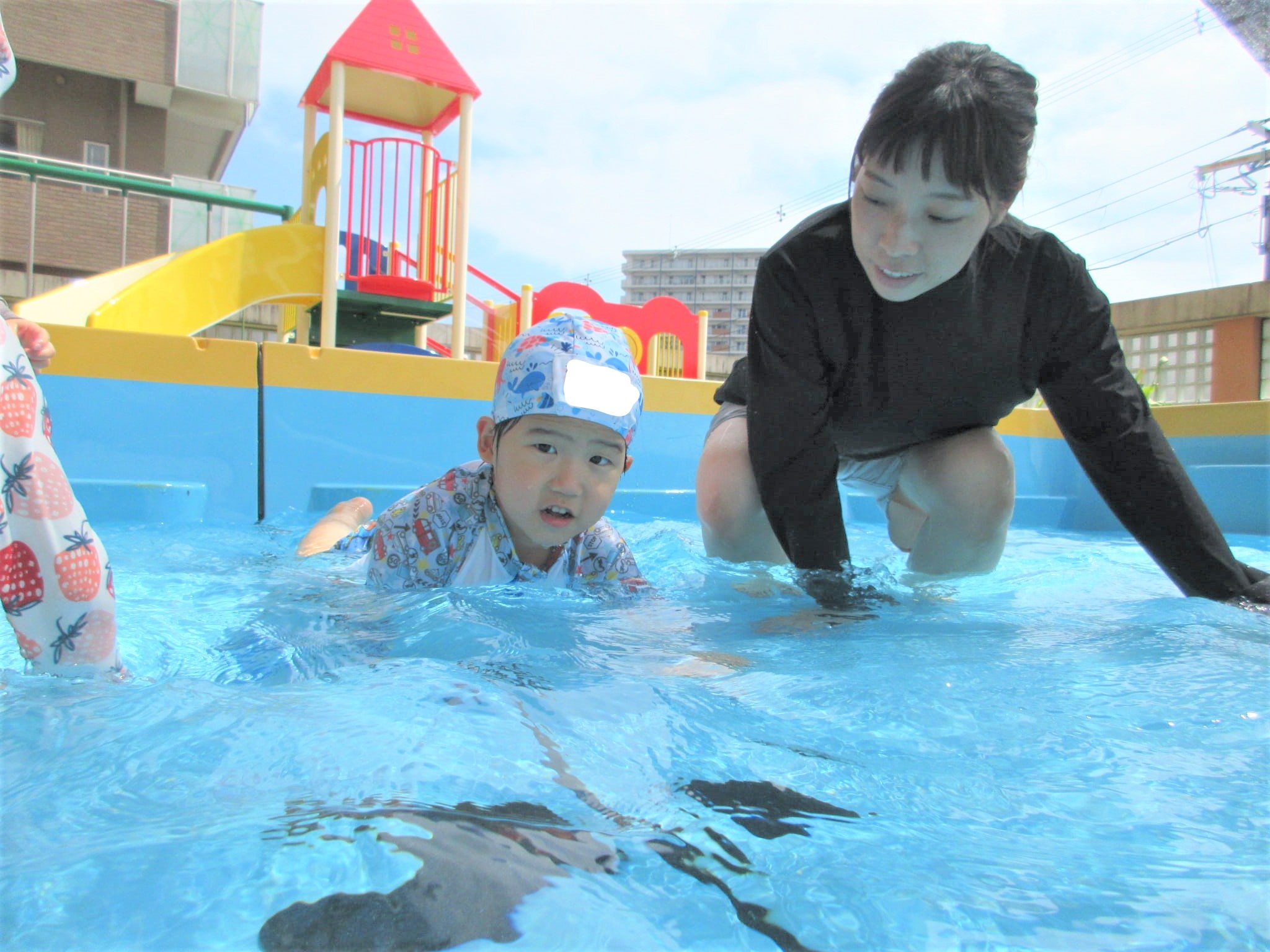 いろんな遊びを楽しみながら、顔に水が掛かることにも少しずつ慣れていき