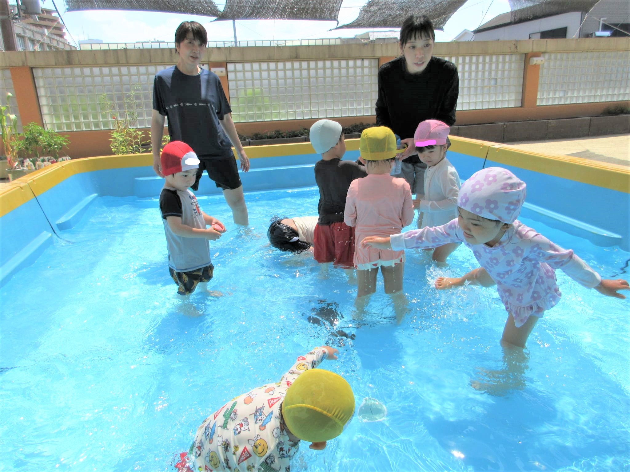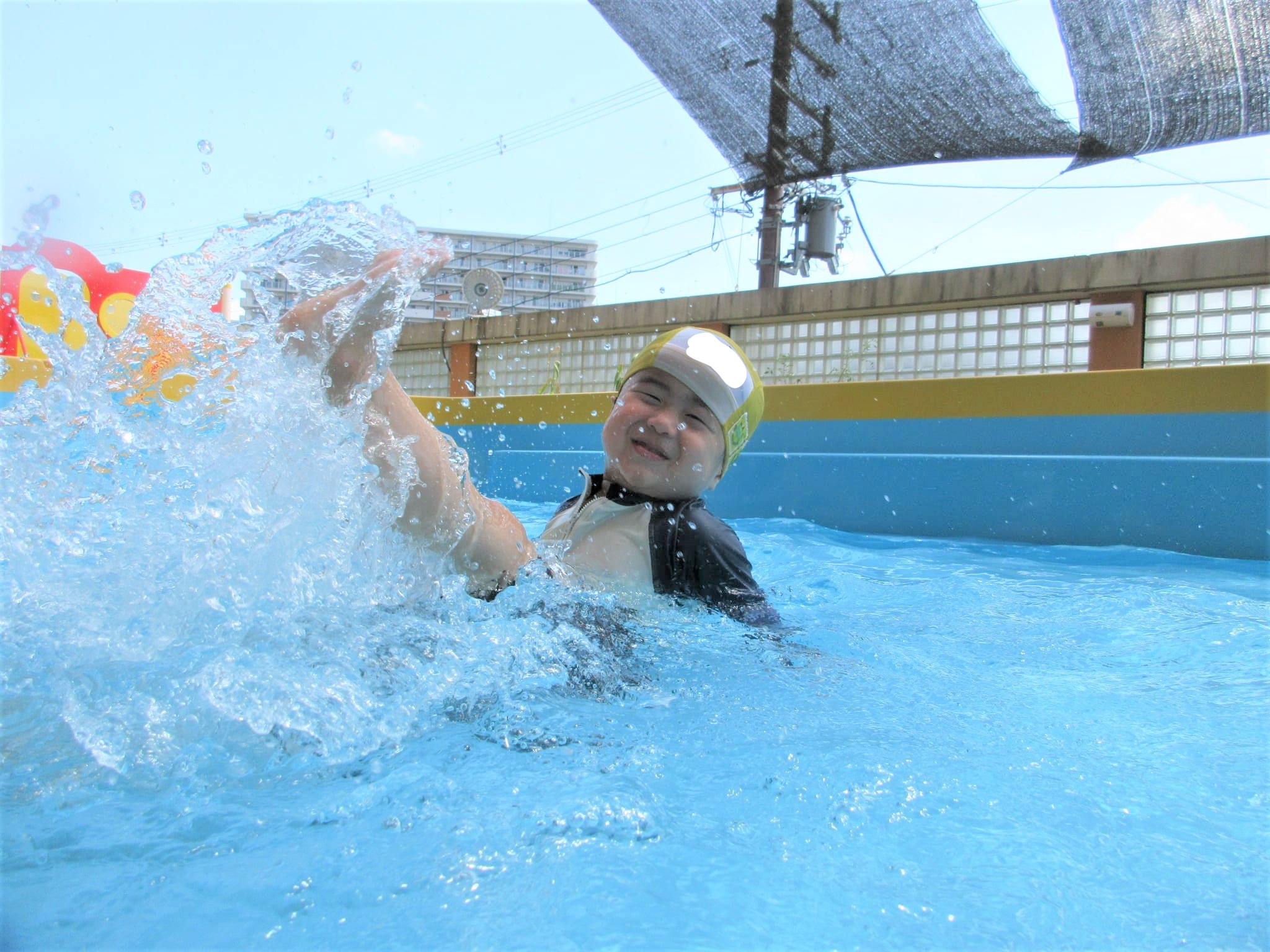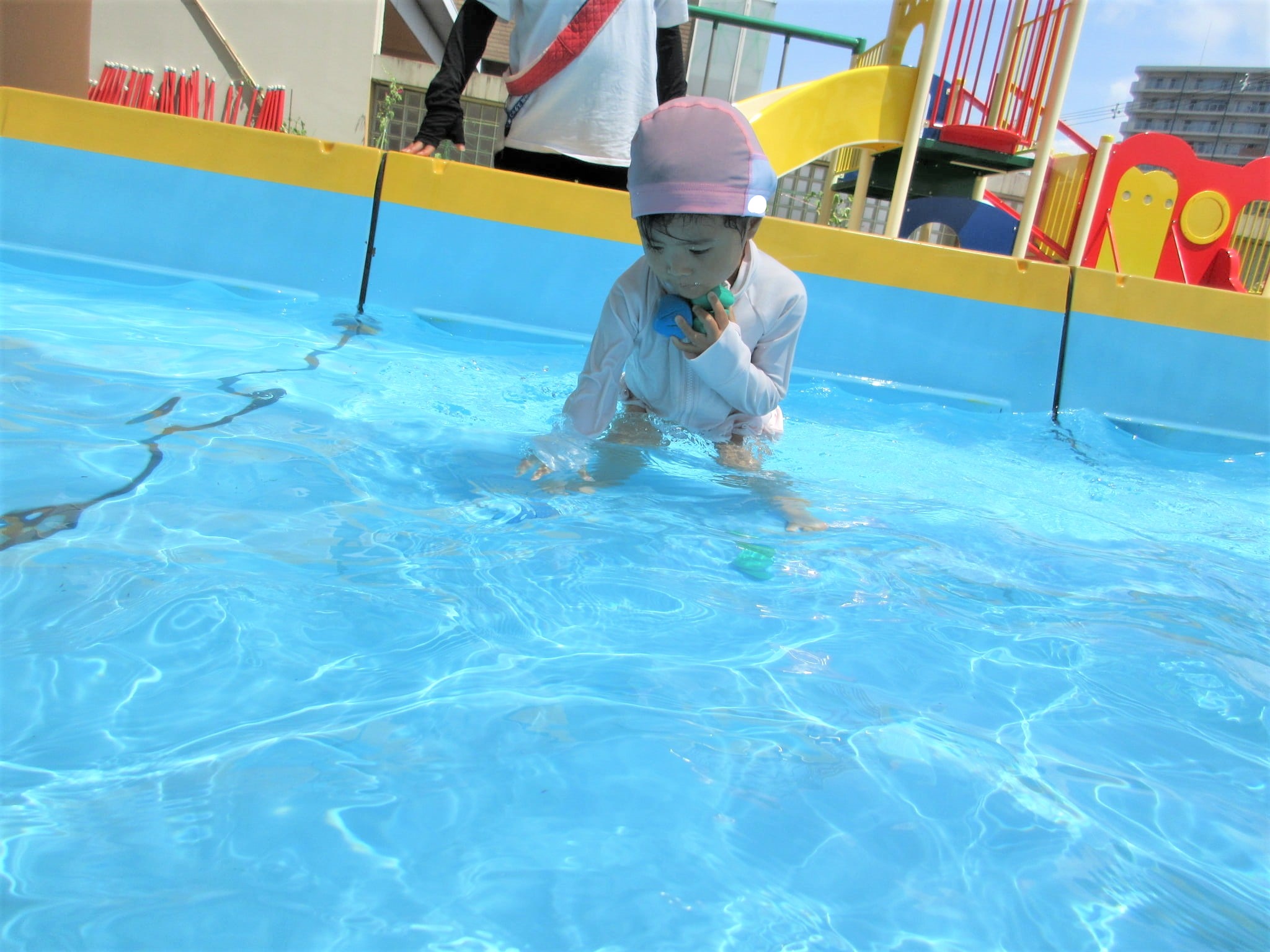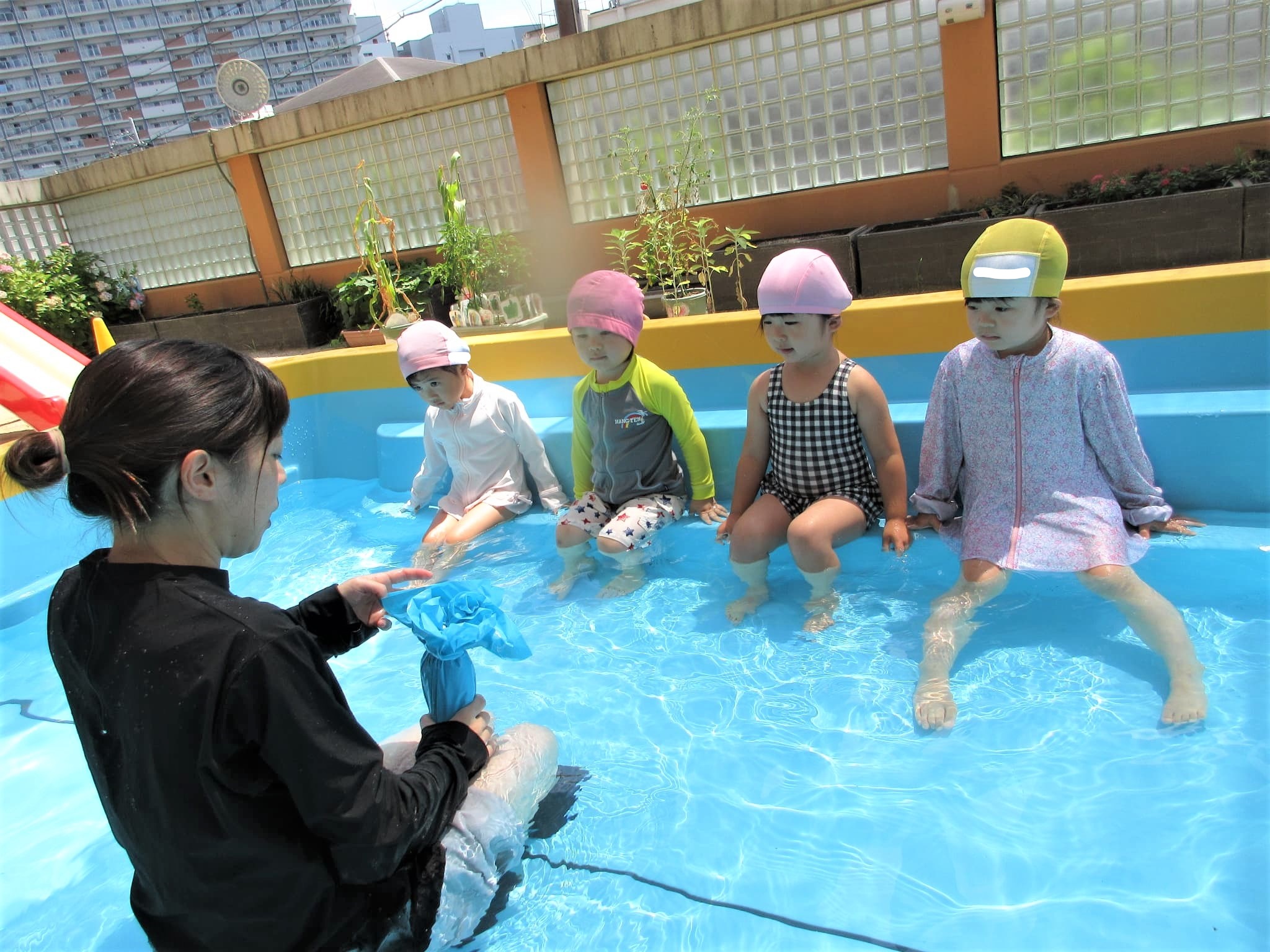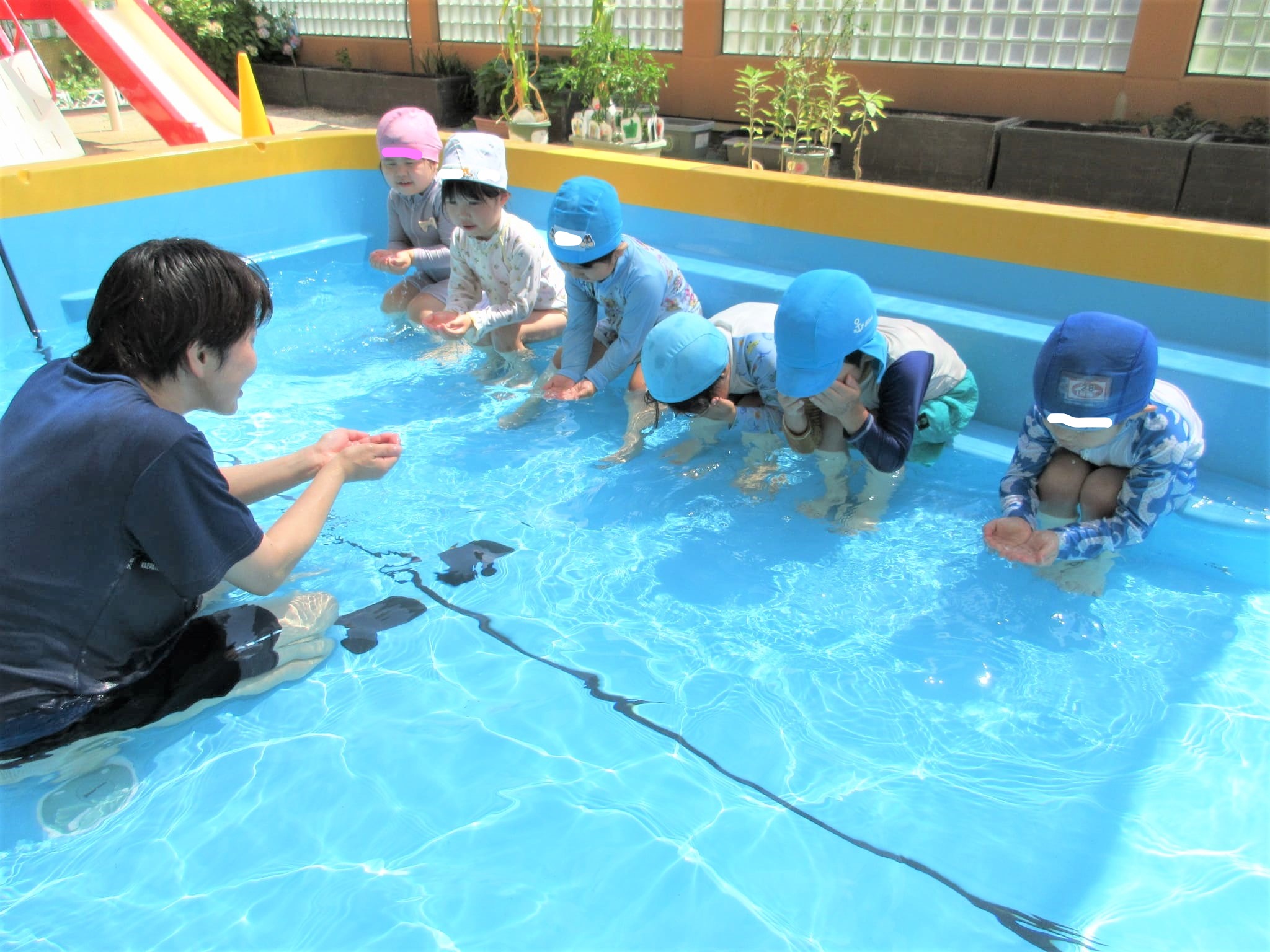 いろんな遊びを楽しみながら、顔に水が掛かることにも少しずつ慣れていき