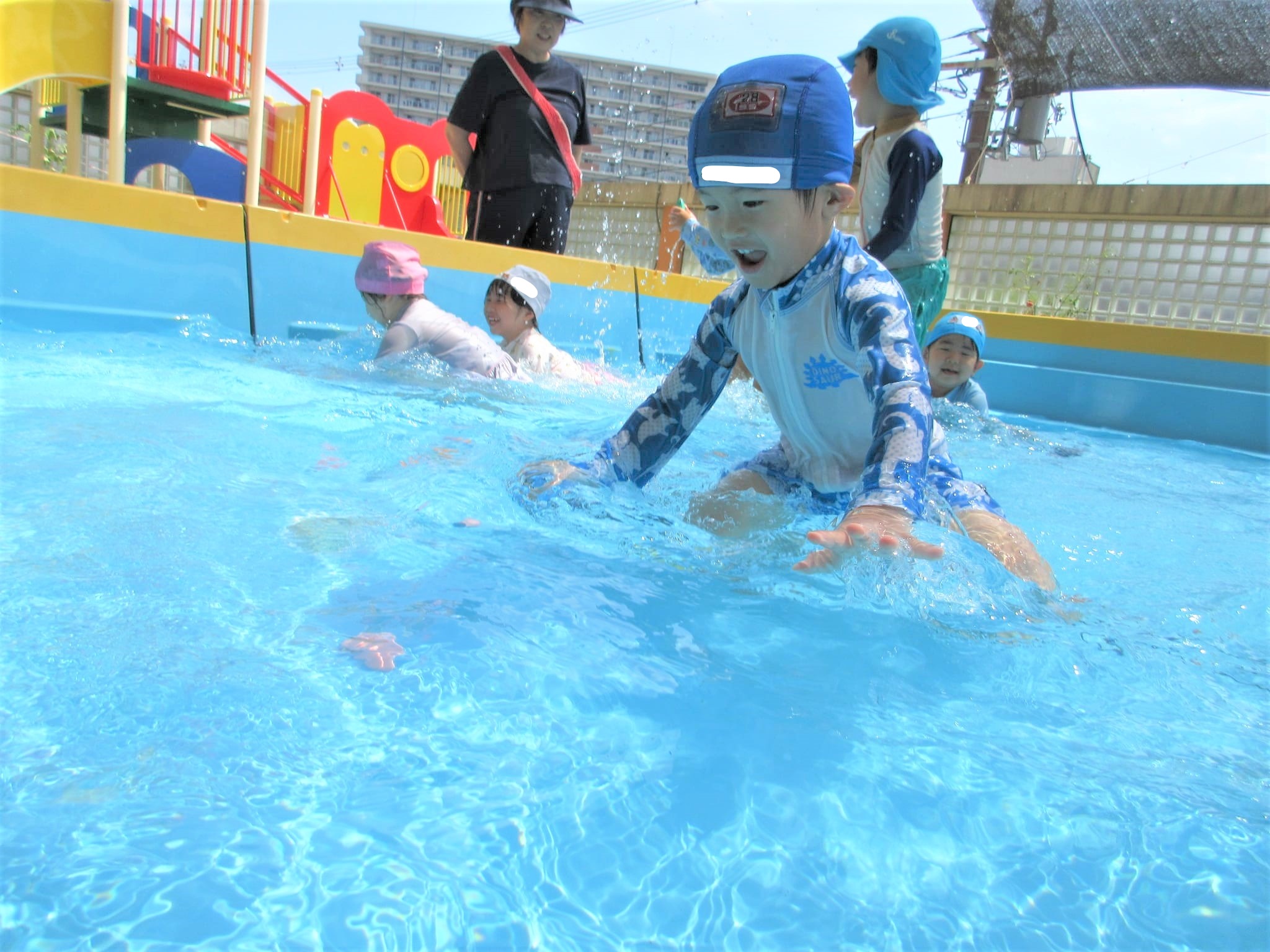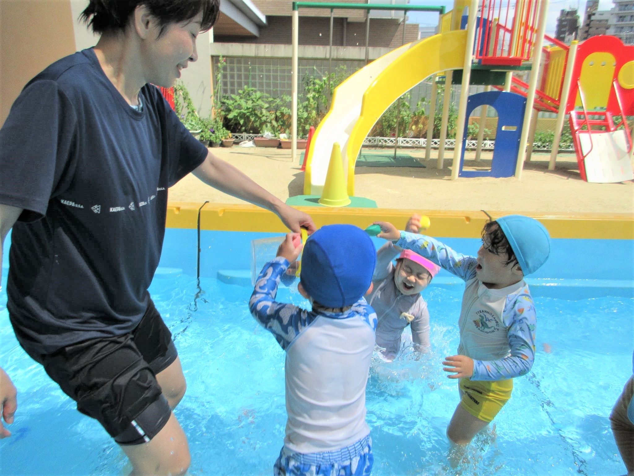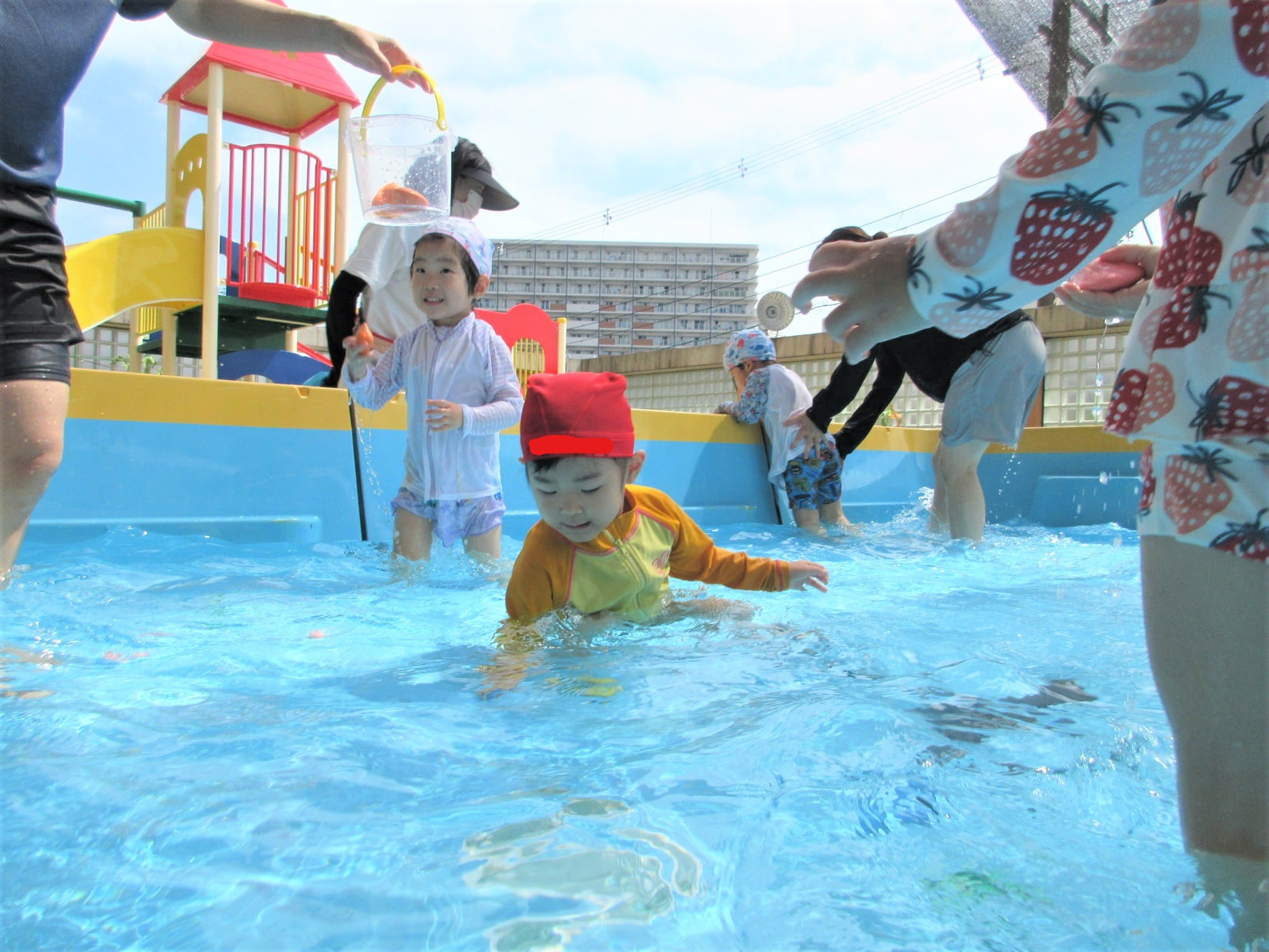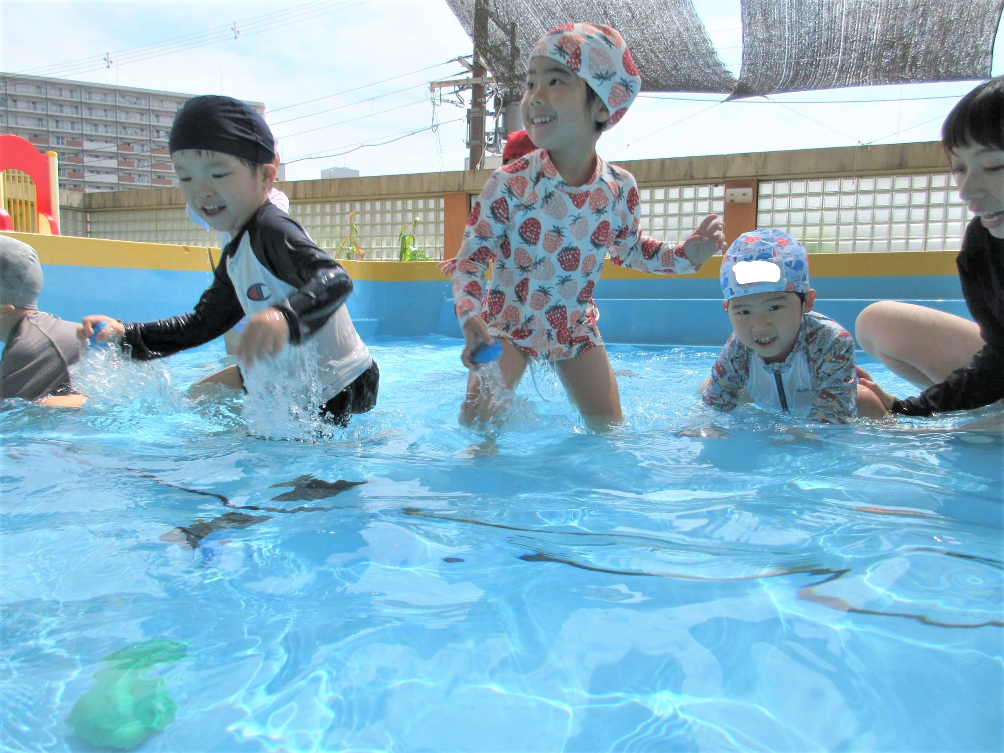 いろんな遊びを楽しみながら、顔に水が掛かることにも少しずつ慣れていき