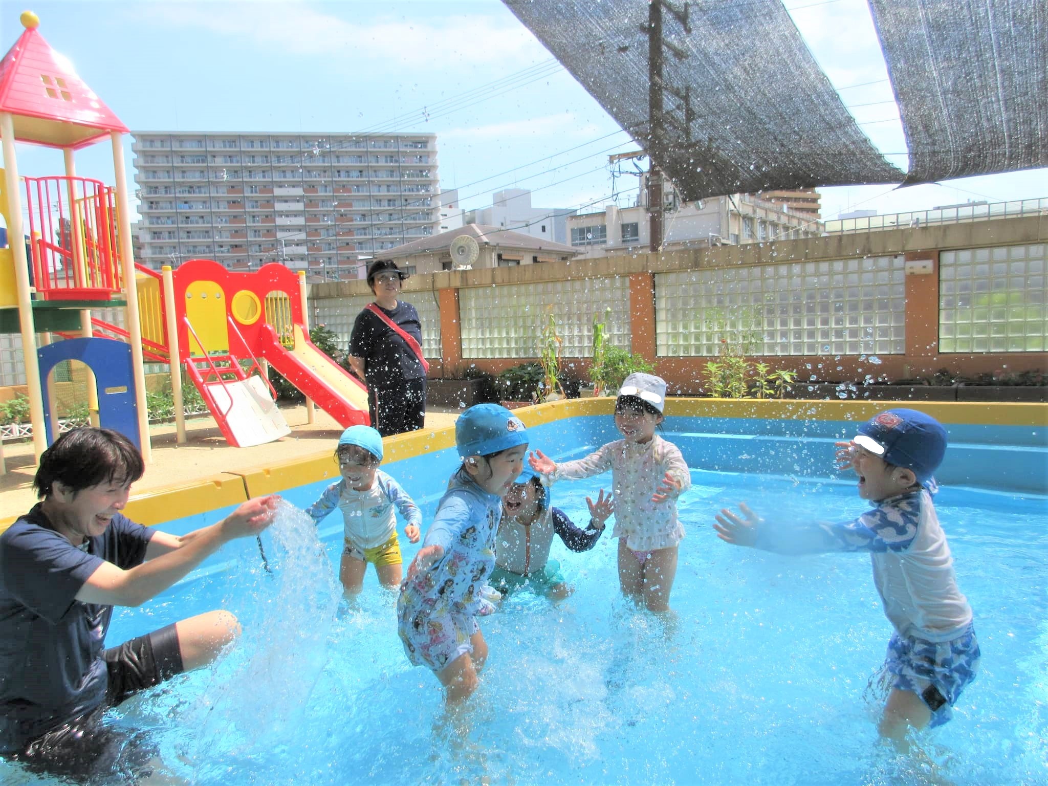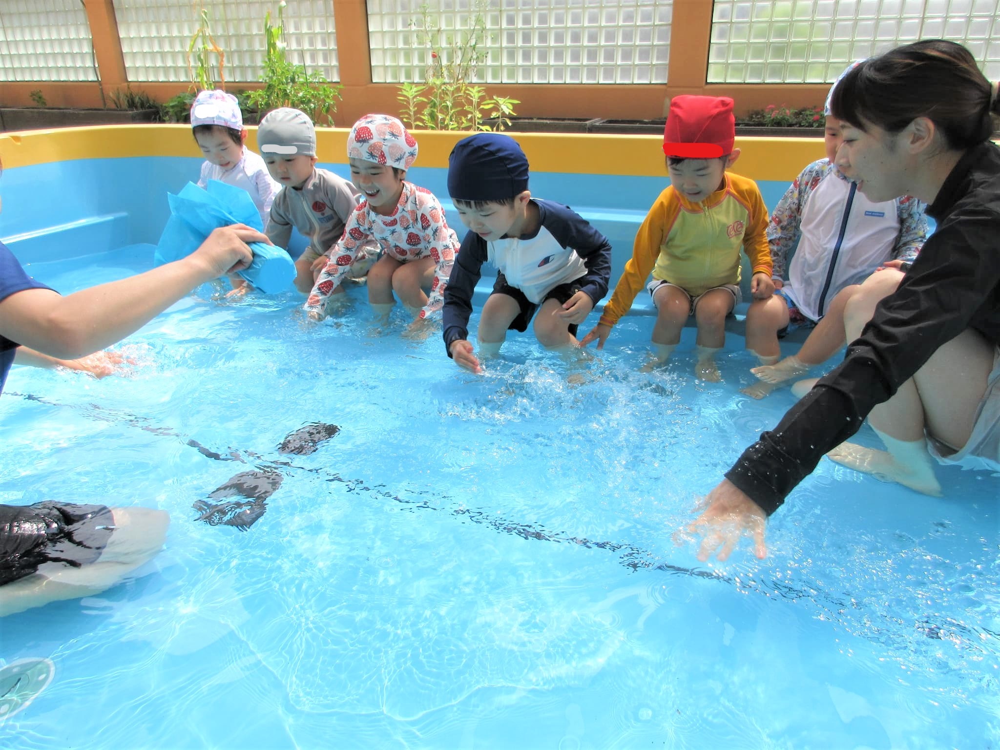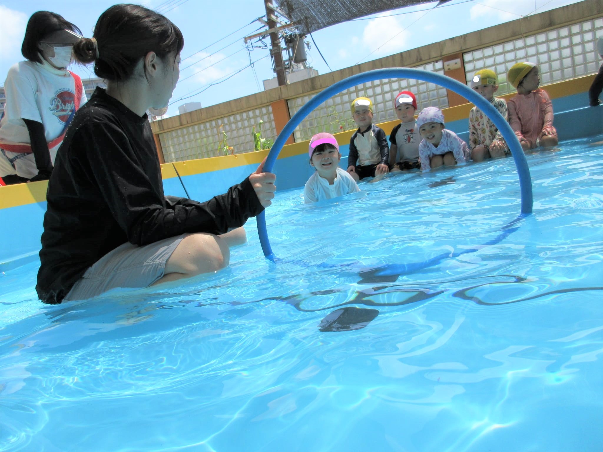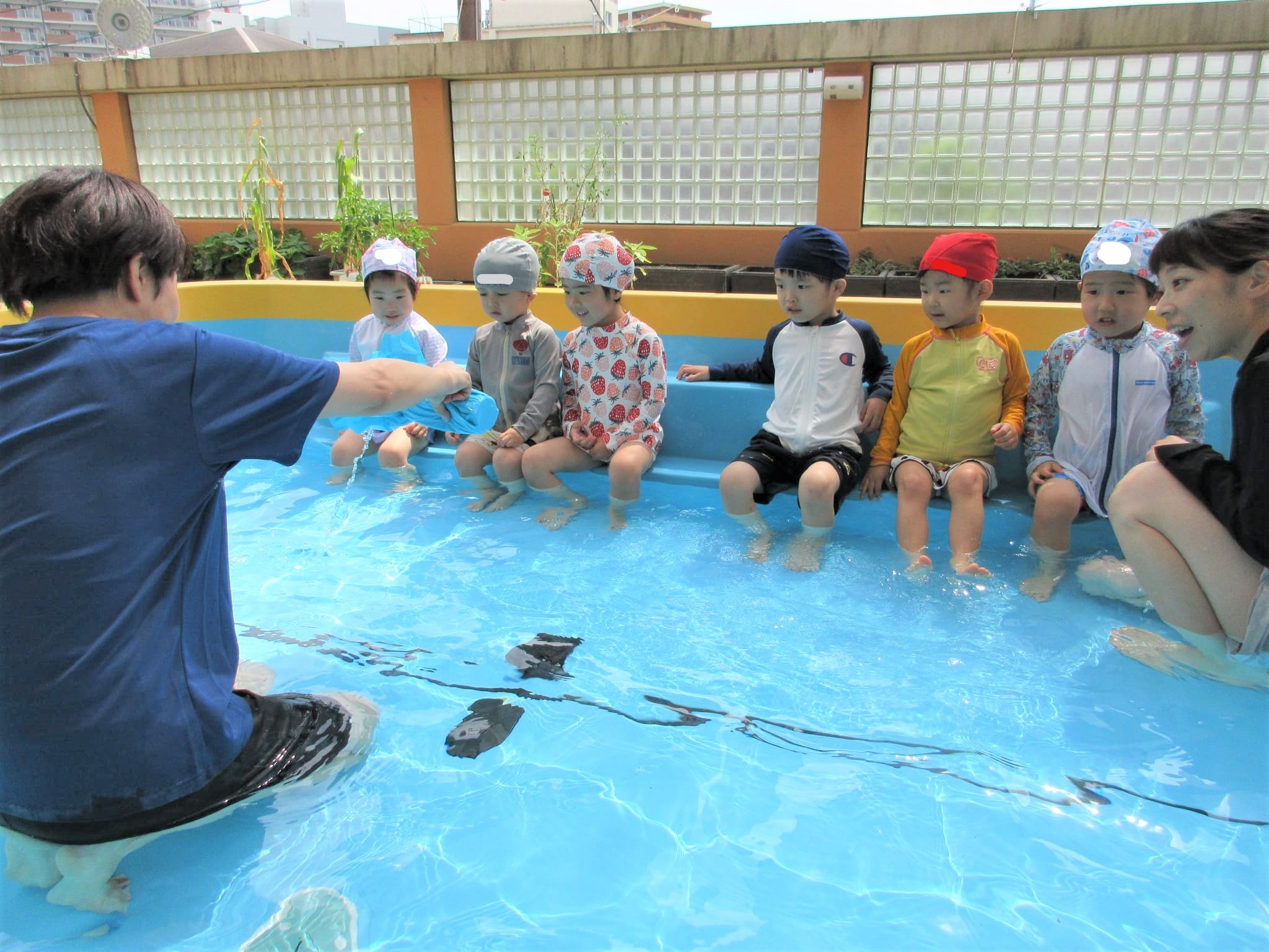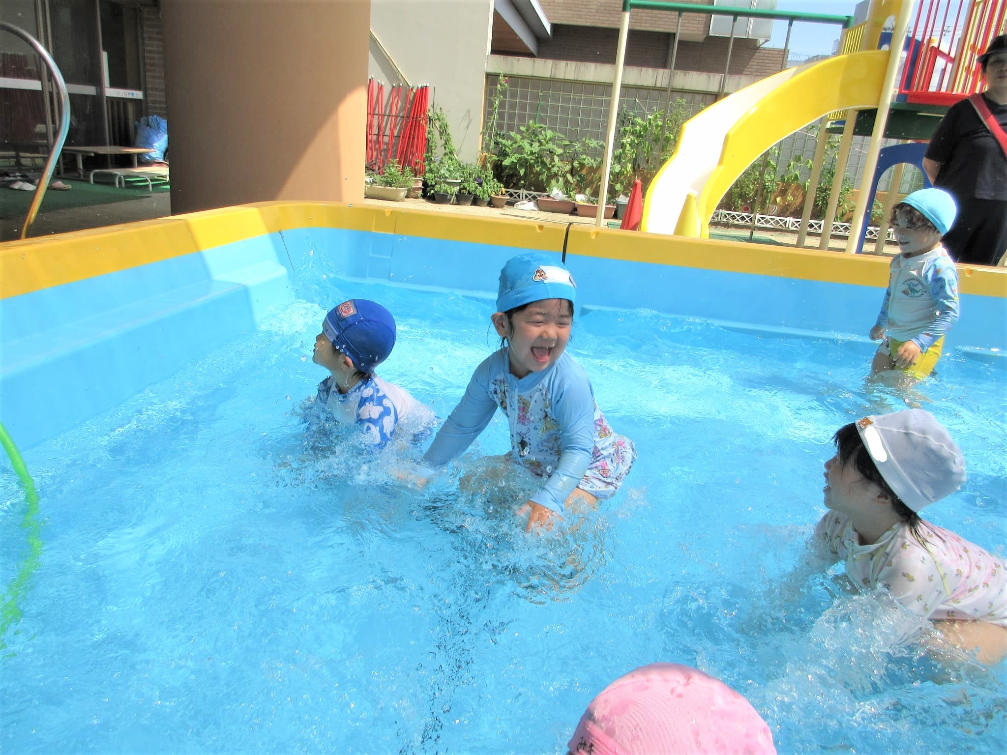 いろんな遊びを楽しみながら、顔に水が掛かることにも少しずつ慣れていき