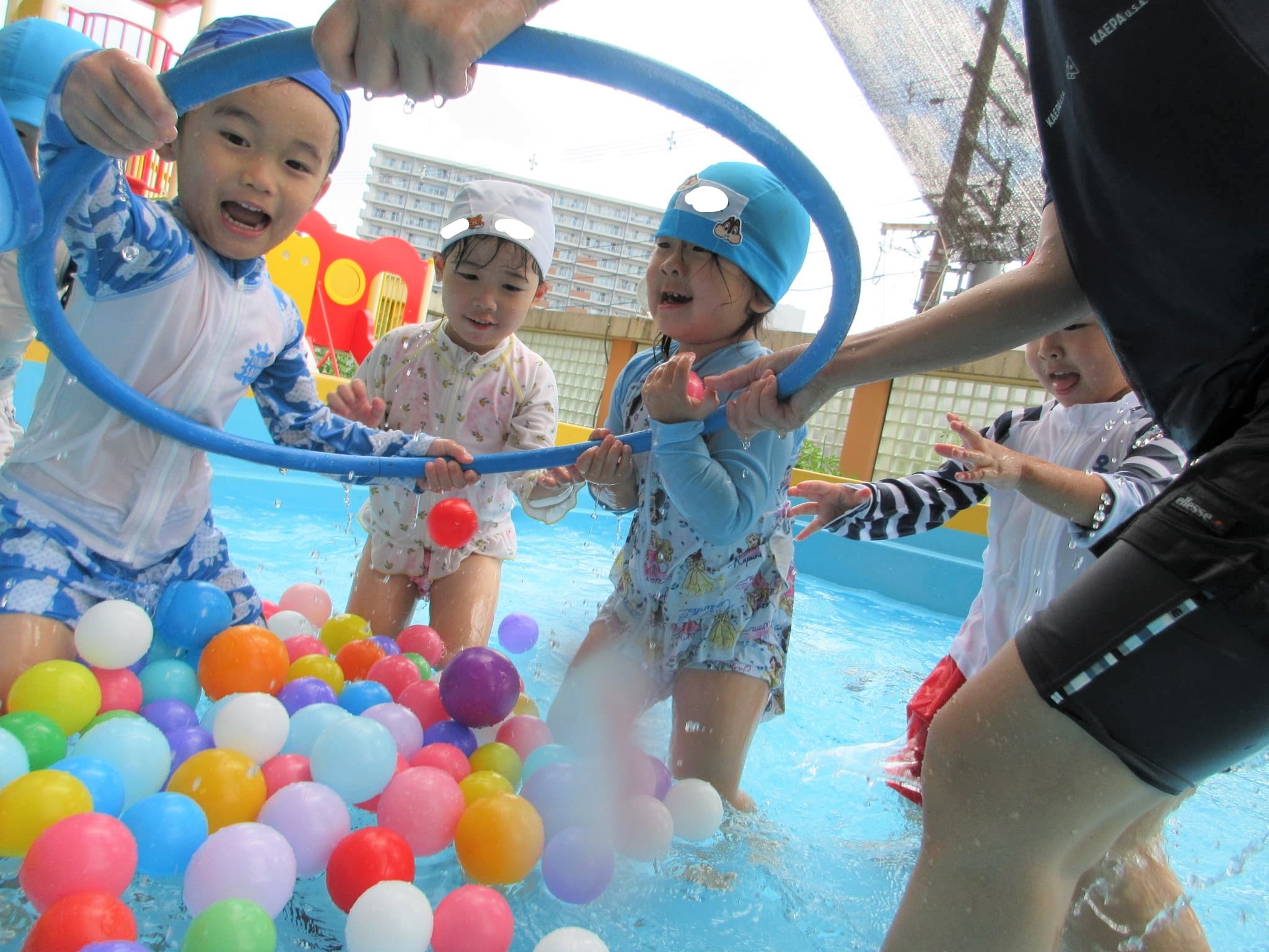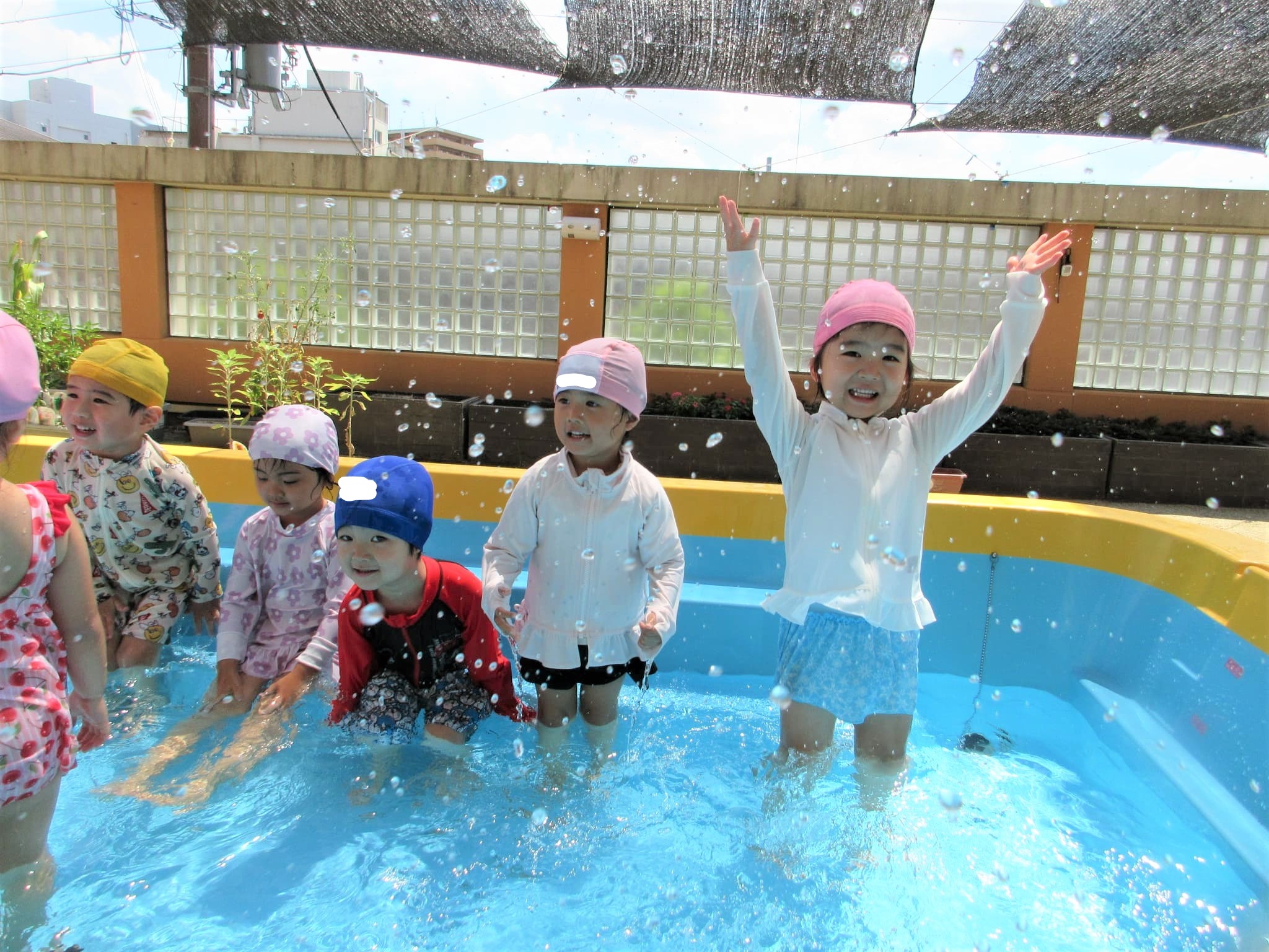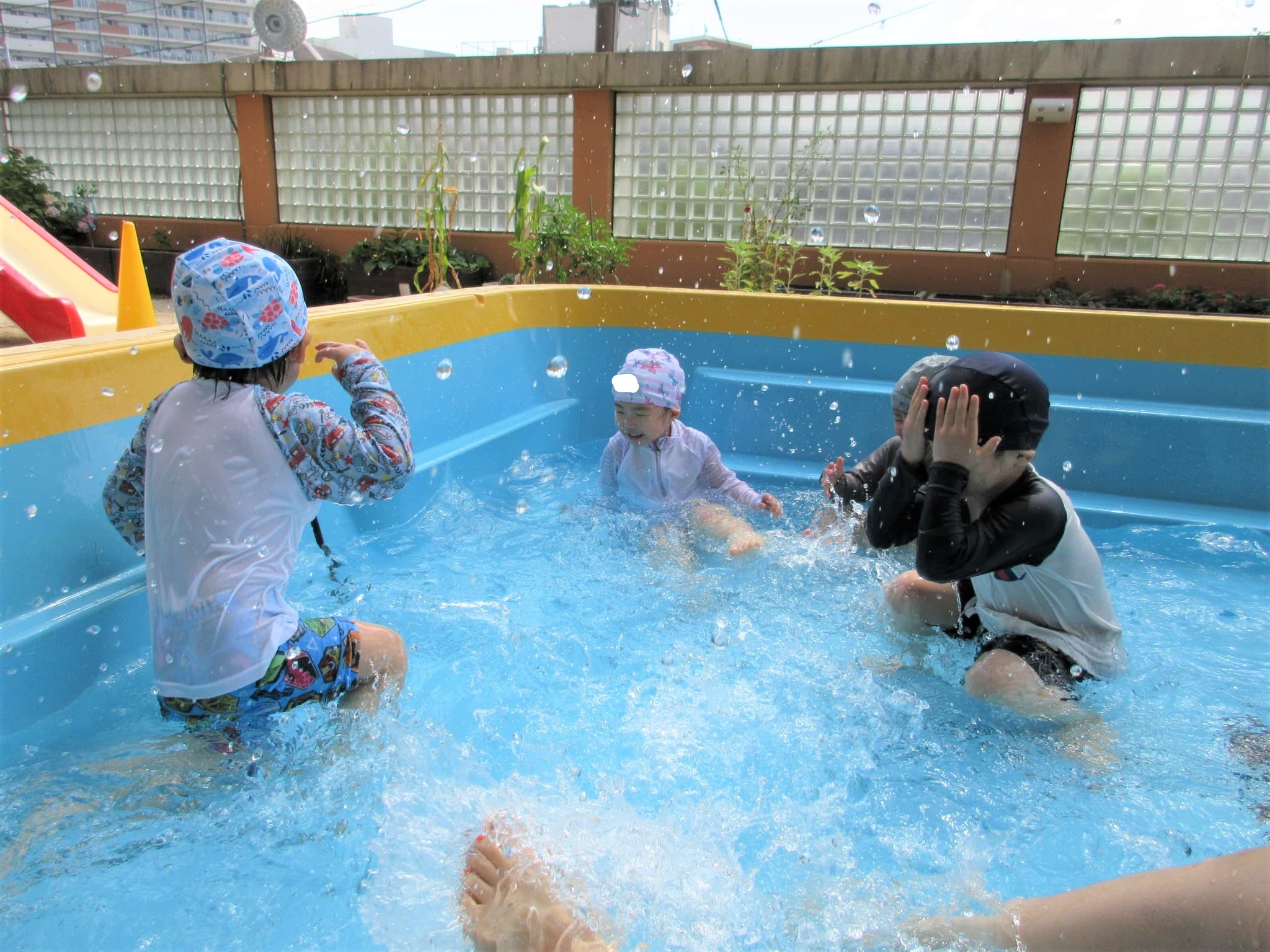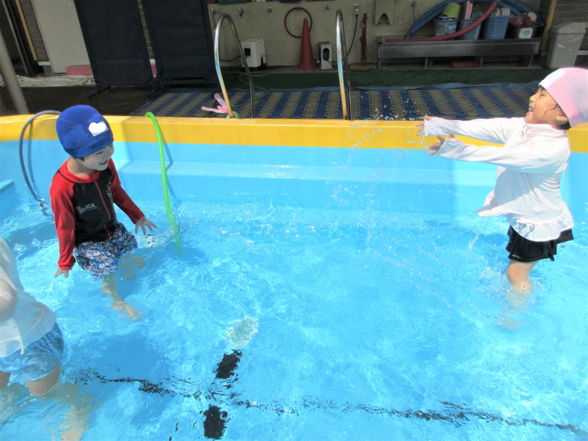 水が掛かるのが苦手な子どもも、友だちがこのように楽しそうに遊んでいたら
