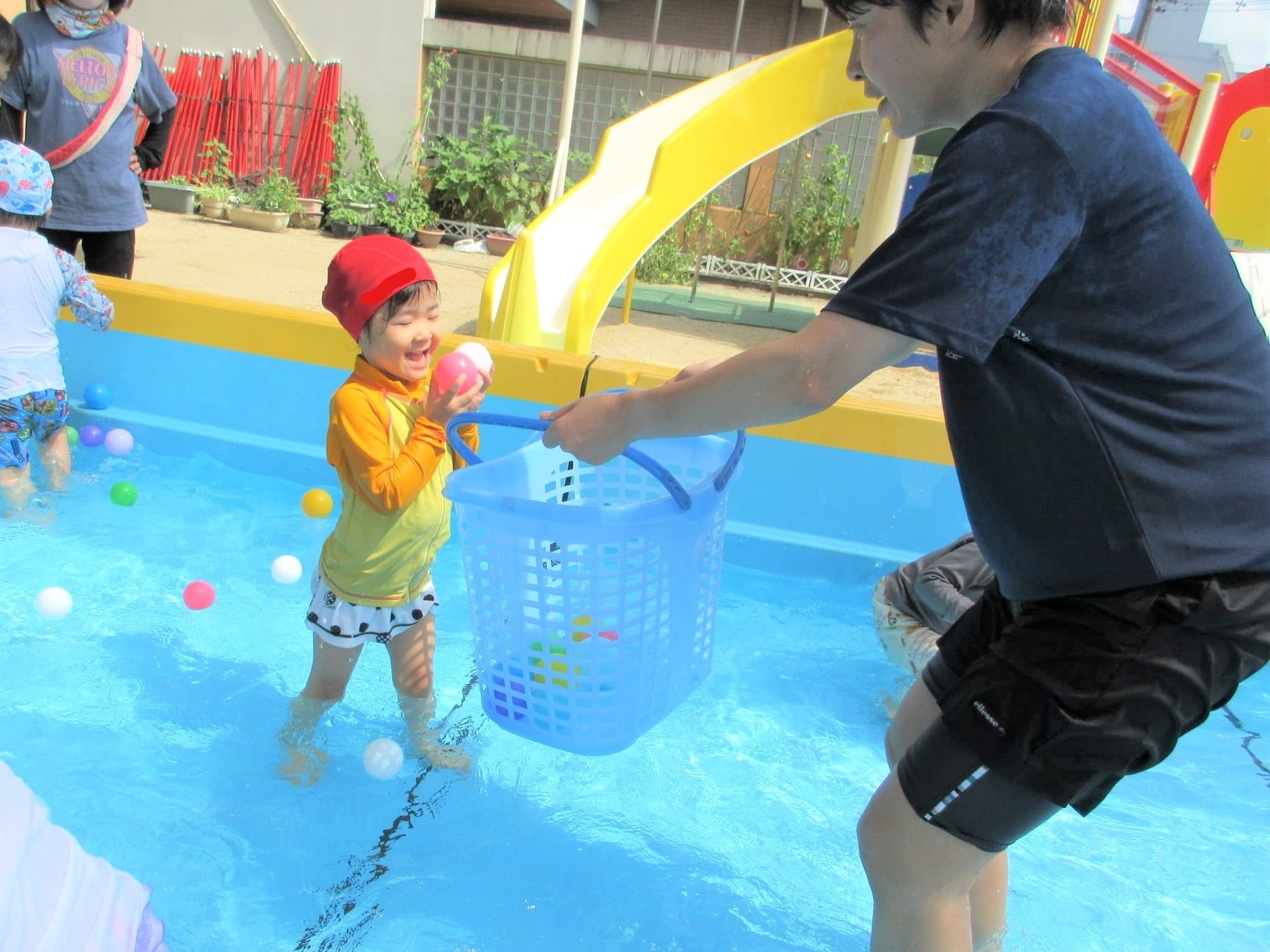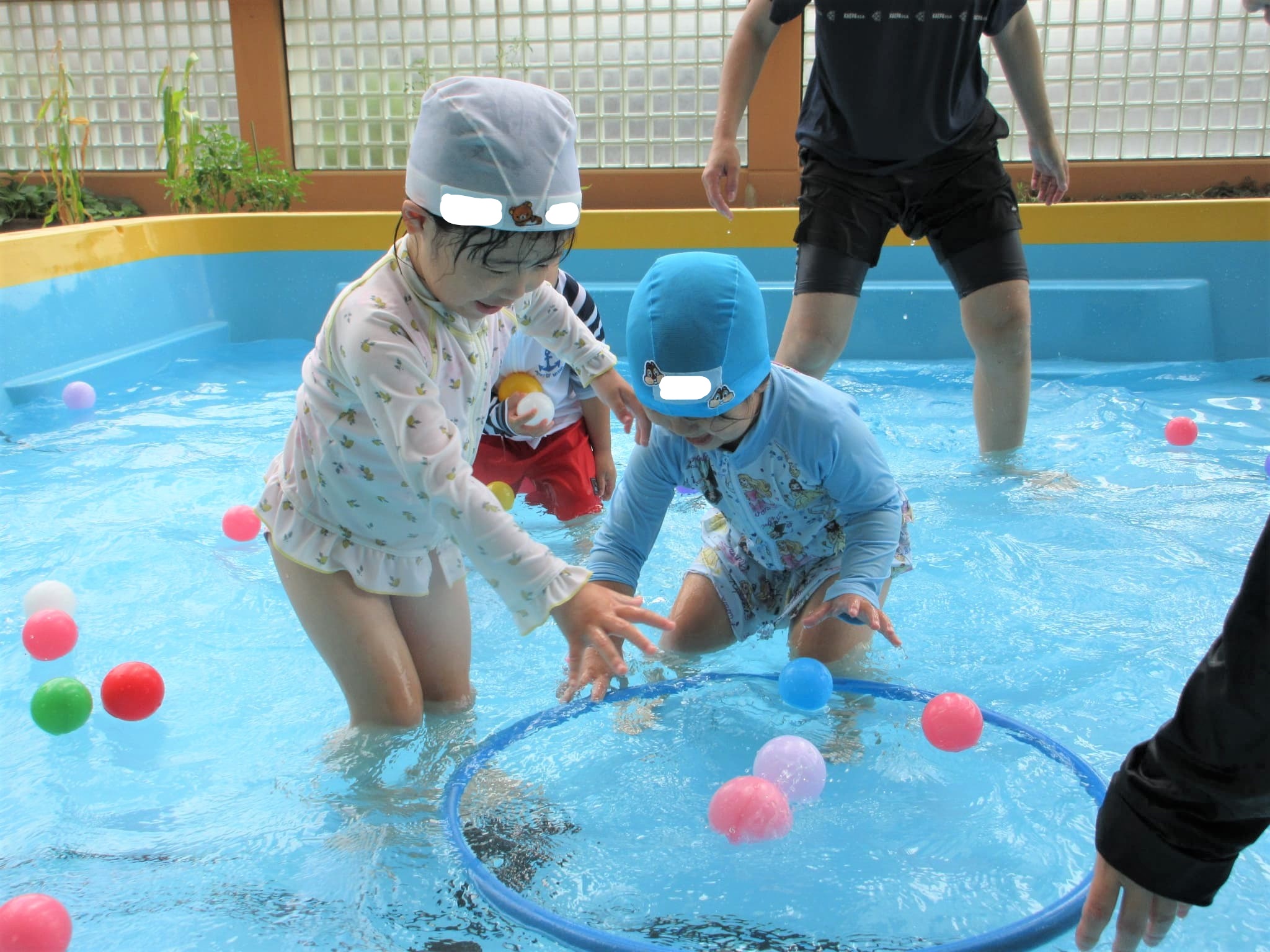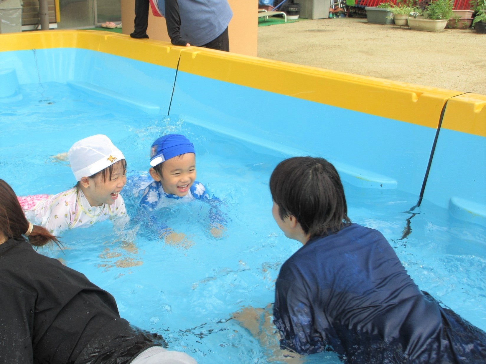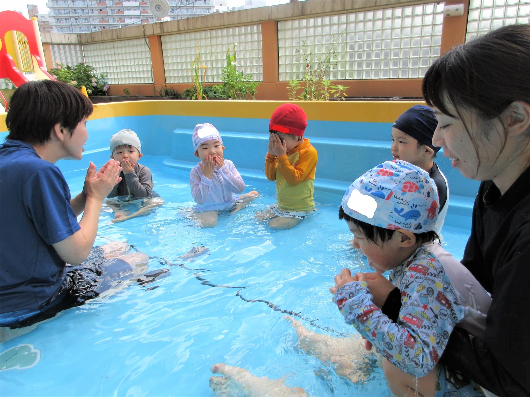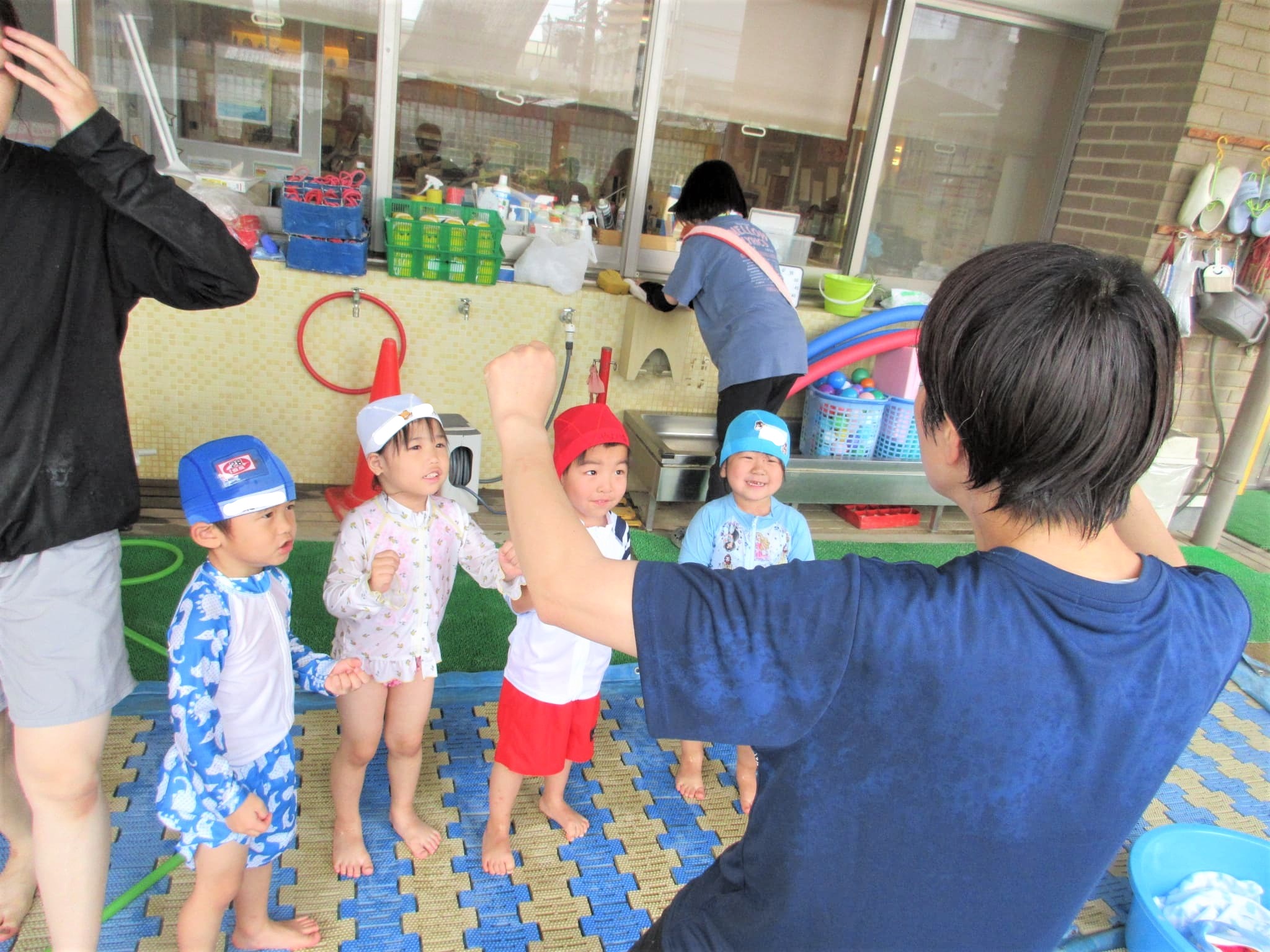 水が掛かるのが苦手な子どもも、友だちがこのように楽しそうに遊んでいたら
