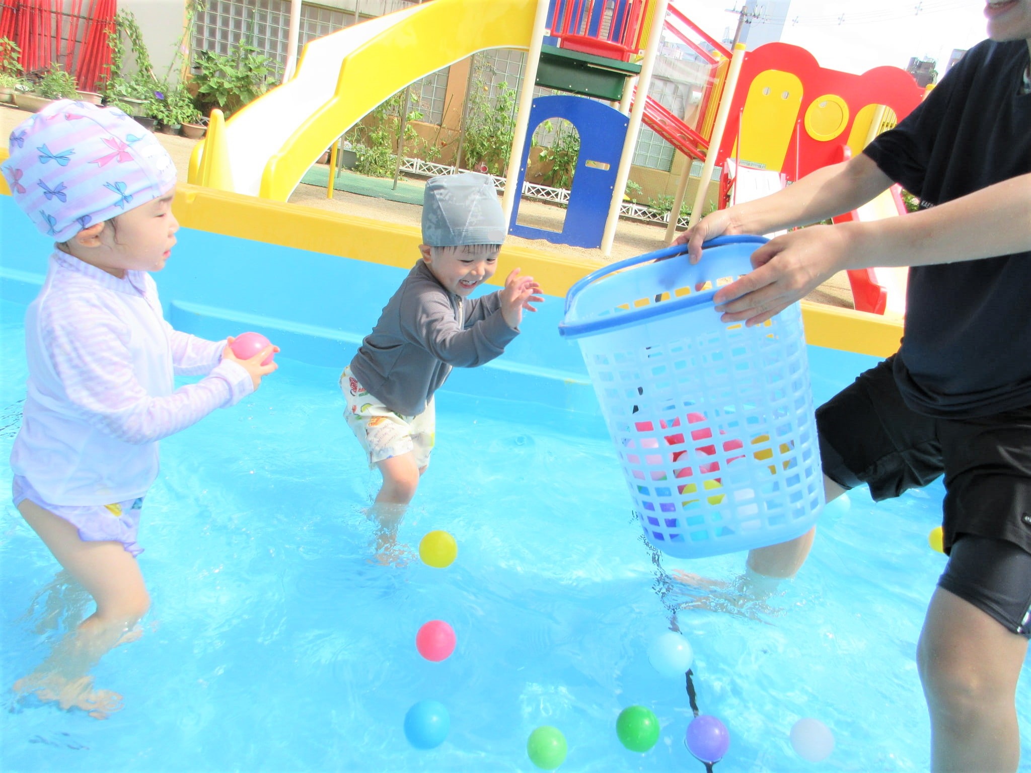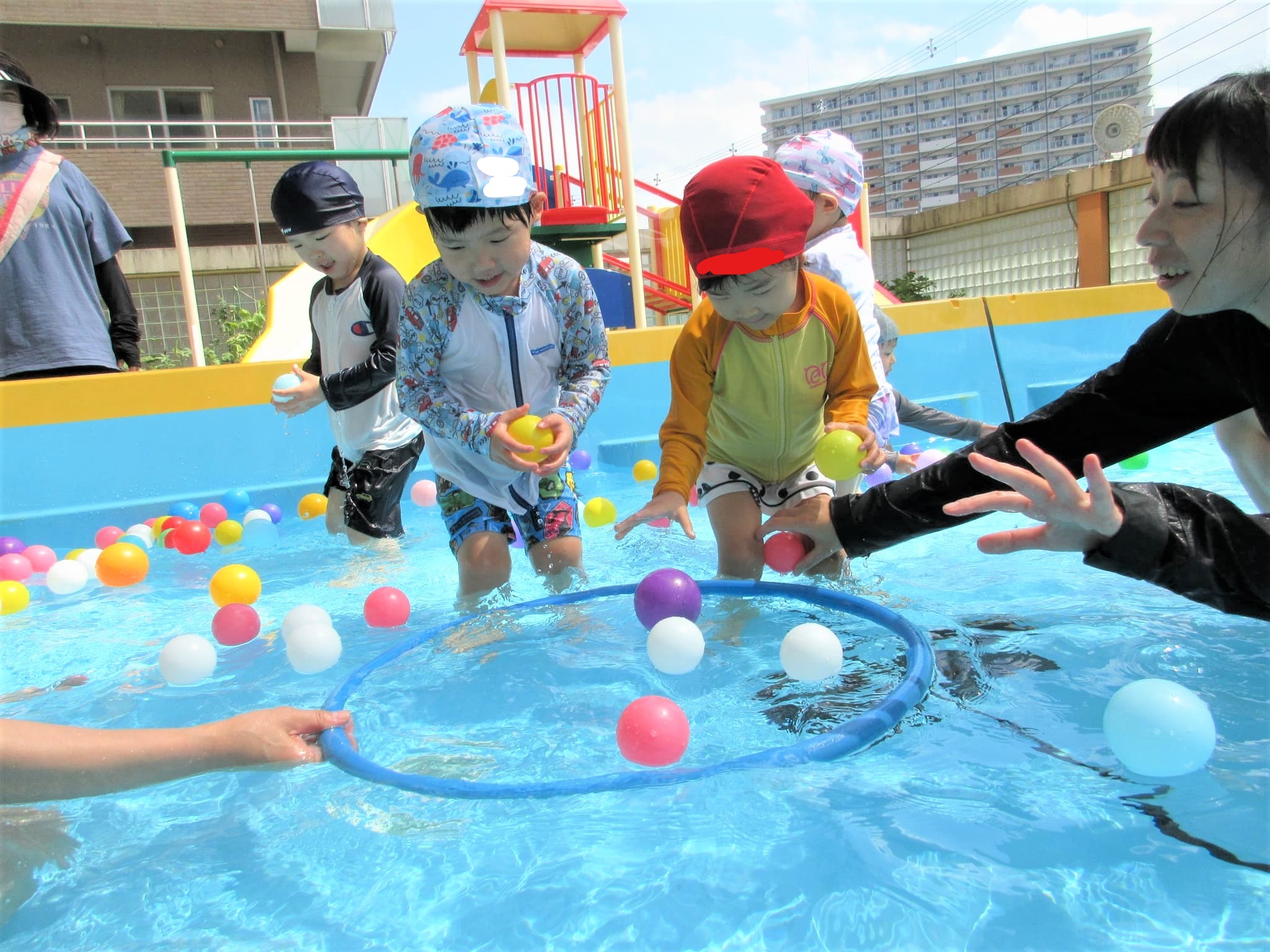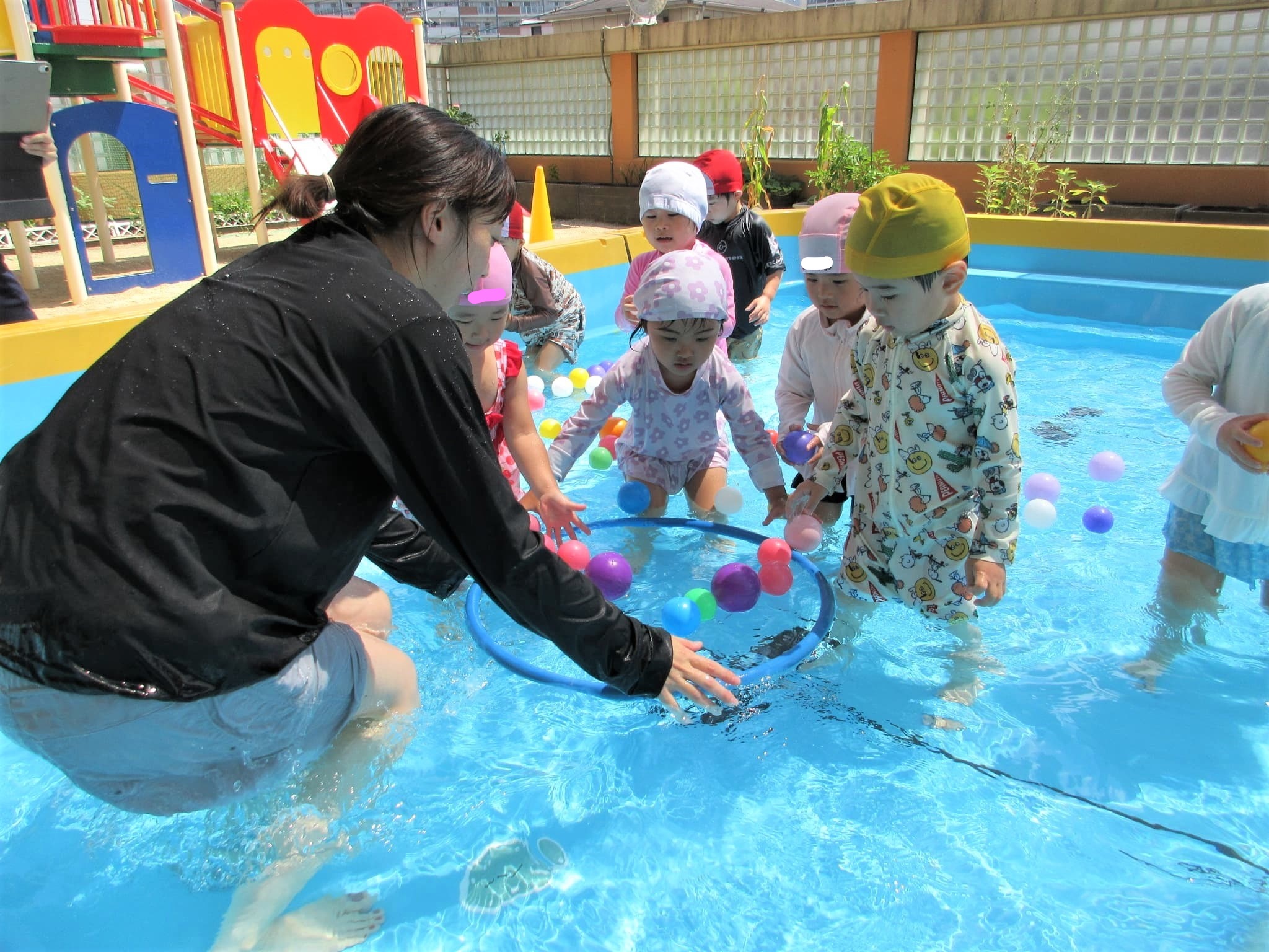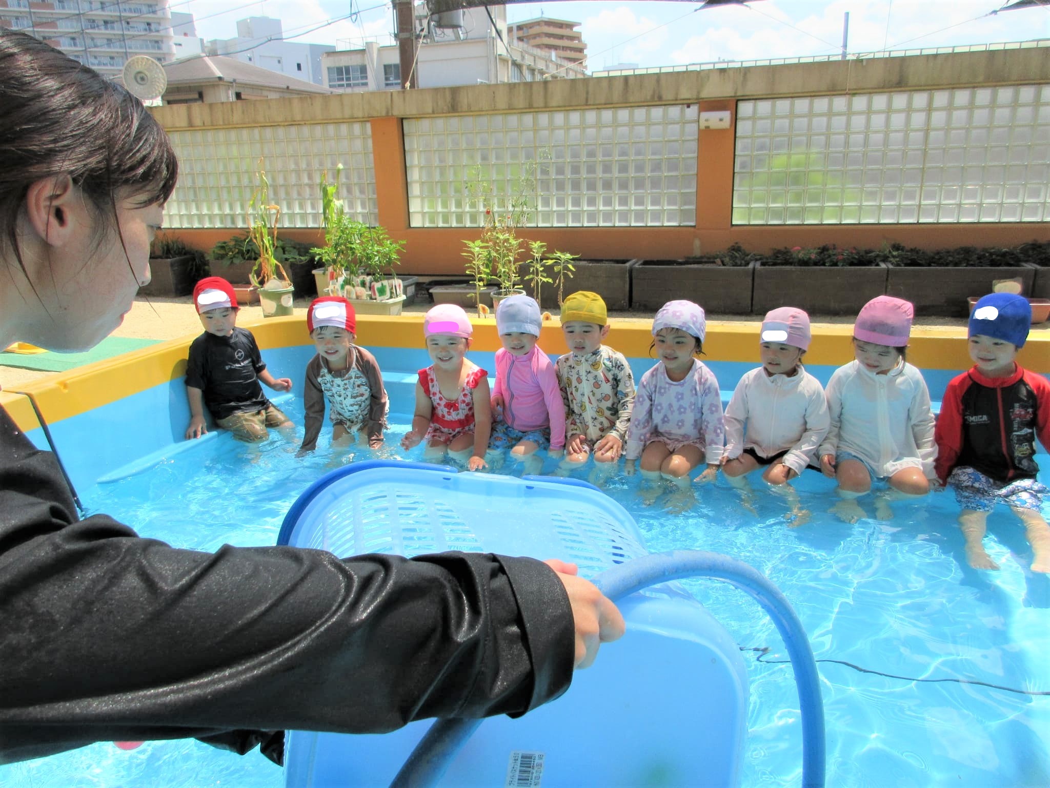 水が掛かるのが苦手な子どもも、友だちがこのように楽しそうに遊んでいたら
