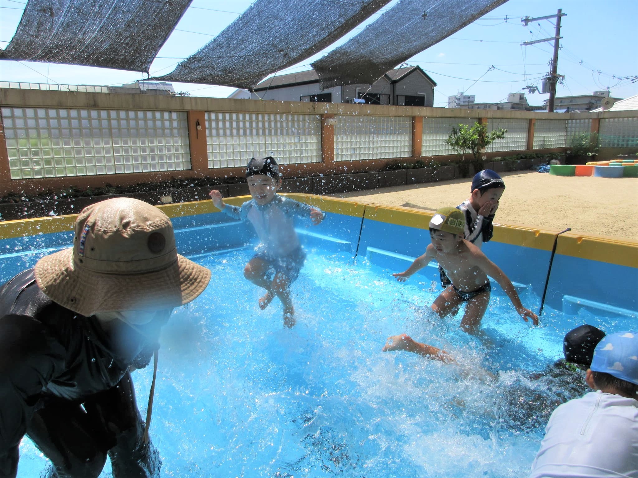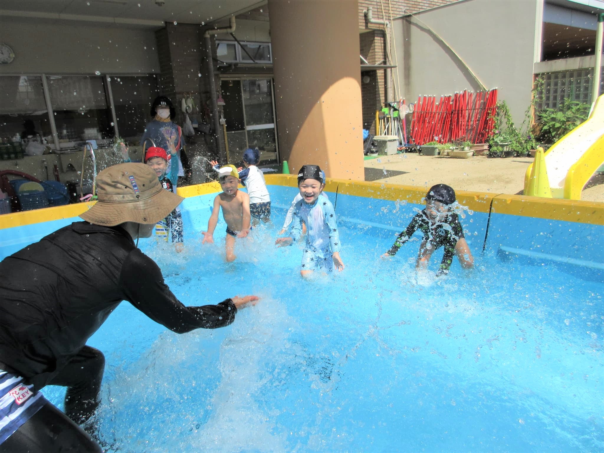 水しぶきを上げながら・・・先生と水の掛け合い♪