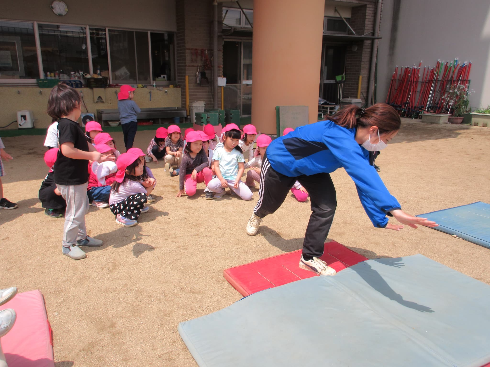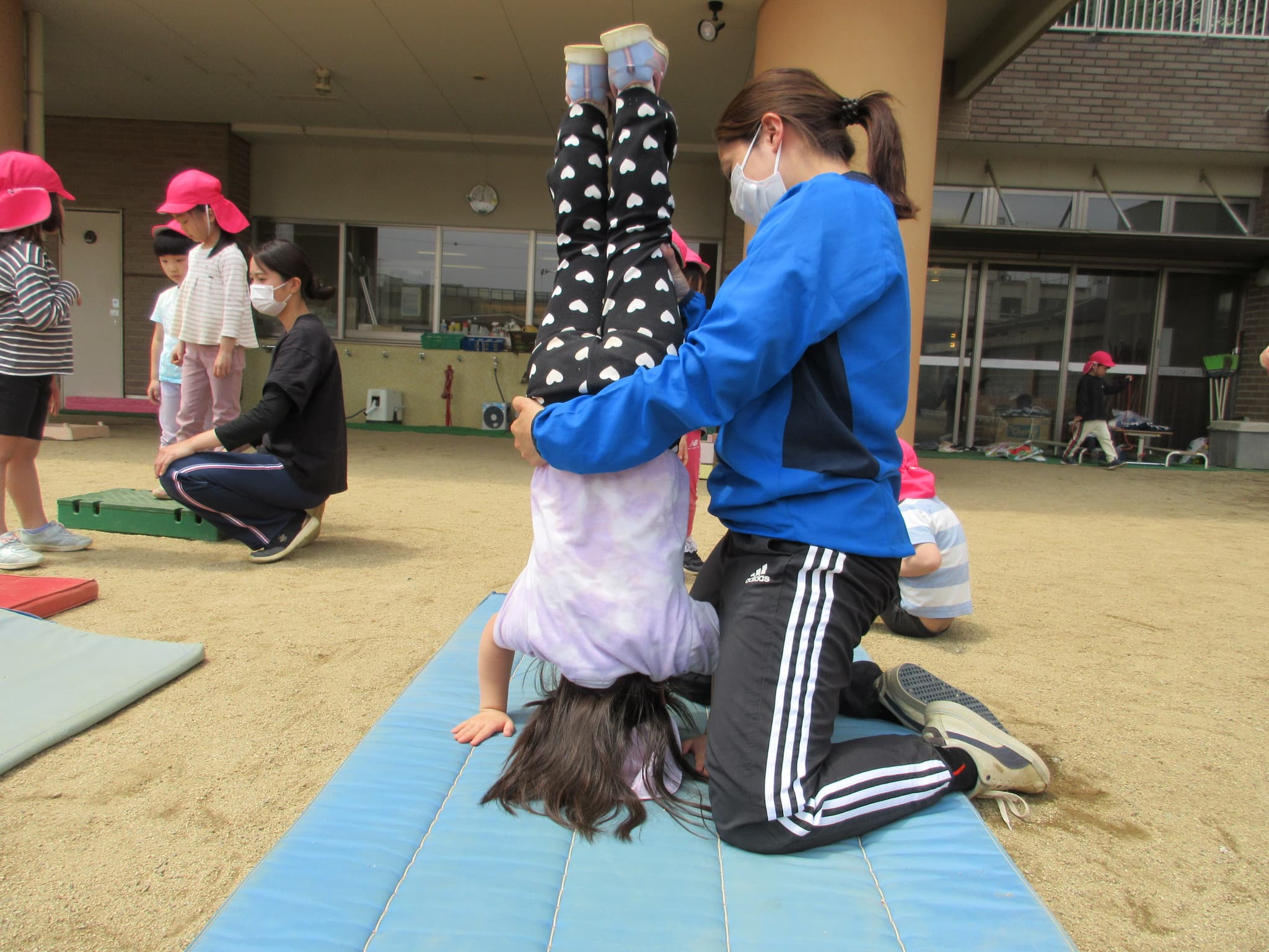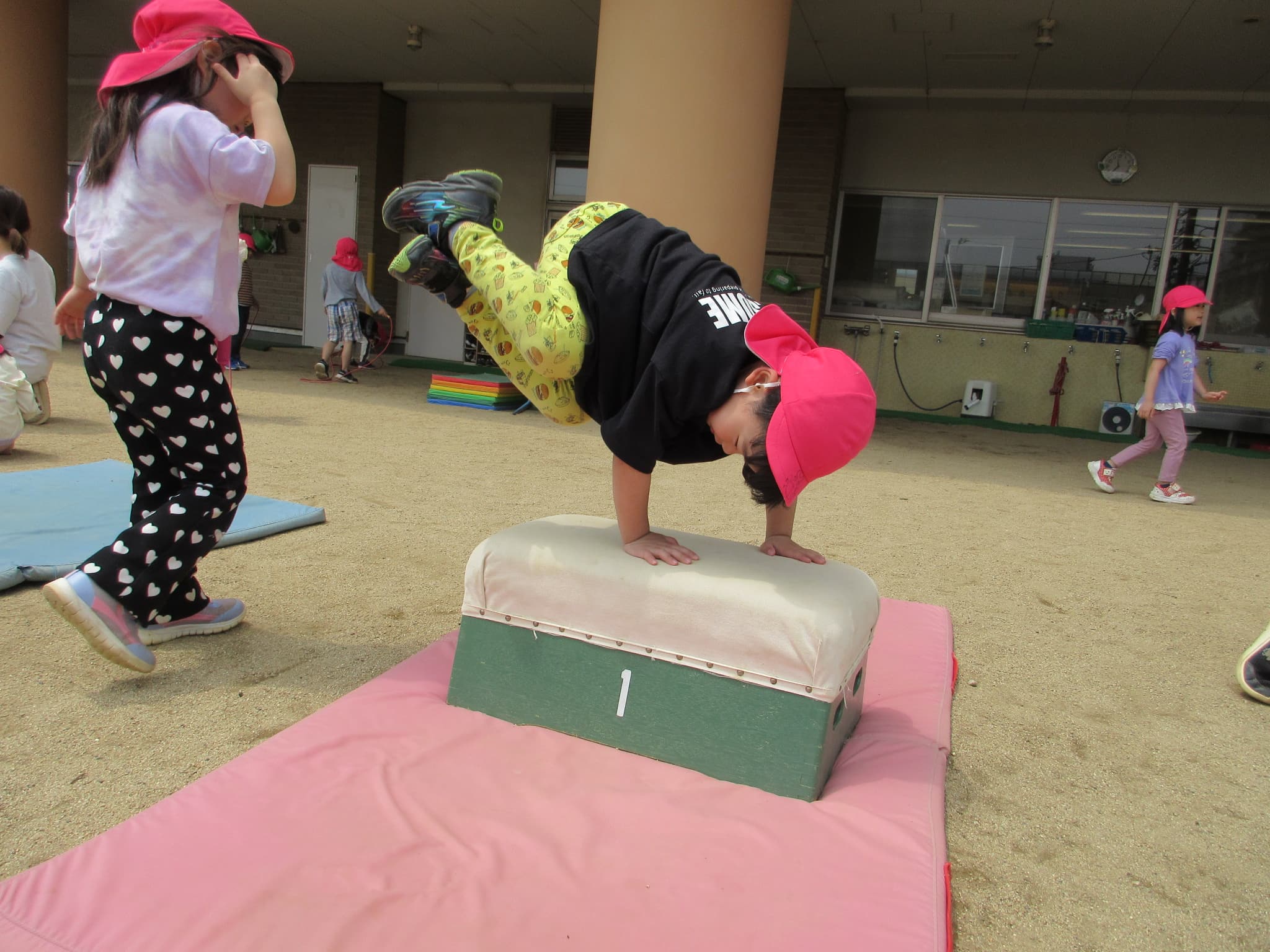 「お尻を上げたら、もっときれいな側転になるよ」と言うと