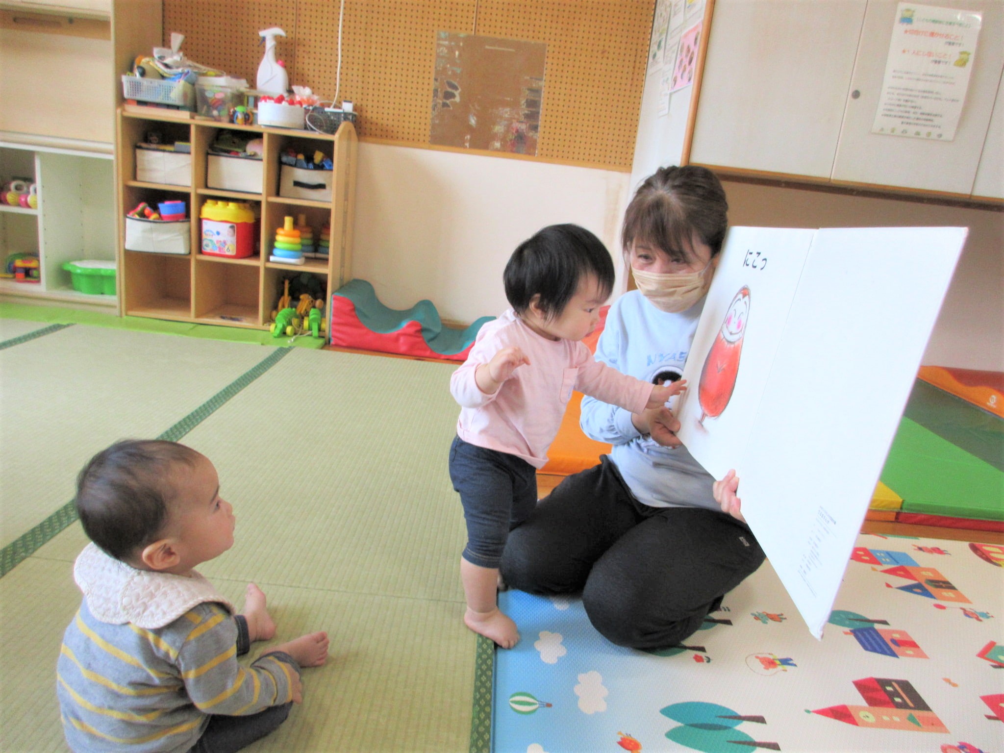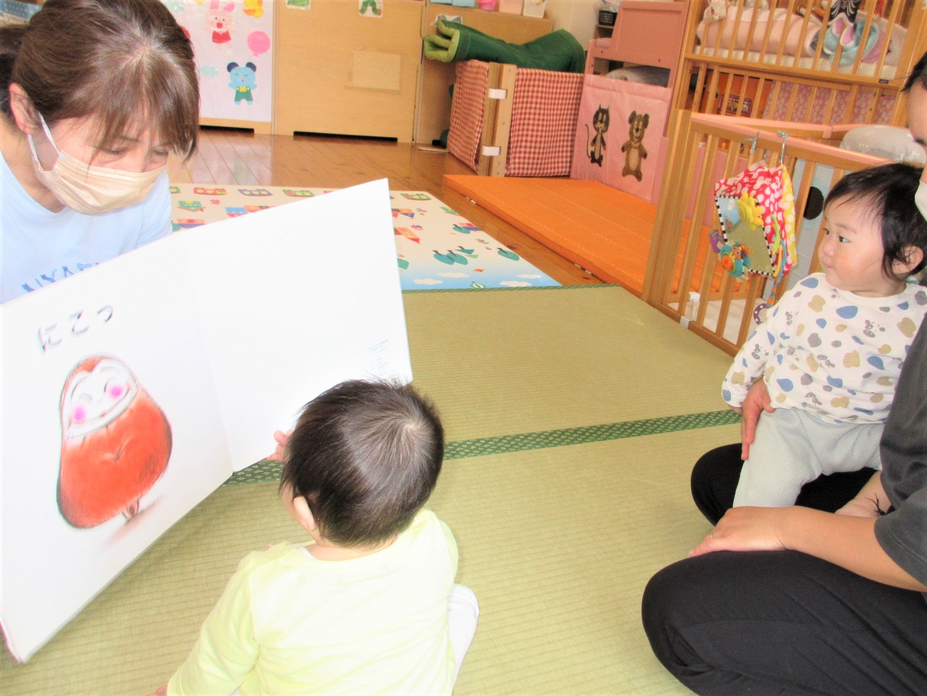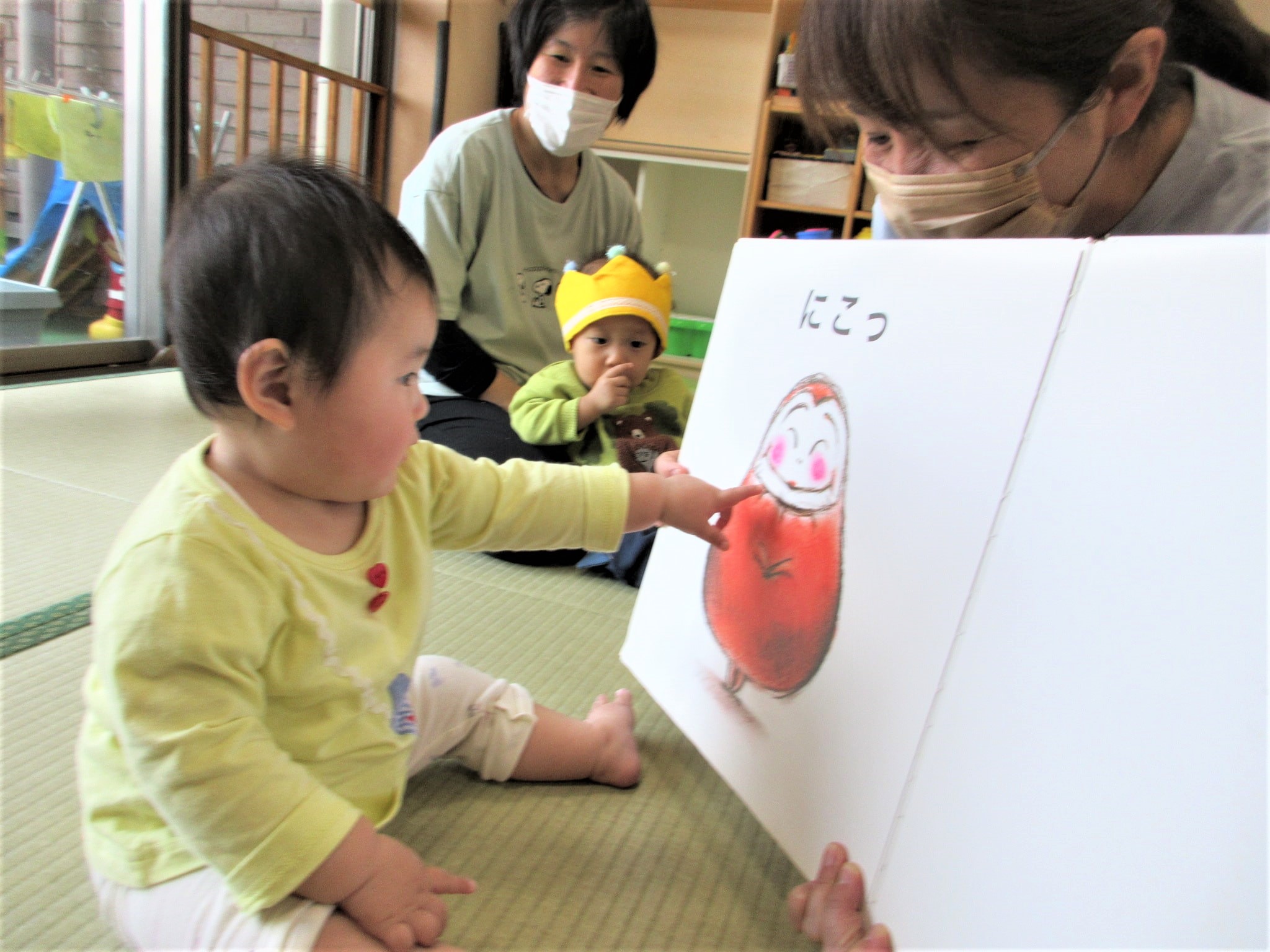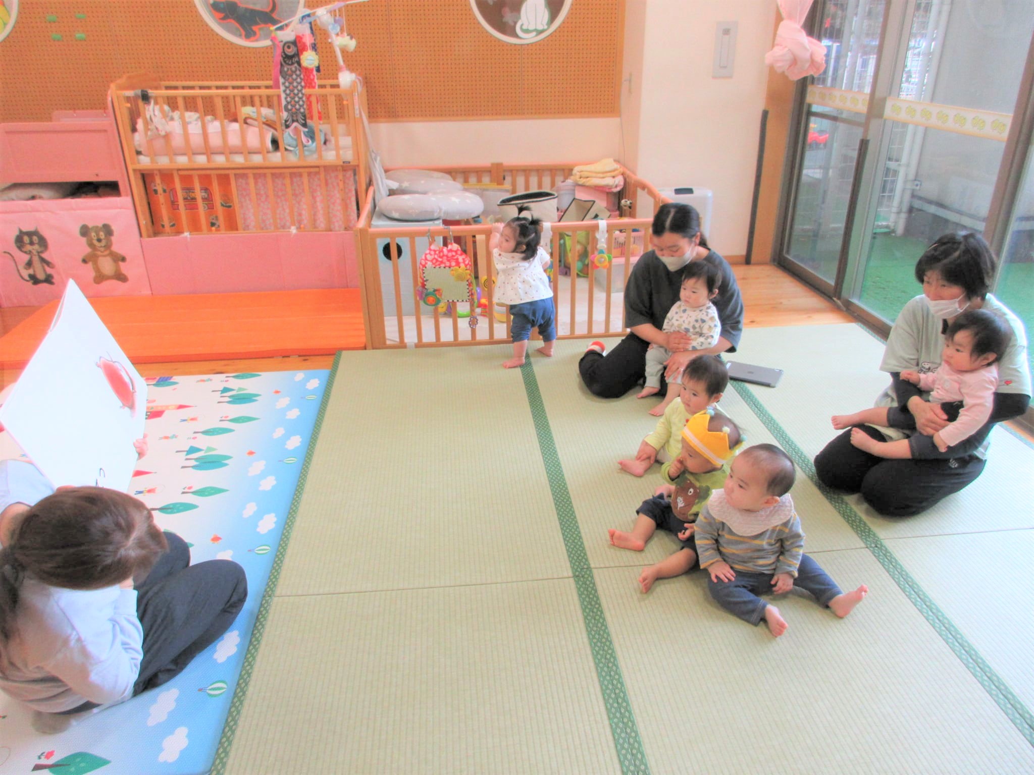 ゆくゆくは、保育教諭の表現を真似っこしながら、みんなでこの絵本を楽しむ風景が見られるでしょう☆