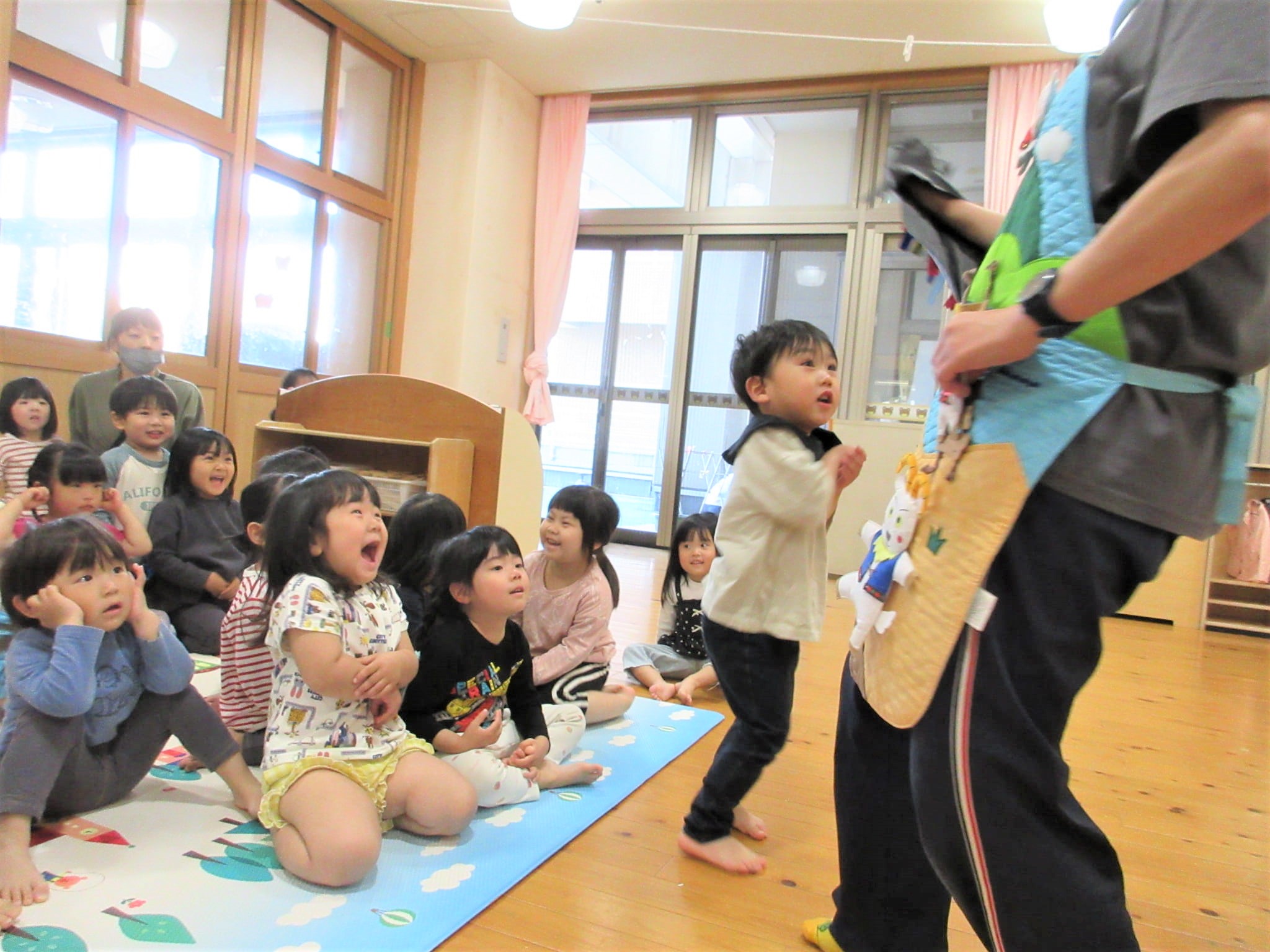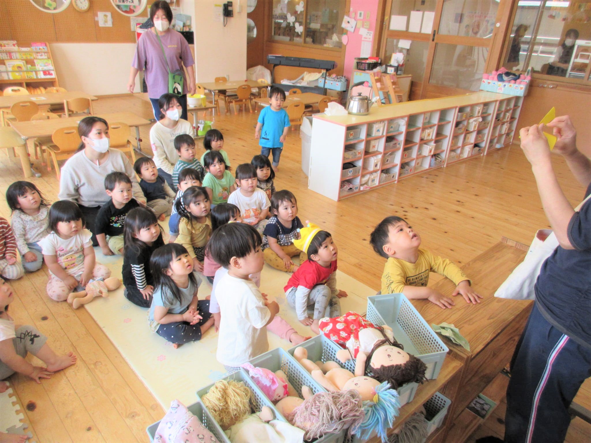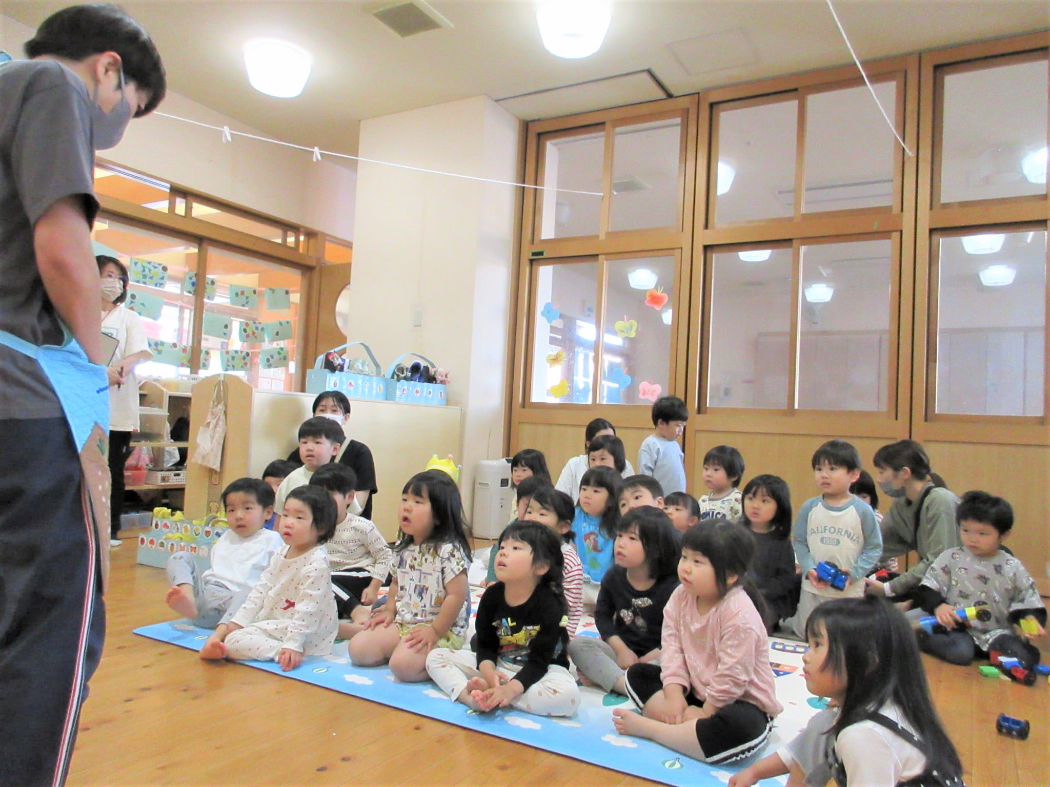 ゆくゆくは、保育教諭の表現を真似っこしながら、みんなでこの絵本を楽しむ風景が見られるでしょう☆