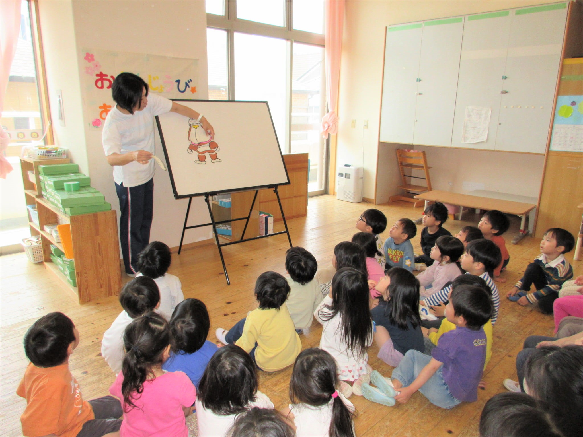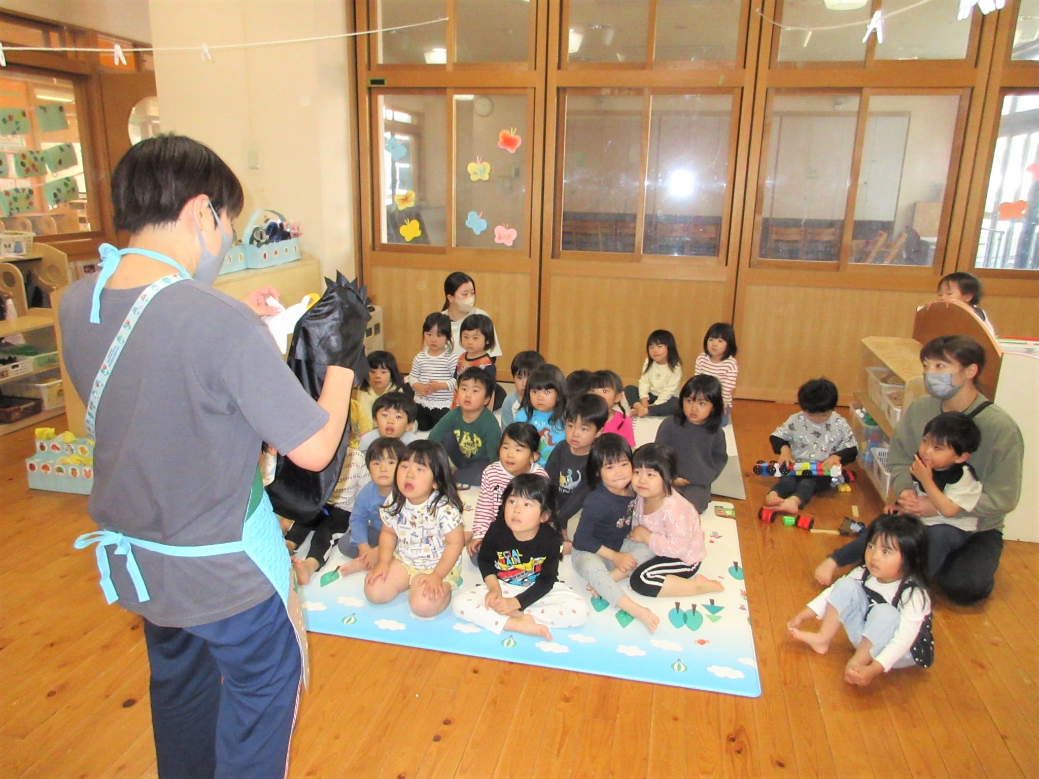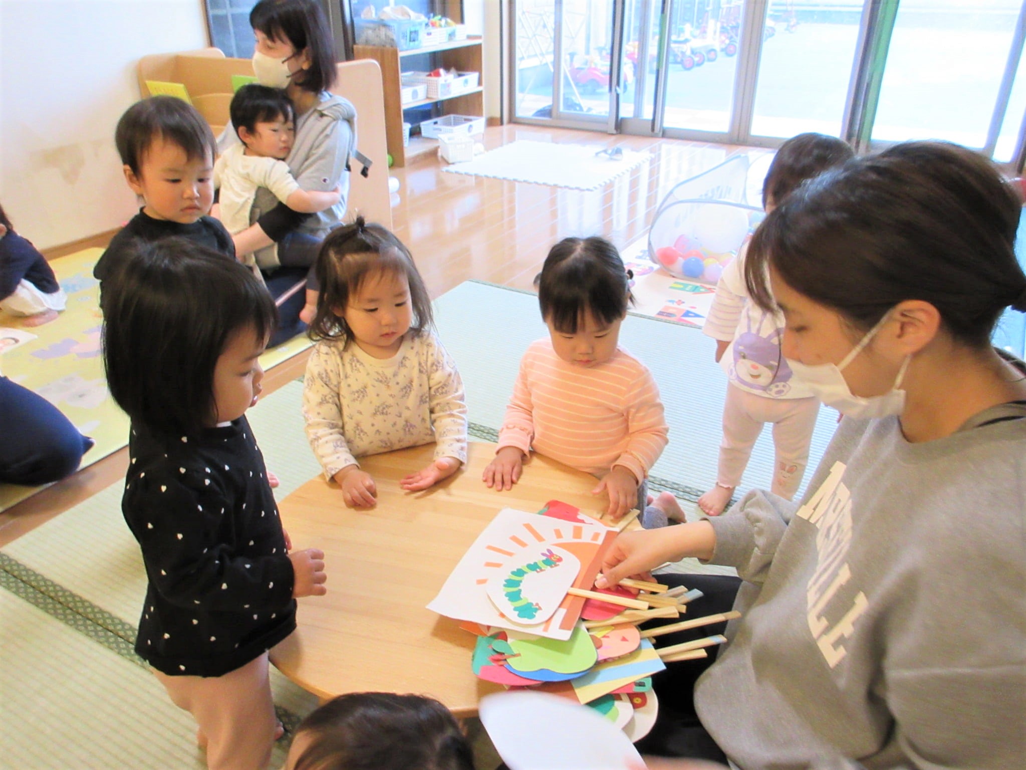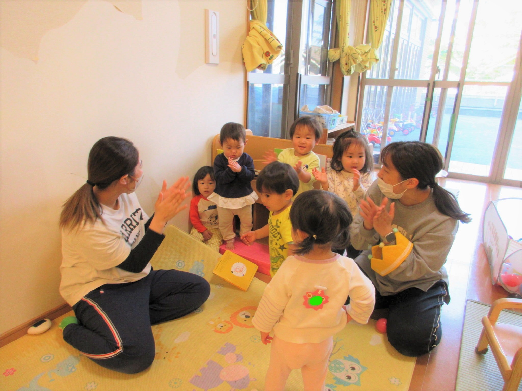 ゆくゆくは、保育教諭の表現を真似っこしながら、みんなでこの絵本を楽しむ風景が見られるでしょう☆