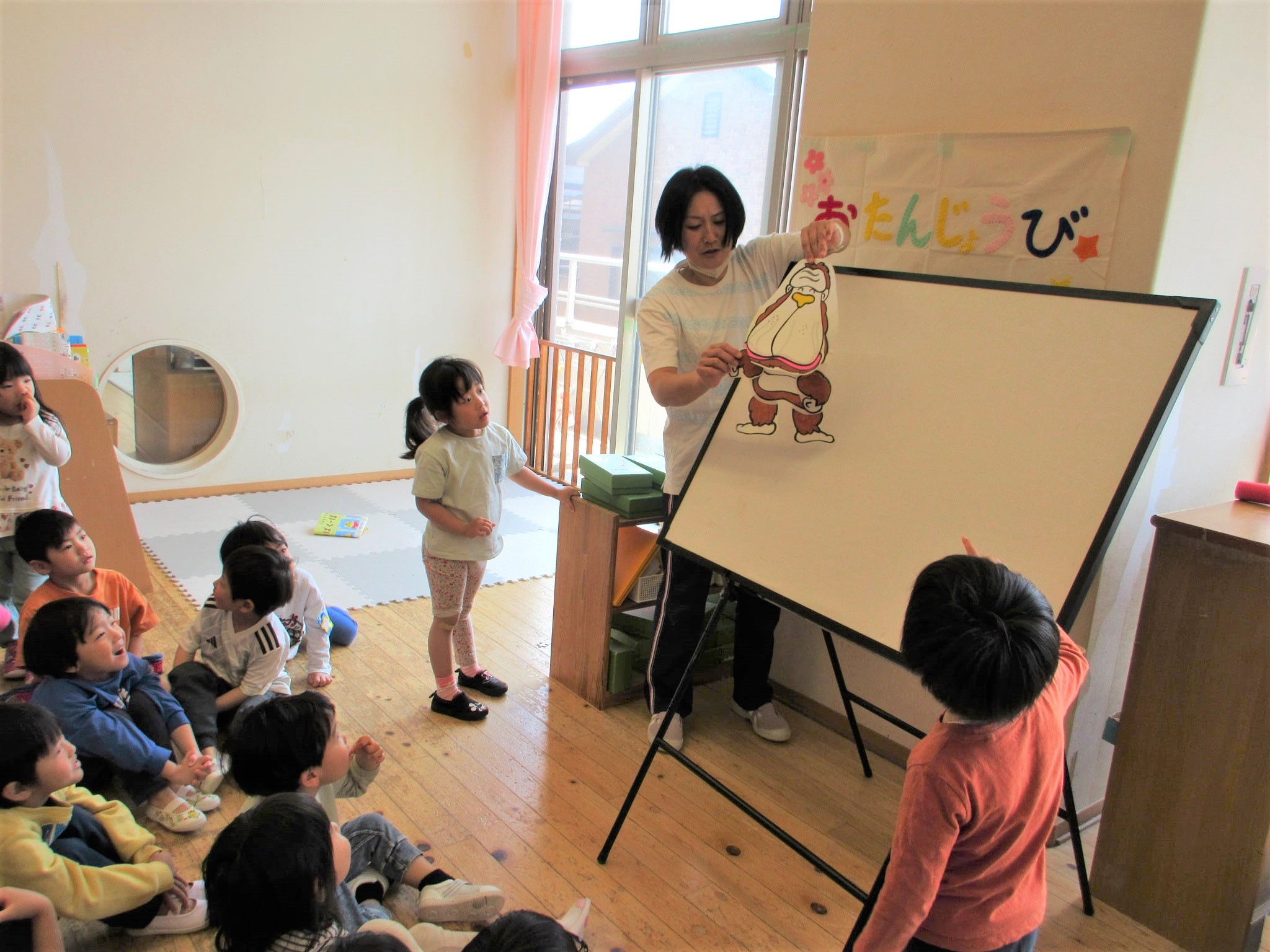 新入園児ばかりのりす組の子どもたちにとっては、ベルキンダーで初めての誕生会…