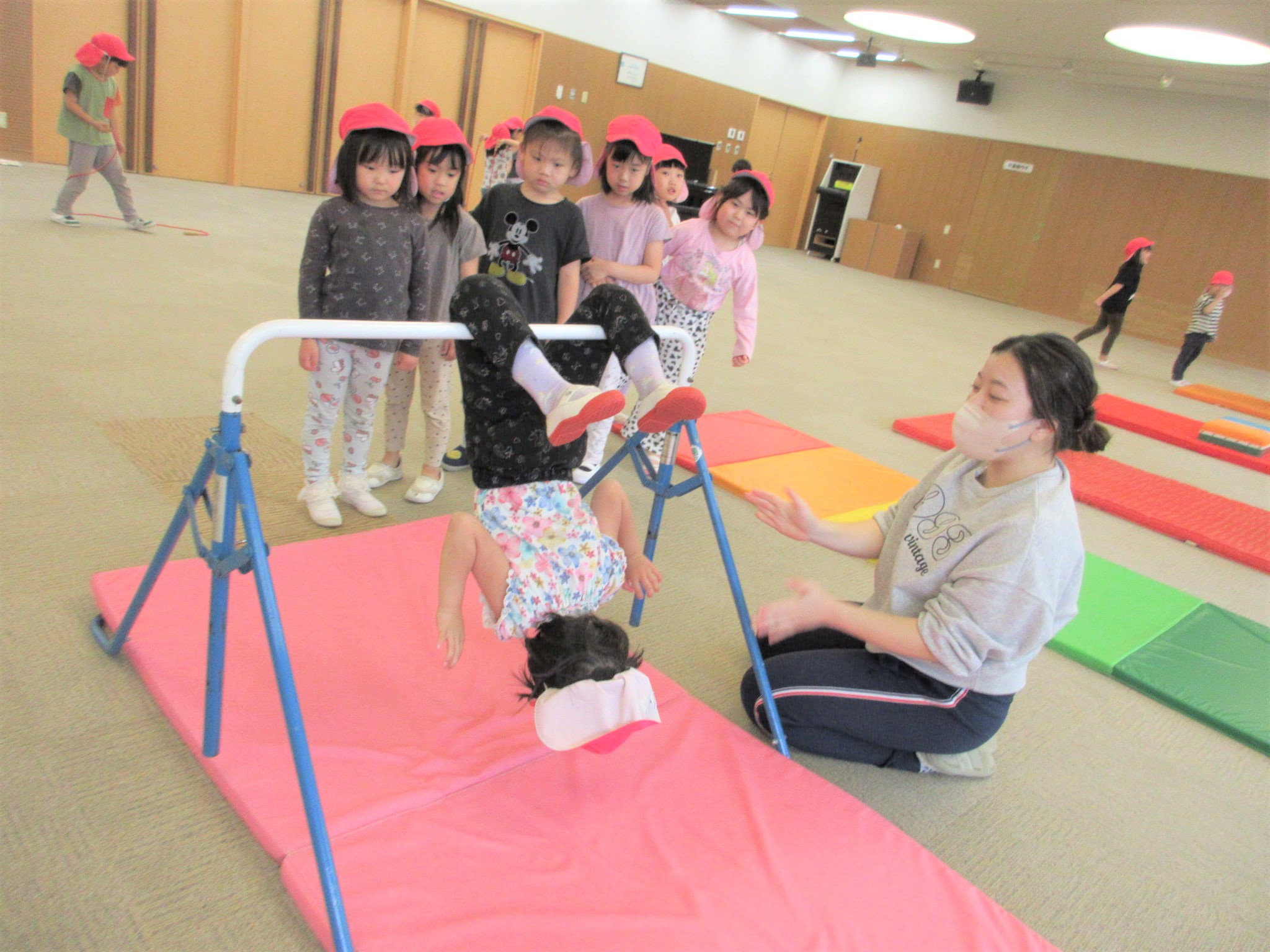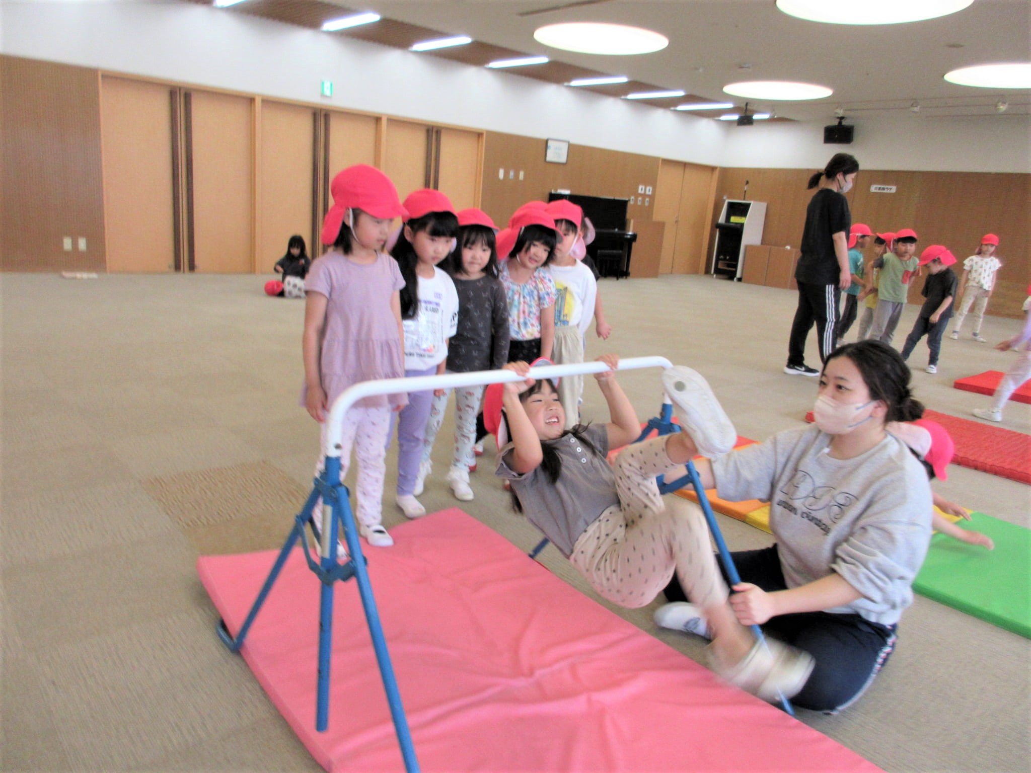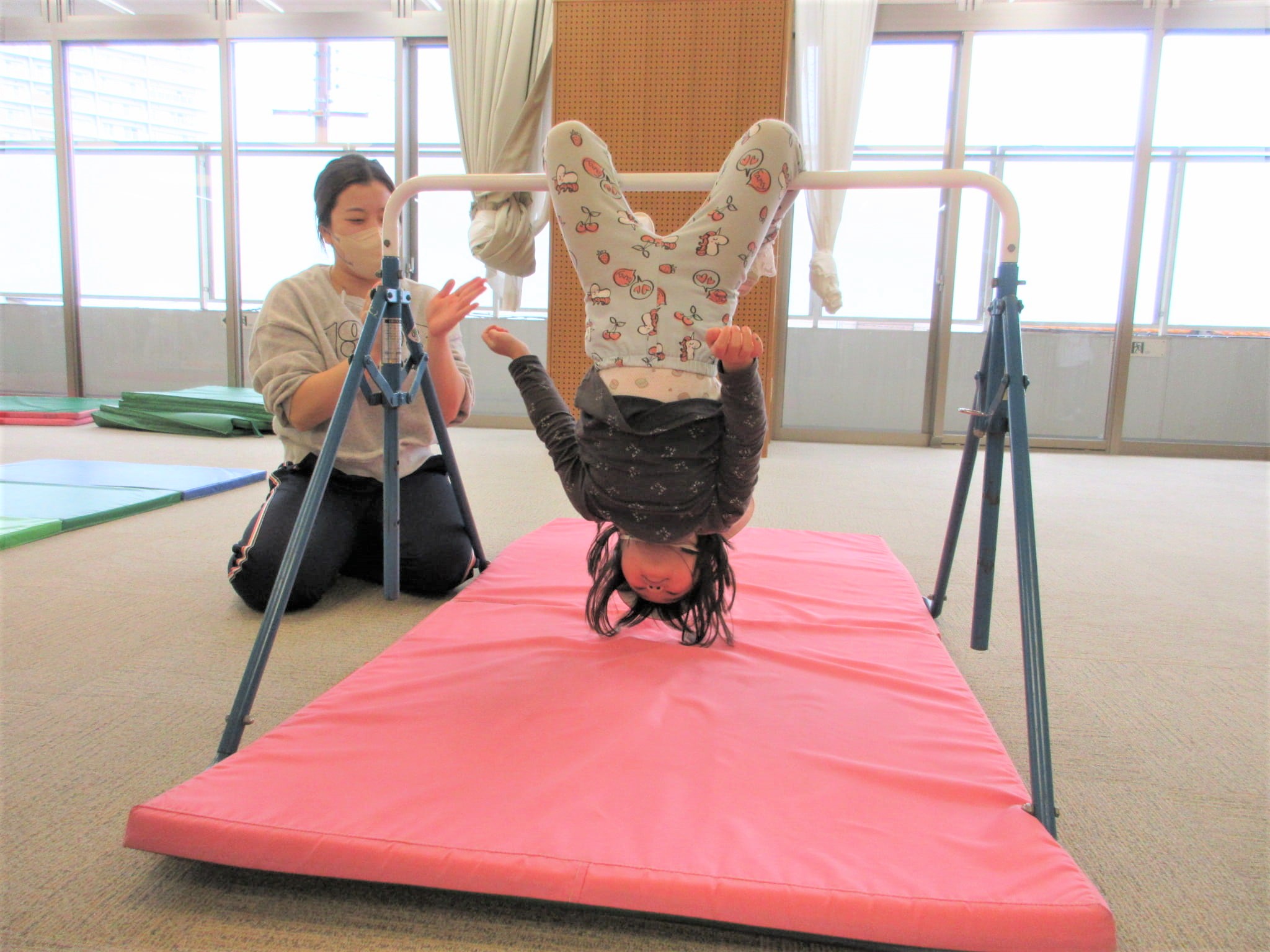 逆上がりを成功させた時に、鉄棒から見える景色を見ることができるように援助していきたいと思います☆
